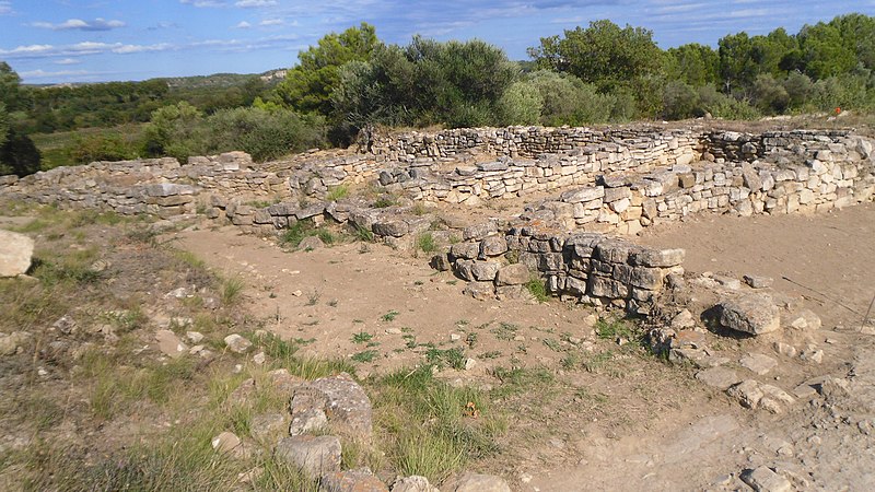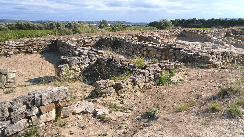 L’habitat adopte un plan en éventail articulé autour du dispositif défensif : rues, dont certaines avec canalisations, desservaient maisons à plusieurs pièces, dépôts et constructions cultuelles ; maisons et fortifications montrent un appareillage homogène en moellons liés à la terre, parfois enduits d’argile, avec quelques blocs taillés et ajustés pour des éléments soignés. Découvert en 1913 et fouillé régulièrement depuis 1948, le site a fait l’objet de campagnes majeures, notamment sous la direction d’Éric Gailledrat depuis 2004, qui ont précisé sa chronologie, son urbanisme et l’ampleur de ses contacts méditerranéens. Parmi les découvertes figurent des cylindres de plomb portant inscriptions ioniennes et étrusques, des rouleaux en plomb inscrits en ibère, de nombreuses céramiques, bijoux, monnaies, outils et restes humains et animaux. Classé Monument historique, le site présente des murs restaurés et se visite accompagné d’un guide au départ du musée de Sigean, qui conserve les collections issues des fouilles.