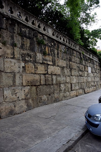 La cité fut défendue par des remparts dès le IIIe siècle, mais le bourg n'aurait été fortifié qu'en 1071. Ces fortifications furent démolies et reconstruites à plusieurs reprises jusqu'au XIVe siècle, puis entièrement refaites par le cardinal Briçonnet, archevêque de Narbonne entre 1507 et 1514. Dans ces travaux, on employa largement des monuments et des stèles provenant de l'occupation romaine. Déclassés en 1867, les remparts ont depuis été entièrement démolis, à l'exception d'un fragment de courtine qui soutient la terrasse du jardin Favatier. Cette courtine, située entre les bastions de Saint-Paul et de Montmorency, est également désignée sous l'appellation "courtine Damville-Montmorency". Elle comporte sept assises de gros blocs; les deux assises supérieures conservent quelques fragments d'inscriptions et plusieurs blocs portent des restes de sculpture, tels que entrelacs, moulures et débris de bas-relief.