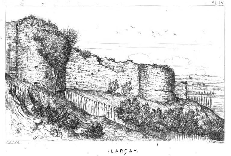 Le castellum de Larçay est une fortification militaire du Bas-Empire romain implantée sur le rebord d’un coteau dominant la vallée du Cher, sur la commune de Larçay (Indre-et-Loire, Centre-Val de Loire). Il se situe à quelques kilomètres au sud-est de Caesarodunum (Tours) et couvre une superficie modeste d’un peu plus de 3 000 m2. Probablement édifié dans la seconde moitié du IIIe siècle, il paraît avoir succédé à un monument commémoratif de type mausolée dont certains éléments ont été réutilisés lors de la construction. Abandonné à la fin de l’Antiquité, son état et son rôle exacts restent partiellement inexpliqués : la construction semble inachevée, les modalités d’occupation sont mal connues et sa place dans un dispositif défensif régional lié à la civitas des Turones doit encore être précisée. Il a sans doute servi à surveiller et contrôler la circulation terrestre et fluviale sur la voie antique reliant Bourges à Tours (ou l’une de ses branches) et sur la rivière qu’il domine. Subsistent des portions de la courtine et certaines tours, vestiges inscrits au titre des monuments historiques par arrêté du 12 juin 1926.