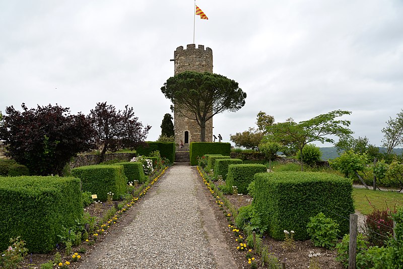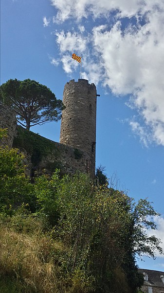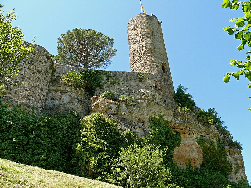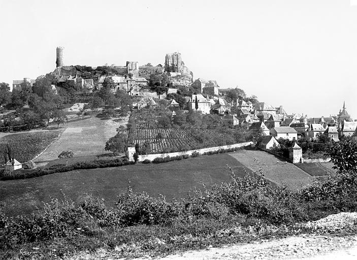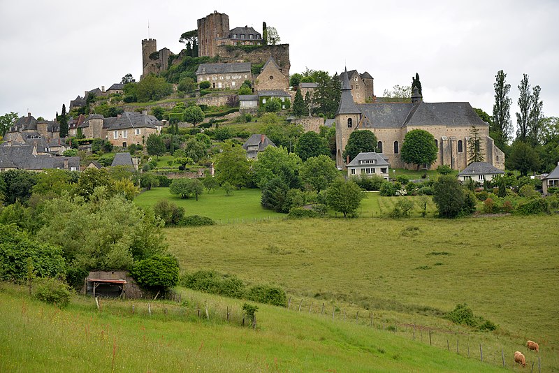 Les vestiges du château de Turenne occupent une plateforme rocheuse dominant le bourg de Turenne, dans la commune du même nom en Corrèze ; il fut le fief de la vicomté de Turenne jusqu'en 1738. Les sources anciennes mentionnent une vicaria Torinensis au VIIe siècle et le castrum de Turenne apparaît dans les textes à partir de 767 lorsque Pépin le Bref s'en empare. Un acte de Louis le Pieux de 823 signale que le castrum avait été confié à Immon, premier comte de Quercy, et d'autres chartes du haut Moyen Âge attestent des liens comtaux et vicomtaux de la région. Le titre de vicomte de Turenne est porté dès la fin du Xe siècle par Bernard, fils d'Adhémar, et la famille de Turenne se trouve liée par alliances et conflits aux vicomtés voisines, notamment aux Comborn. L'emplacement primitif du château reste discuté : un lieu appelé Vieille Turenne, cité en 1074, est aujourd'hui souvent identifié au site carolingien supposé, tandis que la forteresse actuelle aurait été installée à la fin du Xe siècle ou au début du XIe siècle. Raymond Ier a vraisemblablement renforcé les défenses avant son départ pour la première croisade et la vicomté a frappé monnaie durant le haut Moyen Âge jusqu'en 1317. Le château a subi les aléas des rivalités entre Plantagenêts et Capétiens ; Raymond IV se rapproche du roi de France au début du XIIIe siècle, participe aux campagnes royales et voit le château saisi ensuite par l'administration royale durant la première moitié du XIIIe siècle. La vicomté est partagée en 1251 entre branches orientale et occidentale, qui ne se réunissent qu'en 1494, et la seigneurie est finalement vendue en 1738 au roi Louis XV, la transaction prévoyant que le vendeur conserve le titre de vicomte. Les destructions liées à la vente de la vicomté puis au rachat du château ont réduit l'ensemble médiéval ; il reste cependant la base des remparts et trois tours, la tour dite « de César » au nord, la tour dite du Trésor au sud et des vestiges de la tour de la Poudrière qui contrôlait l'entrée. L'étude du bâti a montré qu'une galerie d'apparat, située à l'entrée, reliait la tour du Trésor à un logis sur la face ouest et qu'un autre bâtiment adossé au donjon se trouvait à l'est ; entre les deux tours s'étendaient deux grands logis et des constructions plus modestes, tandis qu'une chapelle, peut‑être la chapelle Saint‑Martial, occupait l'extrémité sud. Les bâtiments édifiés au XVIIe siècle ont aujourd'hui disparu, mais un médaillon de vitrail dans la collégiale apporte des indices sur leur existence. La tour de César est un donjon circulaire haut d'environ 18 mètres, daté du XIIIe siècle ; sa forme circulaire a été rapprochée par certains chercheurs des constructions relevant du domaine capétien et pourrait s'inscrire dans les épisodes de la rivalité Plantagenêts–Capétiens, hypothèse qui conduit à l'attribuer à la période de Raymond IV. La tour du Trésor, donjon rectangulaire à contreforts mesurant 9,50 m sur 12,50 m et daté du XIIIe siècle, présente un plan qualifié de « donjon roman », caractéristique de l'architecture castrale du Limousin ; une origine plus ancienne, peut‑être au XIIe siècle, a été suggérée avant des remaniements ultérieurs. Ce donjon comportait à l'origine trois niveaux : un rez‑de‑chaussée réaménagé au XVIIe siècle pour servir de cuisine, un premier étage voûté d'ogives et haut de plus de neuf mètres qui pourrait correspondre à l'aula médiévale, et un second étage autrefois appelé « salle des archives », transformé en terrasse sommitale. Des bâtiments étaient appuyés contre les élévations est, sud et nord mais ont disparu. Les études ont également repéré les vestiges de trois, voire quatre enceintes protégeant le castrum, la seconde entourant la ville et une troisième attribuée aux guerres de Religion, probablement édifiée dans les années 1570–1580 par le vicomte Henri Ier de La Tour d'Auvergne pour renforcer la place forte protestante. Les vestiges ont fait l'objet de protections au titre des monuments historiques : classés dès 1840, avec la tour de César et le donjon rectangulaire protégés en 1890, et les parcelles du terrain d'assiette inscrites en 2015, incluant les vestiges archéologiques et les bâtiments qui s'y rattachent.
