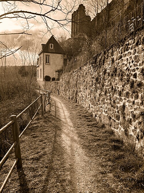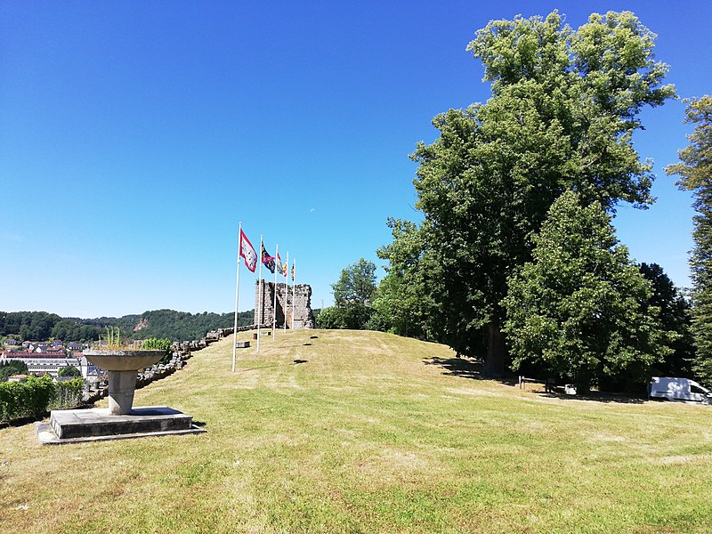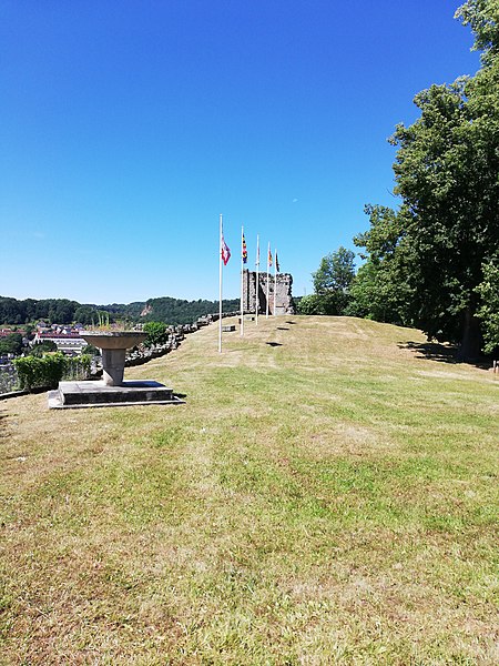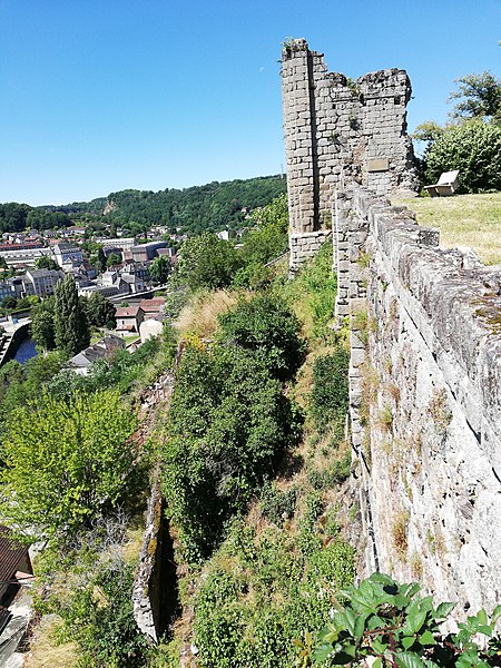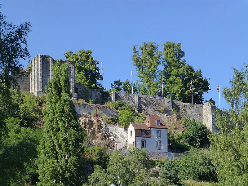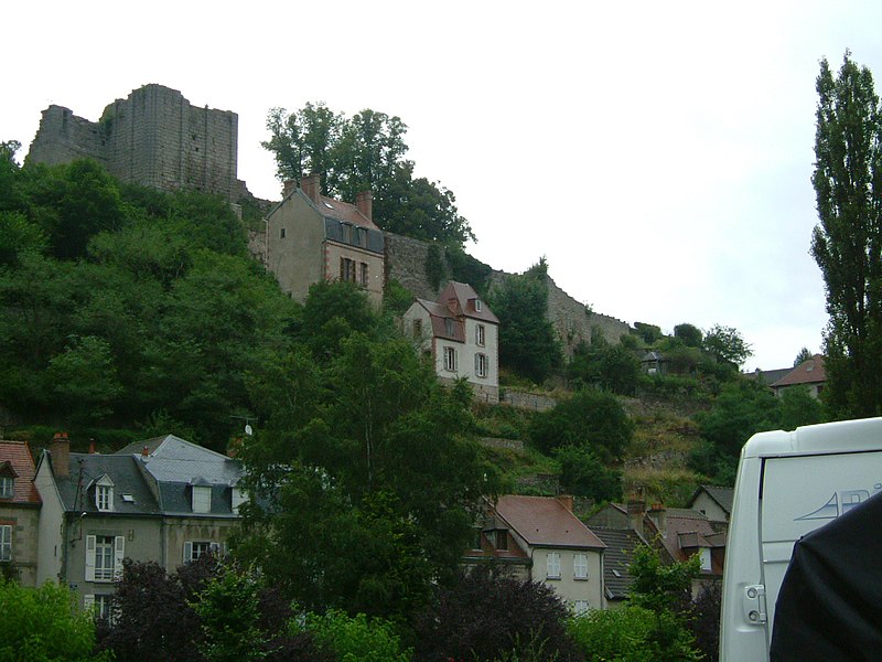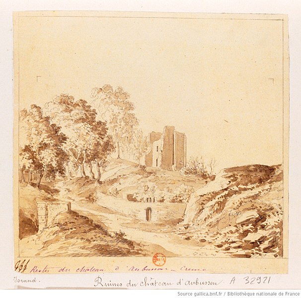 Les vestiges du château d'Aubusson, parfois appelés le Chapitre, occupent la colline du même nom à Aubusson (Creuse) et conservent les restes d'un château-fort élevé entre les Xe et XIIIe siècles par les vicomtes d'Aubusson. Les ruines du donjon, datées du XIe siècle, dominent le site et rappellent que l'édifice fut implanté sur l'emplacement d'un castellum romain. Le plan des fortifications fut développé environ trois siècles plus tard. Vers 1470-1475, Jacques d'Armagnac fit édifier un corps de logis ; les vestiges visibles comprennent un pan du mur sud et une partie du mur ouest de ces aménagements. Avant d'être démantelée, la forteresse, qui occupait toute la terrasse et avait la forme d'un ovale allongé, fut à peu près entièrement rasée en 1632 sur l'ordre du cardinal de Richelieu. En 1673, le chapitre collégial du Moutier-Rozeille fut transféré à Aubusson et s'installa parmi les ruines, donnant son nom à la colline. Chef-lieu d'une vicomté à l'époque carolingienne, le site fut réuni à la Marche en 1260 par Hugues de Lusignan et, culturellement, le château et le village constituèrent un lieu de réunion important pour les troubadours du Limousin. Vers le milieu du XIIIe siècle, la seigneurie du Monteil, à laquelle appartenait le site, se détacha d'Aubusson et passa à une branche dite du Monteil-au-Vicomte, d'où sortit Pierre d'Aubusson, grand maître de l'ordre de Saint-Jean de Jérusalem (1476-1503). Après la démolition, des pierres du château furent réemployées pour des maisons du vieil Aubusson, comme la maison des Vallenet, et pour la construction du pont de la Terrade. Vendue comme bien national à la Révolution, la forteresse servit ensuite de carrière. En 1885-86, un petit « Musée d'Aubusson » conçu par l'architecte Albert Mazet fut intégré aux ruines et aux murs médiévaux ; ce musée fut détruit en 1934. Le site a été inscrit au titre des monuments historiques en 1964. Aujourd'hui subsistent un pan de donjon rectangulaire, la muraille attenante et la base d'une tour carrée du XIIIe siècle, ainsi que le pan sud et la partie ouest liés aux travaux de 1470-1475. L'architecture du lieu a évolué, passant d'une tour de guet romaine à une quasi-citadelle médiévale avant d'être réduite en ruines après les démolitions et l'exploitation comme carrière. D'après un document du XVIIIe siècle, le château médiéval comprenait un corps de logis rectangulaire flanqué de deux grosses tours rondes, divisé en deux appartements par un mur de refend, avec une tour carrée d'escalier à vis en saillie sur la façade et des fossés au nord et à l'ouest. Certains témoignages évoquent l'existence de souterrains partant du château et aboutissant en divers lieux, parfois éloignés, citant notamment le sous-sol de l'ancienne école Jeanne d'Arc ou le soubassement du château du Fôt. La tour nord est la partie la mieux conservée et présente au rez-de-chaussée une salle voûtée en berceau. Le site est illustré par des représentations anciennes et modernes : dessins et gravures des XVIIe et XIXe siècles, vues récentes et photographies montrant le pan de donjon, le parc des ruines avec son chêne multi‑centenaire, la plaque mémorielle et les soubassements avec leurs pierres de taille hexagonales.