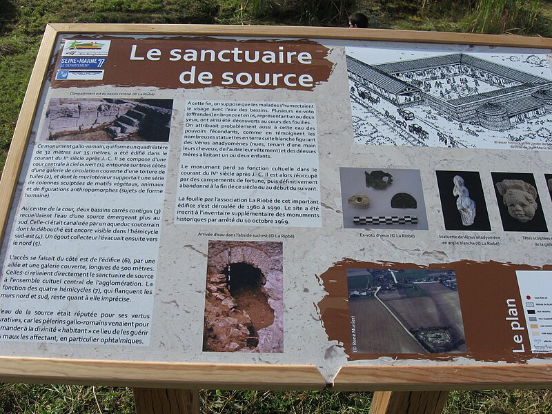 Substructions du sanctuaire de source et de ses annexes, lieudit La Tannerie (cad. ZA 31, 32) : inscription par arrêté du 17 octobre 1969 modifiée par l'arrêté de radiation du 22 janvier 2025 ; Ensemble de vestiges antiques dont un mur de bâtiment gallo-romain, lieudit La Justice (cad. A 539 à 541) : inscription par arrêté du 15 mai 1981 ; Vestiges du théâtre gallo-romain, lieudit le Haut Chemin (cad. ZA 51) : classement par arrêté du 28 janvier 1983 ; Vestiges du théâtre gallo-romain, lieudit Prairie de la Vigne (cad. A 239) : inscription par arrêté du 28 janvier 1983 ; Les parcelles cadastrales ZA 113 et ZA 115 situées au lieu-dit "La Tannerie" : inscription par arrêté du 22 janvier 2025 ; La parcelle cadastrale A 245 située au lieu-dit "La Justice" : inscription du 22 janvier 2025