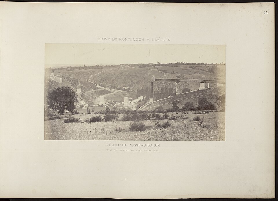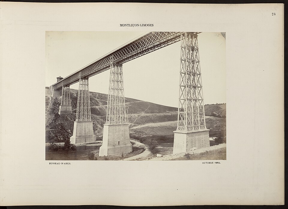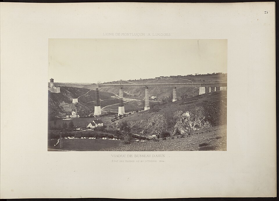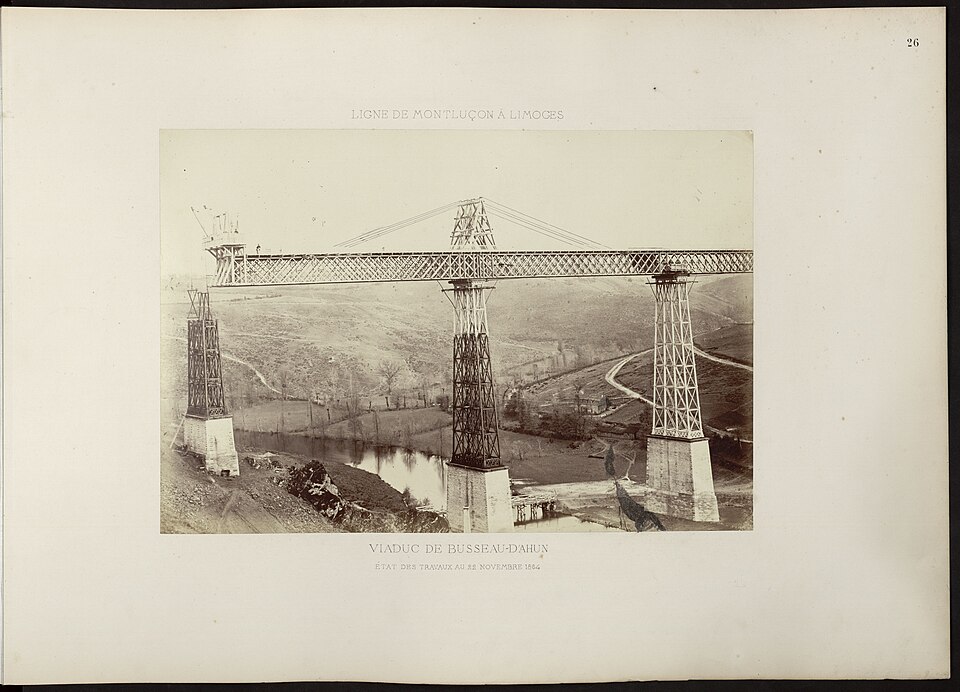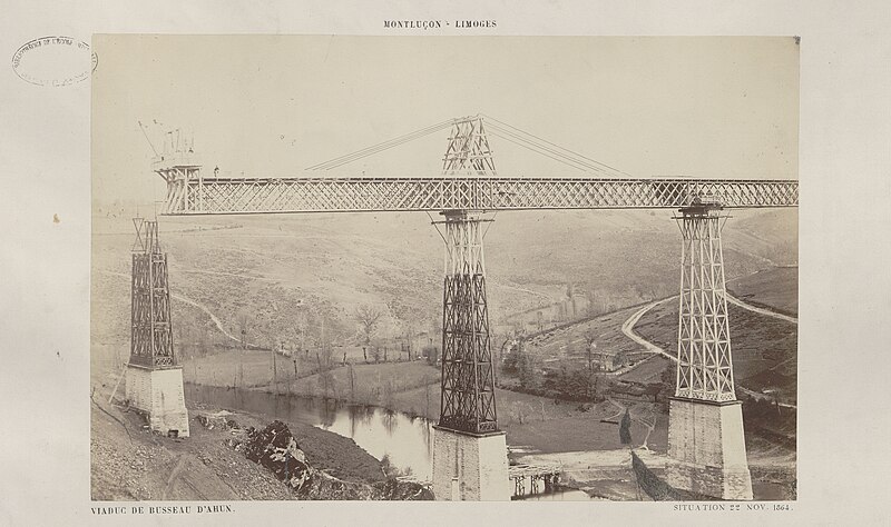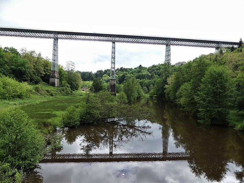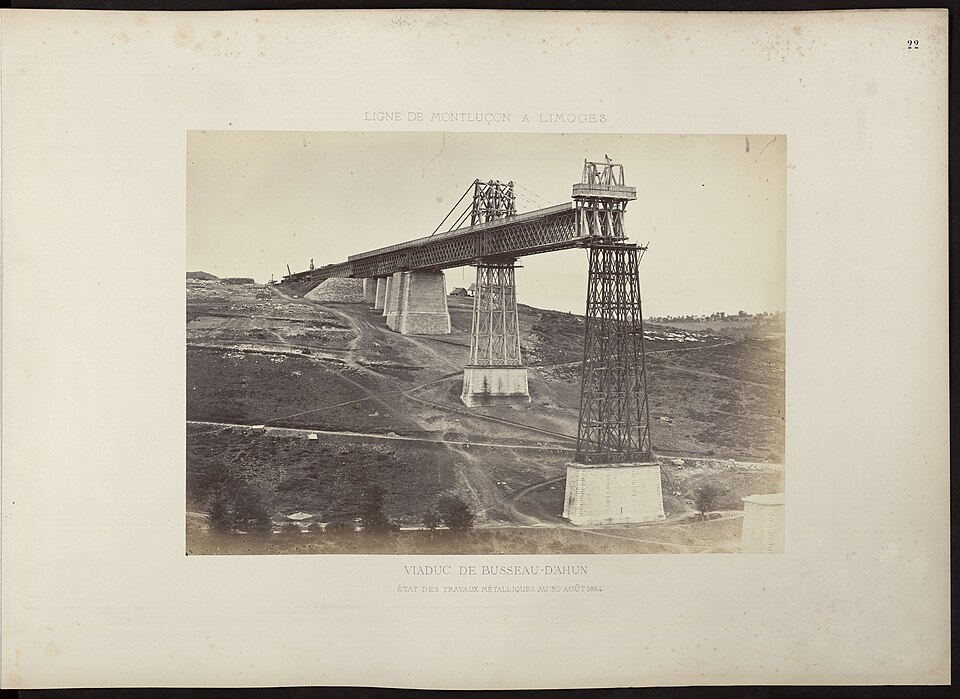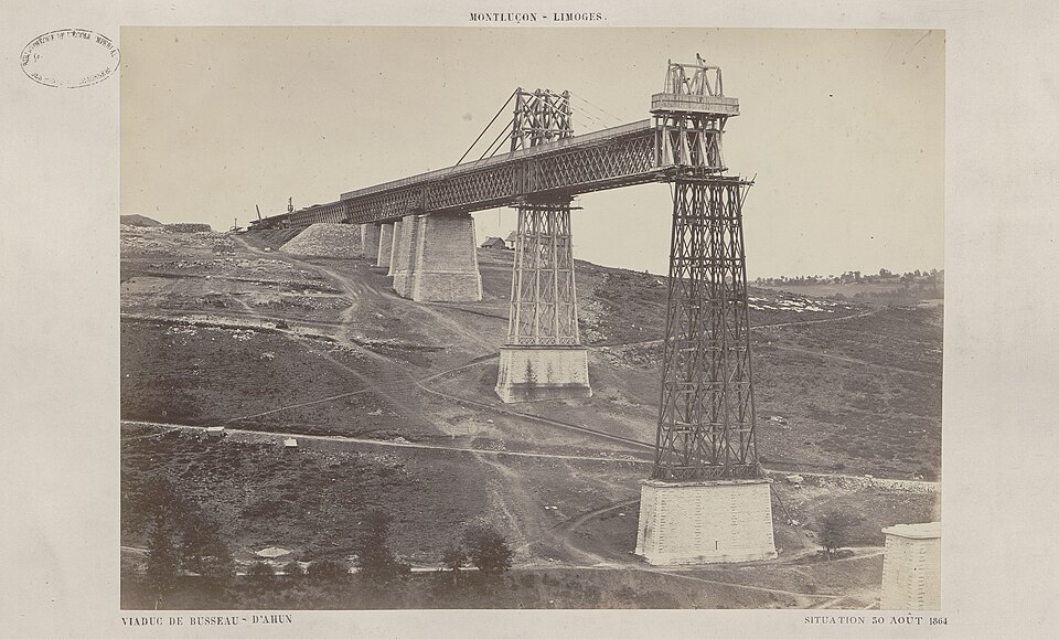 Le viaduc de Busseau-sur-Creuse est un pont ferroviaire métallique situé sur les communes d'Ahun, de Pionnat et de Cressat, dans le département de la Creuse, en région Nouvelle-Aquitaine, à la sortie est de la gare de Busseau-sur-Creuse. Souvent attribué à tort à Gustave Eiffel, il domine la Creuse et mesure 320 m de longueur pour une hauteur maximale de 56,50 m. Il a été construit entre décembre 1863 et décembre 1864 ; le chantier a commencé en janvier 1864 et s'est déroulé sous la direction de Félix Moreaux. L'ouvrage a été réalisé par un consortium formé par Basile Parent, Pierre Schaken, Jules-César Houel, Ferdinand Caillet et les Établissements Jean-François Cail, sur un projet établi par Marie Thirion, Wilhelm Nördling et Charles Geoffroy, ingénieurs de la Compagnie d'Orléans. Nördling, qui a suivi le projet de près, avait précédemment participé à la commission internationale pour le viaduc de Grandfey, et le recours aux piles en treillis métalliques s'inscrit dans une évolution déjà matérialisée sur des ouvrages tels que les viaducs de Crumlin, de Fribourg et le viaduc de Portage aux États‑Unis. Face à la nécessité de franchir une brèche de 338 m entre culées avec des piles de 57 m, la Compagnie d'Orléans a choisi la solution métallique, moins coûteuse que la maçonnerie, après l'exemple de Fribourg. Pour assurer la stabilité au vent transversal, des barres d'ancrage ont été placées à l'intérieur des colonnes des piles et ancrées dans les maçonneries de base et la fondation ; la hauteur de la partie métallique des piles a été limitée à 30 m sous le tablier par prudence vis‑à‑vis de l'emploi de la fonte, les soubassements et fondations étant en maçonnerie. Pour améliorer l'aspect de l'ouvrage et éviter les arbalétriers disgracieux apparus sur d'autres viaducs, une maquette a été réalisée ; elle a conduit à éviter les surfaces gauches et à positionner deux arbalétriers quelconques dans un même plan plutôt qu'à l'intérieur des piles. Le tablier, monté sur appuis à rouleaux embiellés aux piles d'extrémité et aux culées pour permettre la dilatation, repose sur appuis fixes pour les autres piles ; la dilatation est également rendue possible par la souplesse des piles. Le tablier a été mis en place par lançage, procédé consistant à construire les travées sur une rive puis à les pousser successivement en position, méthode déjà employée en Europe pour le viaduc de Fribourg par l'ingénieur Ferdinand Mathieu. Le coût de l'ouvrage s'est élevé à 1 514 989 francs, pour un prix estimé à 1 453 500 francs. La ligne entre Busseau-sur-Creuse et Saint-Sulpice-Laurière a été ouverte jusqu'à la gare de Busseau-sur-Creuse en novembre 1864 et la mise en service de sections successives a permis la circulation d'un premier train après l'achèvement du montage du tablier ; la ligne Montluçon–Saint‑Sulpice‑Laurière a été ouverte dans sa totalité en février 1865. En 1905 le viaduc a reçu un platelage en béton armé et les piles ont été réparées en 1944–1945 pour réparer des dommages de guerre. Conçu initialement pour deux voies avec un tablier à quatre poutres, il est aujourd'hui utilisé en voie unique ; immédiatement après le viaduc, la bifurcation vers la ligne de Busseau-sur-Creuse à Ussel se sépare de la ligne de Montluçon à Saint‑Sulpice‑Laurière. Le pont a été inscrit au titre des monuments historiques le 15 janvier 1975. Les dimensions principales indiquent une longueur totale du tablier métallique de 286,50 m répartie en six travées dont les portées sont de 45,25 m, quatre travées de 50,00 m et 41,25 m ; la largeur du tablier est de 8 m, la hauteur des poutres métalliques de 4,50 m et la hauteur maximale de l'ouvrage de 56,50 m. La hauteur totale maximale entre le dessus du soubassement en maçonnerie et les rails est de 38,90 m, le soubassement présente des hauteurs de 12,00 m et 5,60 m, et sa largeur au niveau de l'appui de la partie métallique est de 12,60 m ; la partie métallique est traversée par sept niveaux de triangulation espacés de 4,50 m et le tablier est encadré par deux culées en maçonnerie de 36,20 m et 16,00 m.