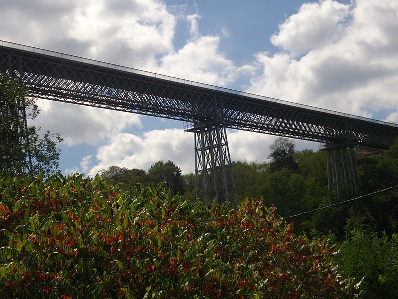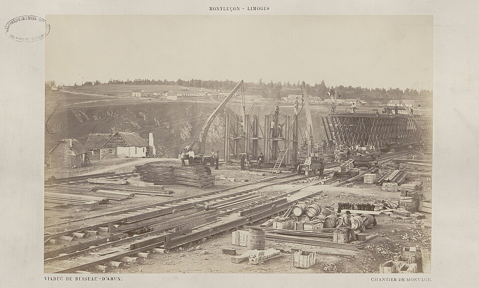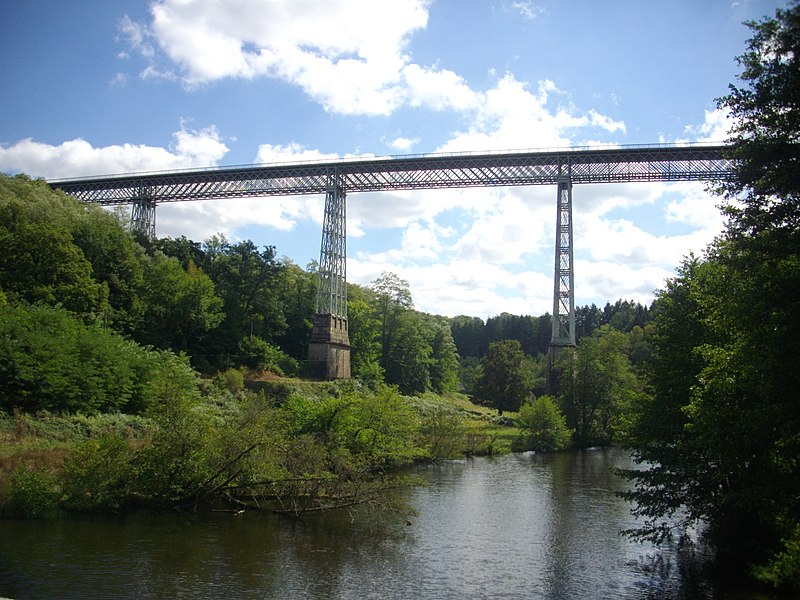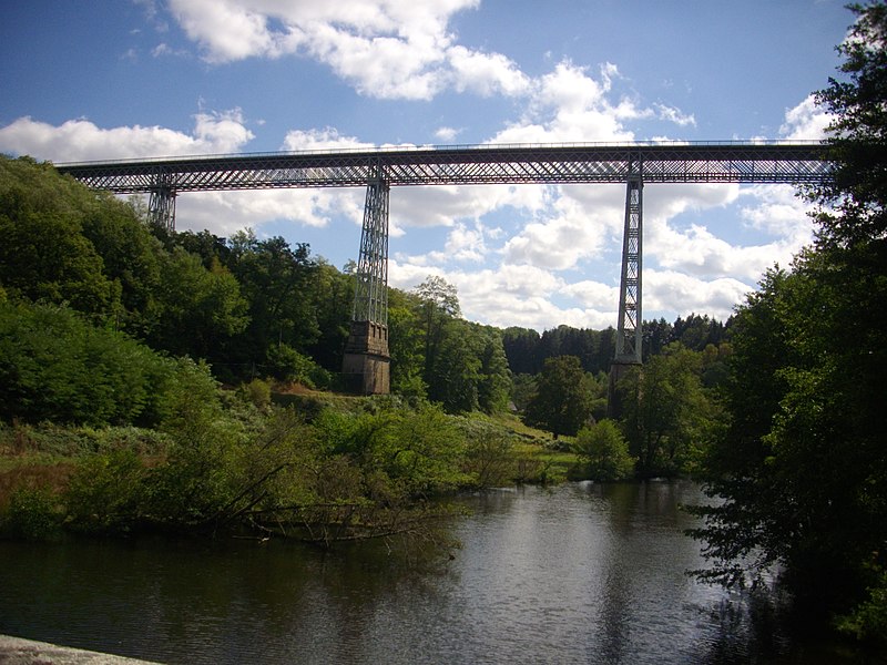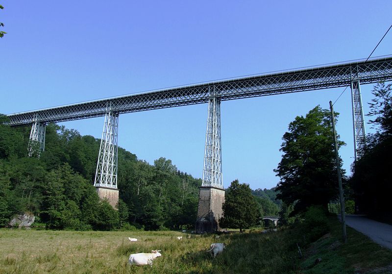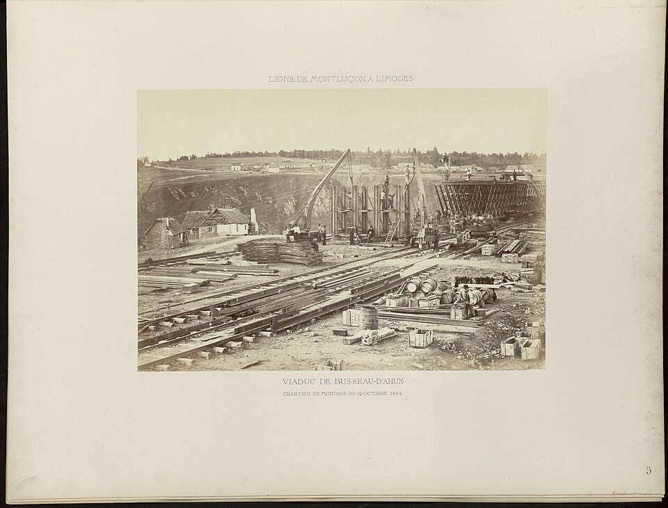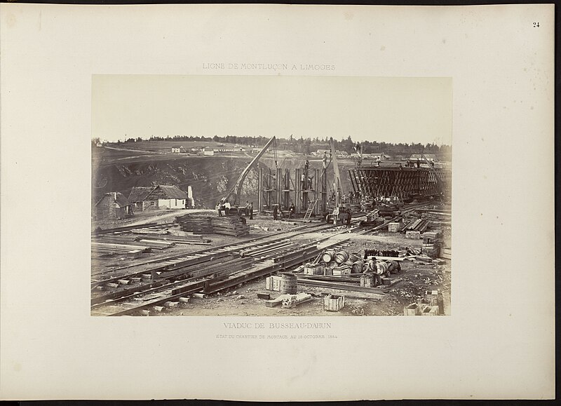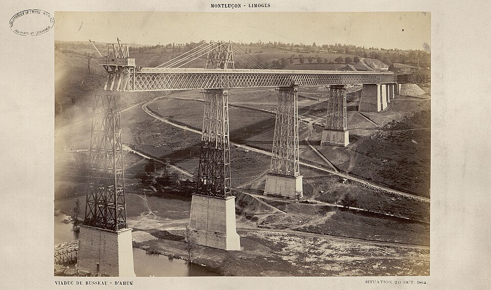 Le viaduc de Busseau-sur-Creuse est un pont ferroviaire métallique situé sur les communes d'Ahun, de Pionnat et de Cressat, dans le département de la Creuse, en région Nouvelle-Aquitaine, à la sortie est de la gare de Busseau-sur-Creuse. Souvent attribué à tort à Gustave Eiffel, il domine la Creuse et mesure 320 m de longueur pour une hauteur maximale de 56,50 m. Il a été construit entre décembre 1863 et décembre 1864 ; le chantier a commencé en janvier 1864 et s'est déroulé sous la direction de Félix Moreaux. L'ouvrage a été réalisé par un consortium formé par Basile Parent, Pierre Schaken, Jules-César Houel, Ferdinand Caillet et les Établissements Jean-François Cail, sur un projet établi par Marie Thirion, Wilhelm Nördling et Charles Geoffroy, ingénieurs de la Compagnie d'Orléans. Nördling, qui a suivi le projet de près, avait précédemment participé à la commission internationale pour le viaduc de Grandfey, et le recours aux piles en treillis métalliques s'inscrit dans une évolution déjà matérialisée sur des ouvrages tels que les viaducs de Crumlin, de Fribourg et le viaduc de Portage aux États‑Unis. Face à la nécessité de franchir une brèche de 338 m entre culées avec des piles de 57 m, la Compagnie d'Orléans a choisi la solution métallique, moins coûteuse que la maçonnerie, après l'exemple de Fribourg. Pour assurer la stabilité au vent transversal, des barres d'ancrage ont été placées à l'intérieur des colonnes des piles et ancrées dans les maçonneries de base et la fondation ; la hauteur de la partie métallique des piles a été limitée à 30 m sous le tablier par prudence vis‑à‑vis de l'emploi de la fonte, les soubassements et fondations étant en maçonnerie. Pour améliorer l'aspect de l'ouvrage et éviter les arbalétriers disgracieux apparus sur d'autres viaducs, une maquette a été réalisée ; elle a conduit à éviter les surfaces gauches et à positionner deux arbalétriers quelconques dans un même plan plutôt qu'à l'intérieur des piles. Le tablier, monté sur appuis à rouleaux embiellés aux piles d'extrémité et aux culées pour permettre la dilatation, repose sur appuis fixes pour les autres piles ; la dilatation est également rendue possible par la souplesse des piles. Le tablier a été mis en place par lançage, procédé consistant à construire les travées sur une rive puis à les pousser successivement en position, méthode déjà employée en Europe pour le viaduc de Fribourg par l'ingénieur Ferdinand Mathieu. Le coût de l'ouvrage s'est élevé à 1 514 989 francs, pour un prix estimé à 1 453 500 francs. La ligne entre Busseau-sur-Creuse et Saint-Sulpice-Laurière a été ouverte jusqu'à la gare de Busseau-sur-Creuse en novembre 1864 et la mise en service de sections successives a permis la circulation d'un premier train après l'achèvement du montage du tablier ; la ligne Montluçon–Saint‑Sulpice‑Laurière a été ouverte dans sa totalité en février 1865. En 1905 le viaduc a reçu un platelage en béton armé et les piles ont été réparées en 1944–1945 pour réparer des dommages de guerre. Conçu initialement pour deux voies avec un tablier à quatre poutres, il est aujourd'hui utilisé en voie unique ; immédiatement après le viaduc, la bifurcation vers la ligne de Busseau-sur-Creuse à Ussel se sépare de la ligne de Montluçon à Saint‑Sulpice‑Laurière. Le pont a été inscrit au titre des monuments historiques le 15 janvier 1975. Les dimensions principales indiquent une longueur totale du tablier métallique de 286,50 m répartie en six travées dont les portées sont de 45,25 m, quatre travées de 50,00 m et 41,25 m ; la largeur du tablier est de 8 m, la hauteur des poutres métalliques de 4,50 m et la hauteur maximale de l'ouvrage de 56,50 m. La hauteur totale maximale entre le dessus du soubassement en maçonnerie et les rails est de 38,90 m, le soubassement présente des hauteurs de 12,00 m et 5,60 m, et sa largeur au niveau de l'appui de la partie métallique est de 12,60 m ; la partie métallique est traversée par sept niveaux de triangulation espacés de 4,50 m et le tablier est encadré par deux culées en maçonnerie de 36,20 m et 16,00 m.