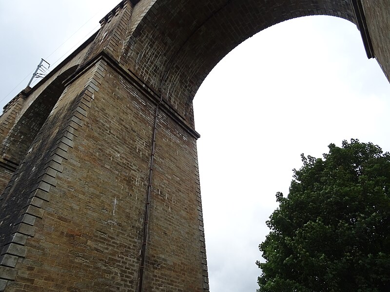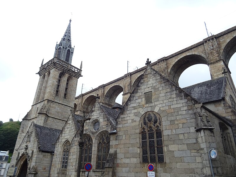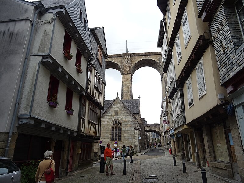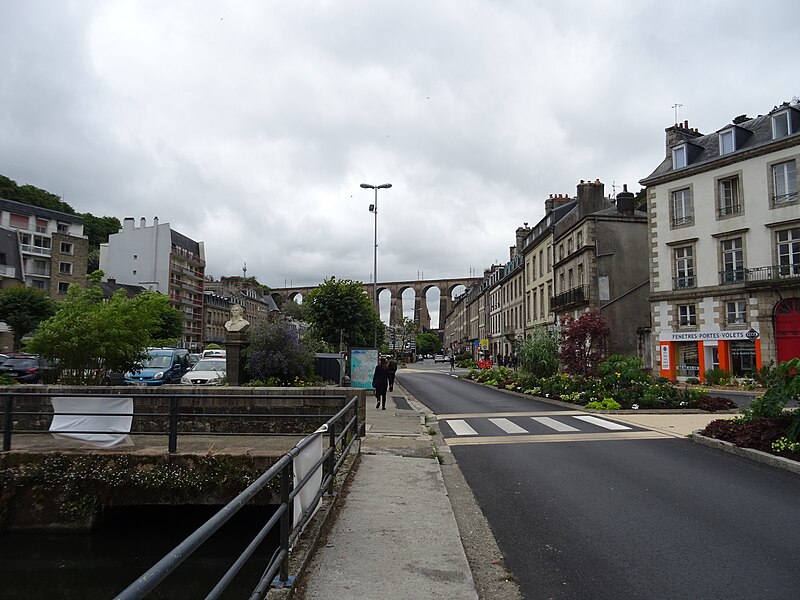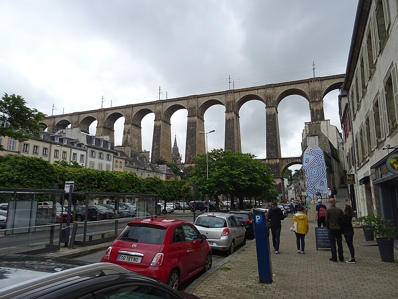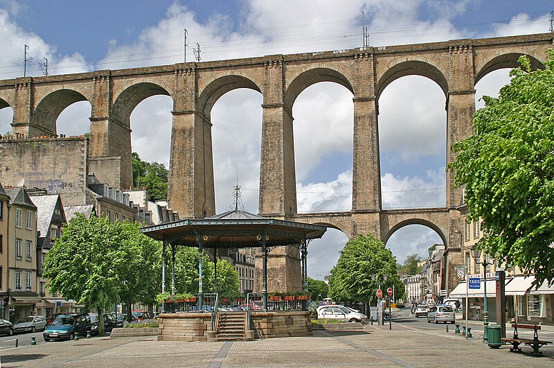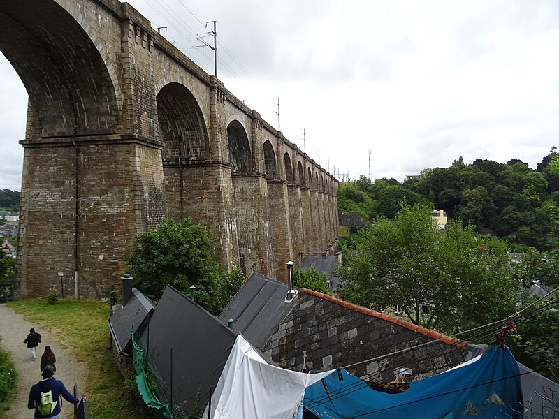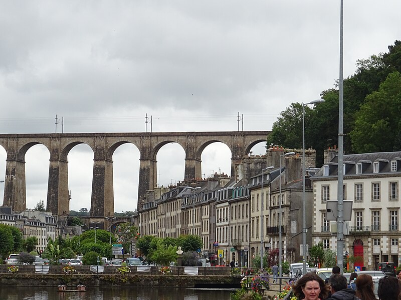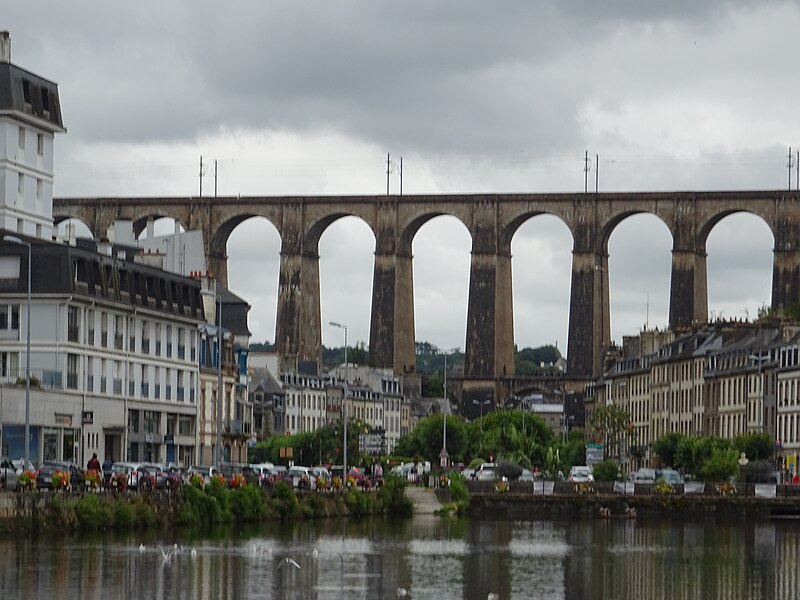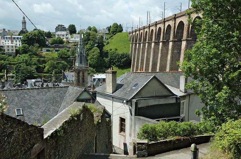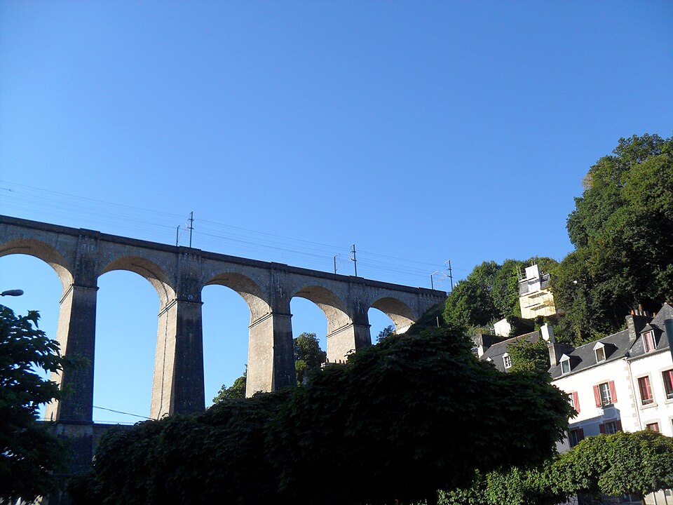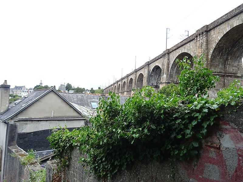 Morlaix s'étend au fond et sur les pentes d'un vallon où le Jarle et le Kefflent se rejoignent pour fermer l'estuaire du Dossen, soumis au jeu de la marée. Le port, établi à l'origine de cet estuaire, se situe à 12 km de la mer. Le viaduc ferroviaire qui enjambe le vallon donne à la ville un aspect monumental et semble séparer la cité du port. Construit pour le chemin de fer par l'ingénieur Planchat, il comprend deux niveaux d'arcades : neuf arches au niveau inférieur et quatorze au niveau supérieur. Le premier niveau abrite un passage piéton reliant les deux rives, le second porte la voie Paris–Brest desservant la gare de Morlaix. Les sources indiquent des mesures légèrement variables : la longueur est donnée comme 284 m ou 292 m et la hauteur comme 59 m ou 62 m ; la portée principale est de 15,50 m. L'ouverture des arches inférieures est de 13,47 m et celles de l'étage supérieur de 15,50 m ; l'épaisseur des piles varie entre 11,16 et 19,36 m. Le viaduc se situe au point kilométrique 562,464 de la ligne Paris-Montparnasse–Brest, précédé par la gare de Plouigneau et le viaduc de Trévidy ; son franchissement permet l'arrivée en gare de Morlaix, à 61 m d'altitude. Les travaux ont commencé le 20 juillet 1861 ; un premier convoi testa l'ouvrage le 2 novembre 1863, il fut livré à la compagnie le 11 décembre 1863 et mis en service le 25 avril 1865. En 1891, la ligne métrique de Morlaix à Carhaix emprunta le viaduc grâce à l'ajout d'un troisième rail. La construction, interrompue par les arrêts hivernaux, nécessita 23 mois de travail effectif, soit 406 105 journées d'ouvriers rémunérées. Le volume total du viaduc est de 65 830 m3 ; la construction mobilisa 11 000 m3 de granit taillé, 52 209 m3 de moellons bruts, 3 401 m3 de moellons piqués, 2 724 m3 de pierre de taille, 20 000 m3 de sable, 2 500 m3 de bois et 43 tonnes de fer. Victor Fénoux observa que l'emploi de la pierre de taille avait été limité aux encadrements, pierres d'angles, bandeaux, cordons, plinthes et bahuts, et estima que des dimensions supérieures aux nécessités strictes contribuaient au caractère monumental de l'ouvrage. Le coût final fut de 2 502 905,23 F, porté à 2 674 540,46 F avec la voirie, proche des prévisions initiales. Le 29 janvier 1943, des chasseurs-bombardiers Boston de la Royal Air Force larguèrent 43 bombes sur Morlaix dans le but de couper la ligne en endommageant le viaduc ; une seule bombe provoqua une brèche de quatre par cinq mètres entre les troisième et quatrième piliers. Malgré les destructions humaines — quatre-vingts habitants furent tués — le viaduc ne subit que des dégâts limités, le trafic n'ayant été interrompu que quelques heures et l'ouvrage rapidement réparé. Le viaduc de La Méaugon, également important mais isolé de toute habitation, n'a pas été bombardé. L'ouvrage a été inscrit au titre des monuments historiques le 29 octobre 1975. L'iconographie et la bibliographie rassemblent des vues et études anciennes, notamment une gravure de Félix Benoist (1865), des vues de 1873 et du début du XXe siècle, ainsi que des analyses publiées par Victor Fénoux, François Caron, Jean-Pierre Euzen, Guy Grattesat, Serge Montens et Marcel Prade.