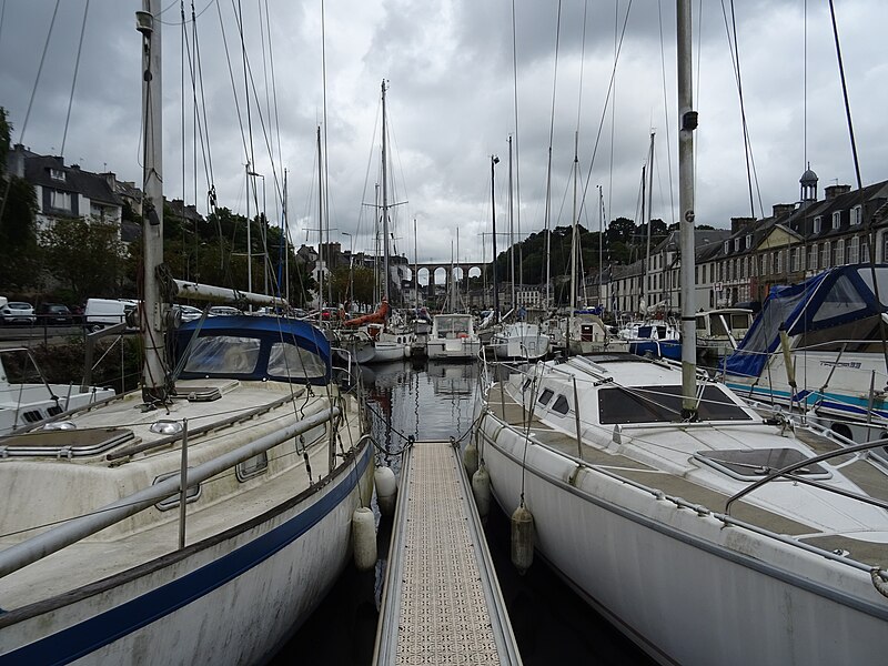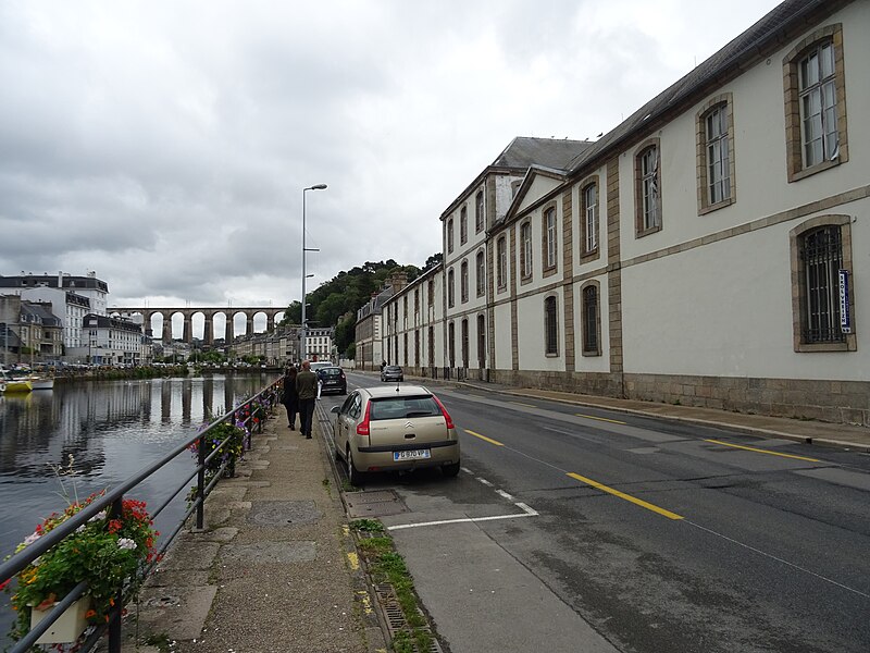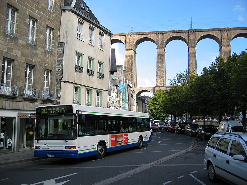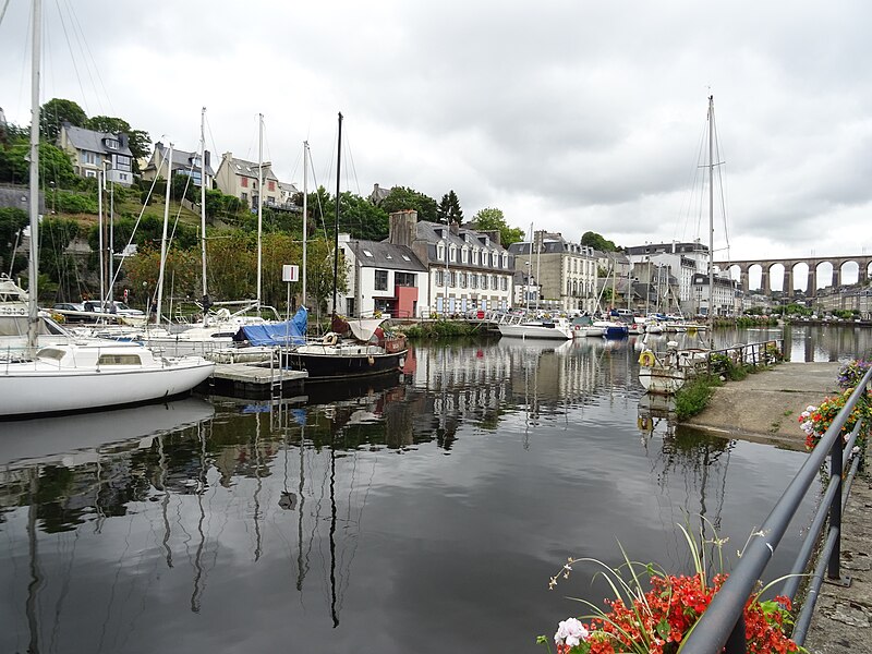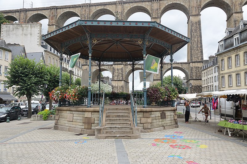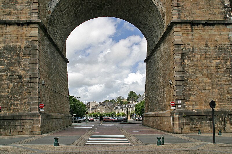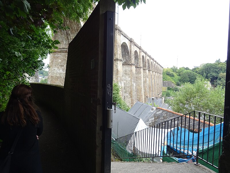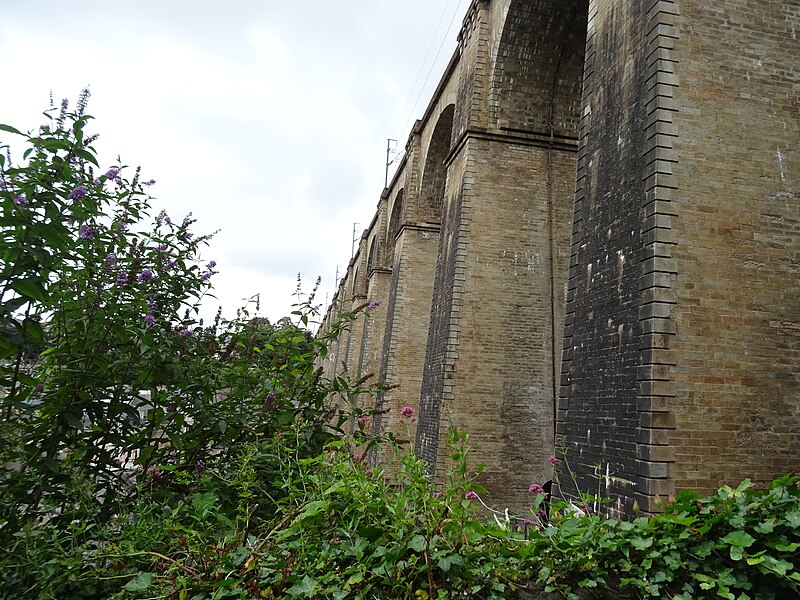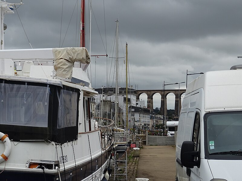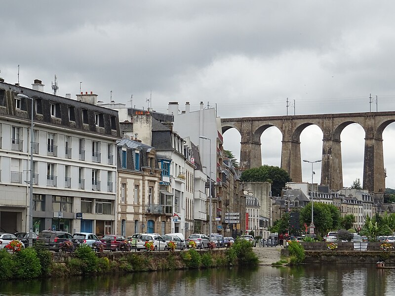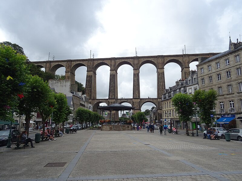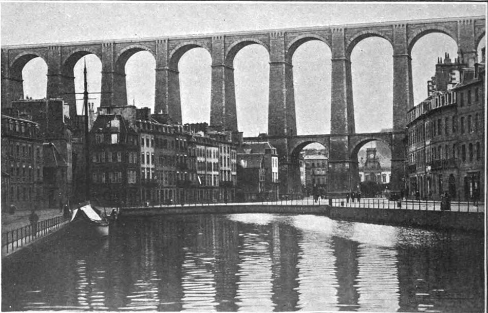 Morlaix s'étend au fond et sur les pentes d'un vallon où le Jarle et le Kefflent se rejoignent pour fermer l'estuaire du Dossen, soumis au jeu de la marée. Le port, établi à l'origine de cet estuaire, se situe à 12 km de la mer. Le viaduc ferroviaire qui enjambe le vallon donne à la ville un aspect monumental et semble séparer la cité du port. Construit pour le chemin de fer par l'ingénieur Planchat, il comprend deux niveaux d'arcades : neuf arches au niveau inférieur et quatorze au niveau supérieur. Le premier niveau abrite un passage piéton reliant les deux rives, le second porte la voie Paris–Brest desservant la gare de Morlaix. Les sources indiquent des mesures légèrement variables : la longueur est donnée comme 284 m ou 292 m et la hauteur comme 59 m ou 62 m ; la portée principale est de 15,50 m. L'ouverture des arches inférieures est de 13,47 m et celles de l'étage supérieur de 15,50 m ; l'épaisseur des piles varie entre 11,16 et 19,36 m. Le viaduc se situe au point kilométrique 562,464 de la ligne Paris-Montparnasse–Brest, précédé par la gare de Plouigneau et le viaduc de Trévidy ; son franchissement permet l'arrivée en gare de Morlaix, à 61 m d'altitude. Les travaux ont commencé le 20 juillet 1861 ; un premier convoi testa l'ouvrage le 2 novembre 1863, il fut livré à la compagnie le 11 décembre 1863 et mis en service le 25 avril 1865. En 1891, la ligne métrique de Morlaix à Carhaix emprunta le viaduc grâce à l'ajout d'un troisième rail. La construction, interrompue par les arrêts hivernaux, nécessita 23 mois de travail effectif, soit 406 105 journées d'ouvriers rémunérées. Le volume total du viaduc est de 65 830 m3 ; la construction mobilisa 11 000 m3 de granit taillé, 52 209 m3 de moellons bruts, 3 401 m3 de moellons piqués, 2 724 m3 de pierre de taille, 20 000 m3 de sable, 2 500 m3 de bois et 43 tonnes de fer. Victor Fénoux observa que l'emploi de la pierre de taille avait été limité aux encadrements, pierres d'angles, bandeaux, cordons, plinthes et bahuts, et estima que des dimensions supérieures aux nécessités strictes contribuaient au caractère monumental de l'ouvrage. Le coût final fut de 2 502 905,23 F, porté à 2 674 540,46 F avec la voirie, proche des prévisions initiales. Le 29 janvier 1943, des chasseurs-bombardiers Boston de la Royal Air Force larguèrent 43 bombes sur Morlaix dans le but de couper la ligne en endommageant le viaduc ; une seule bombe provoqua une brèche de quatre par cinq mètres entre les troisième et quatrième piliers. Malgré les destructions humaines — quatre-vingts habitants furent tués — le viaduc ne subit que des dégâts limités, le trafic n'ayant été interrompu que quelques heures et l'ouvrage rapidement réparé. Le viaduc de La Méaugon, également important mais isolé de toute habitation, n'a pas été bombardé. L'ouvrage a été inscrit au titre des monuments historiques le 29 octobre 1975. L'iconographie et la bibliographie rassemblent des vues et études anciennes, notamment une gravure de Félix Benoist (1865), des vues de 1873 et du début du XXe siècle, ainsi que des analyses publiées par Victor Fénoux, François Caron, Jean-Pierre Euzen, Guy Grattesat, Serge Montens et Marcel Prade.