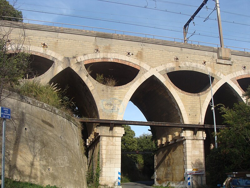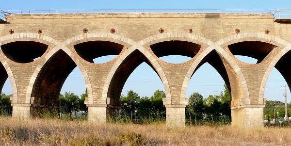 Le viaduc de Saint-Chamas, dit aussi viaduc Saint-Léger, est un ouvrage ferroviaire en maçonnerie franchissant la Touloubre sur la ligne de Paris-Lyon à Marseille-Saint-Charles, à Saint-Chamas (Bouches‑du‑Rhône). Il mesure environ 386 mètres et se situe entre les points kilométriques 815,262 et 815,648, entre les gares en service de Saint‑Chamas et de Rognac, les gares fermées de Calissanne et de Berre s'intercalant entre elles. La construction des ponts en maçonnerie au XIXe siècle en France se répartit en trois périodes : d'abord les grands ponts routiers pour le bouclage du réseau national, puis l'ère des voies ferrées qui a généré de nombreux viaducs en maçonnerie, enfin un dernier renouveau à la fin du siècle impulsé par Paul Séjourné. Mis en service en 1848, le viaduc de Saint‑Chamas relève de cette seconde période et a été réalisé sous la direction de l'ingénieur Gustave Desplaces. D'une longueur totale également indiquée à 385,40 m, il est constitué de 49 arches en plein cintre enchevêtrées, qui se croisent au tiers de leur hauteur et forment une série d'ogives. Sa hauteur maximale est de 31 mètres. Si sa ligne insolite peut séduire, son dispositif constructif suscite des réserves sur la pertinence de cette complexité. La disposition a permis de diminuer l'épaisseur des voûtes, au prix d'un ajout de piles supplémentaires qui, selon l'observation critique, n'étaient peut‑être pas nécessaires. Quelques ponts de la même époque présentent des intrados ogivaux, mais peu sont comparables au viaduc de Saint‑Chamas. Paul Séjourné porta un jugement sévère sur cet ouvrage : « C'est cher et laid. Fort heureusement, ces ouvrages saugrenus n'ont pas été imités. » Le viaduc est inscrit au titre des Monuments historiques par arrêté du 28 décembre 1984 ; l'inscription souligne notamment l'enchevêtrement symétrique des arcs formant des voûtes en ogives, la visibilité des lignes d'électrification et la présence d'une passerelle de service. Des ouvrages spécialisés et des ressources en ligne (Mérimée, PSS, Structurae, Wikimedia Commons) documentent cet édifice.