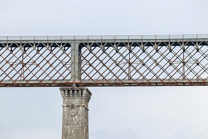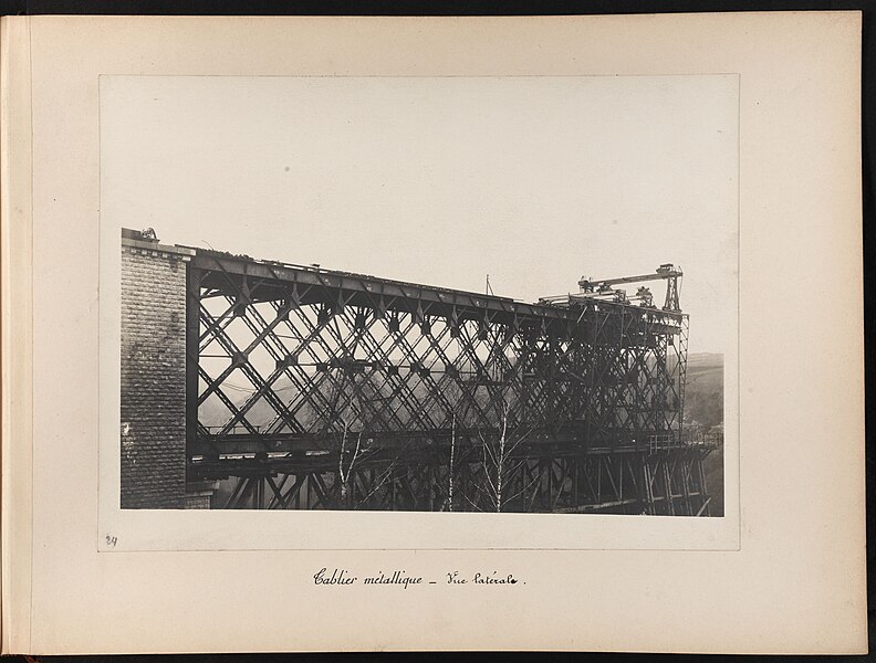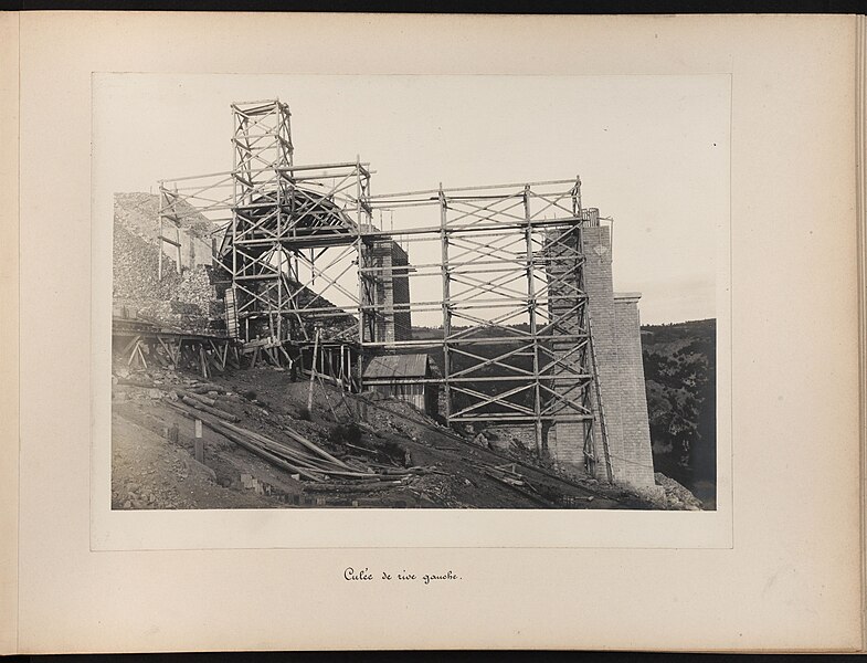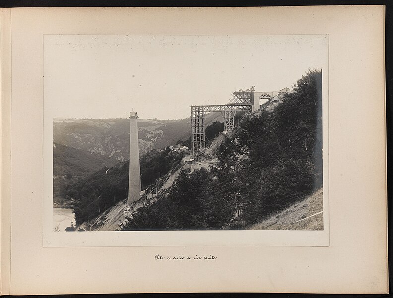 Le chantier, commencé en octobre 1901, confia la construction des piles à la corporation des maçons itinérants de la Creuse ; bâties à chaux et à sable et évidées, ces piles furent élevées sans échafaudages extérieurs grâce à un accès intérieur par monte-charge. Le montage du tablier s’est effectué au moyen de deux « cages » volantes parties de chaque rive et équipées pour le bardage, la pose et le rivetage ; les travées latérales de 116 mètres furent montées pour moitié sur un échafaudage géant reposant sur piles provisoires en bois puis complétées en porte-à-faux, tandis que la travée centrale de 144 mètres fut mise en place entièrement en encorbellement, la jonction finale s’opérant le 18 mai 1909. L’ouvrage fut achevé le 11 septembre, soumis aux épreuves de résistance du 14 au 16 septembre avec un train chargé de ballast de 1 075 tonnes et inauguré le 10 octobre 1909, avant d’être mis en service dix jours plus tard.