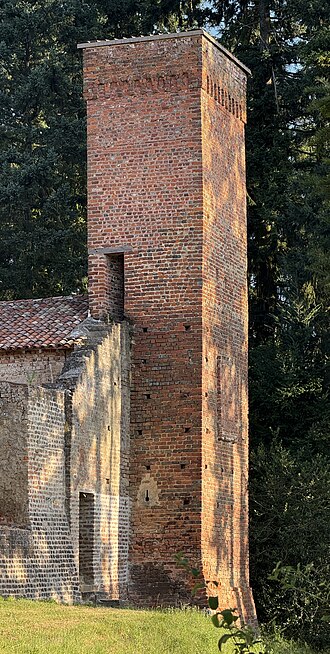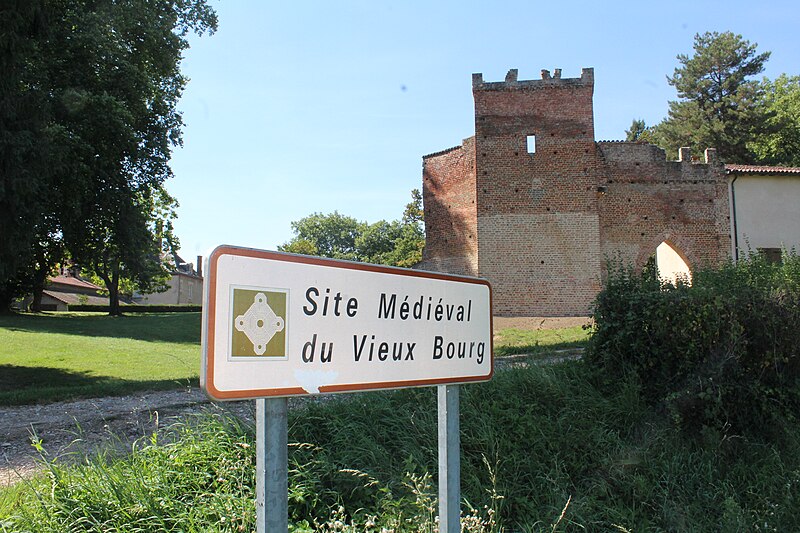 Le site médiéval du Vieux Bourg se situe au sommet d'une colline, lieu-dit Abergement, sur la commune de L'Abergement-Clémenciat (Ain, Auvergne-Rhône-Alpes). Les premiers documents le concernant remontent au XIVe siècle, avec une mention en 1250 dans le pouillé du diocèse de Lyon, et il pourrait avoir des origines gallo-romaines. Au début du XIVe siècle, les sires de Chabeu établirent un nouveau site fortifié près de l'ancien centre paroissial ; il subsiste des ruines dont des murs d'enceinte attribués au XIVe siècle. Le plan est un ovale fossoyé d'environ 190 × 130 m comprenant une butte artificielle circulaire (45 m de diamètre, près de 6 m de hauteur) dominant une plate-forme accolée (70 × 50 m) et une seconde plate-forme en croissant (longueur 140 m, largeur maximale 40 m). L'ensemble est ceint d'un fossé d'environ 15 m de large et d'un remblai de terre de 20 m ; une enceinte de briques subsiste à l'est et au sud, flanquée à l'origine de cinq tours dont trois sont conservées (une tour circulaire au sud et deux tours quadrangulaires à l'est), et une poterne à arc brisé perce la muraille est. Sur la plate-forme se dressent une église datée des XVIe–XVIIe siècles accolée à la muraille, une maison rurale à galerie adossée à l'enceinte et un bâtiment en pisé ; le cimetière, situé à l'ouest et au nord de l'église, a été utilisé jusqu'à la fin du XIXe siècle. La « Tour-Chabeu » était encore visible au sommet en 1938 comme vestige d'une tour ronde probablement du XVe siècle. Le site, qualifié de motte avec basse-cour surélevée, est protégé au titre des monuments historiques : le site médiéval est classé par arrêté du 18 novembre 1994 et les mottes castrales dites poype de la Féole et poype du Péage sont inscrites par arrêté du 22 juin 2015.
