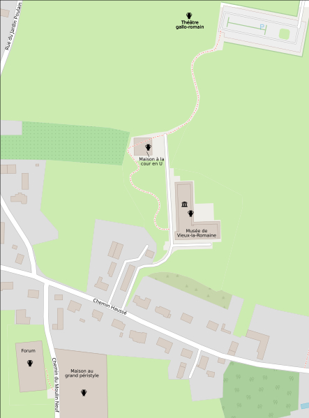 Le musée archéologique de Vieux-la-Romaine, ouvert en 2002, présente ces découvertes, et les vestiges restaurés de la maison au grand péristyle sont librement accessibles. À partir de plans anciens et de prospections aériennes et géophysiques récentes, le lieu-dit « le Champ des Crêtes » a livré des confirmations de la présence du forum et de divers édifices publics ; une nouvelle campagne de fouilles a été engagée en 2007 pour dégager ces structures encore mal connues. L’ensemble des vestiges du bas de Vieux est inscrit à l’inventaire supplémentaire des monuments historiques (ISMH, 27/06/1988). Les ruines du théâtre bénéficient de protections distinctes : les vestiges du lieu-dit Jardin Poulain sont classés (CLMH, 21/04/1980), tandis que ceux du lieu-dit de l’école sont inscrits (ISMH, 06/02/1980).