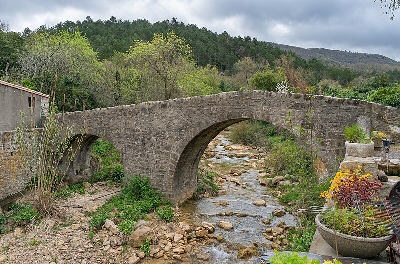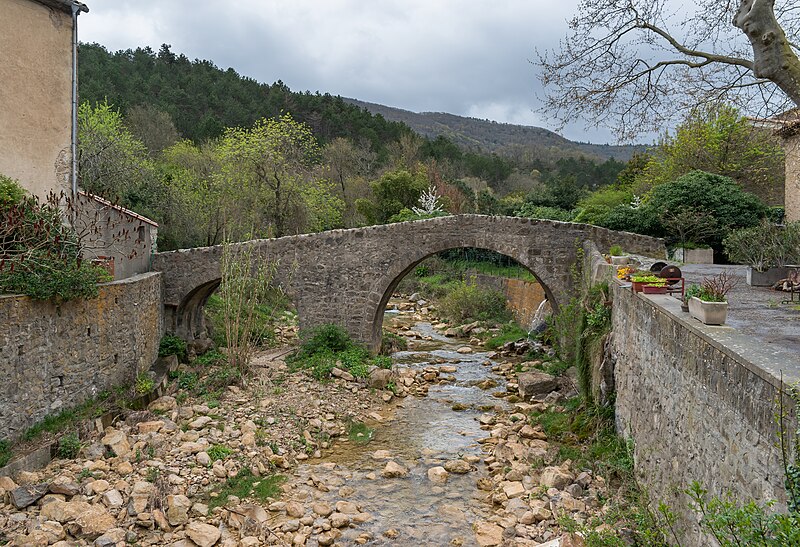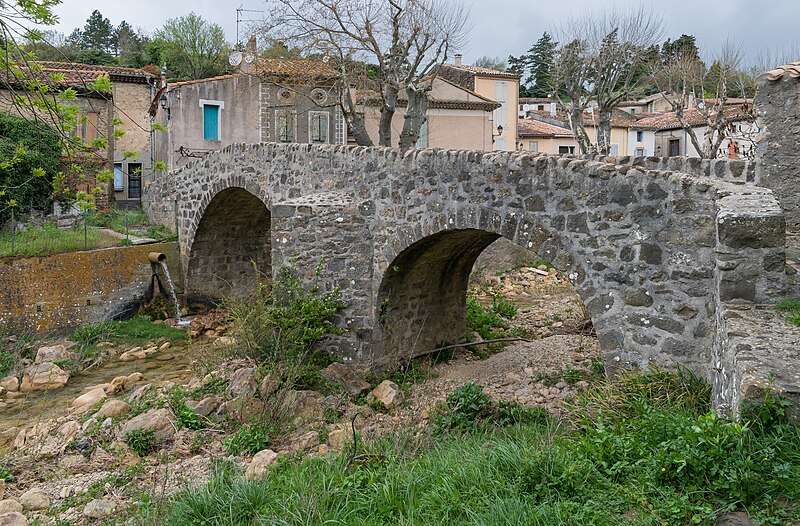 Le vieux pont de Labastide-en-Val se situe sur la commune de Labastide-en-Val, dans le département de l'Aude en région Occitanie. Sa date de construction est inconnue, mais il figure comme « ancien » dans l'état des ponts dressé en 1777. Avec la construction d'un autre ouvrage, il constituait le seul lien entre le village et l'église. L'église primitive est mentionnée dans plusieurs documents du IXe siècle, et le village lui-même est une bastide créée au XIIIe siècle. Il est possible que le pont ait remplacé une passerelle en bois antérieure. L'étroitesse du passage et l'absence de bandeau aux naissances de la voûte de la grande arche laissent supposer une réalisation antérieure au XVIIe siècle. La petite arche a été reconstruite en 1773, en remplacement d'une arche encore plus petite. L'édifice fait l'objet d'une inscription au titre des monuments historiques depuis le 27 septembre 1948.