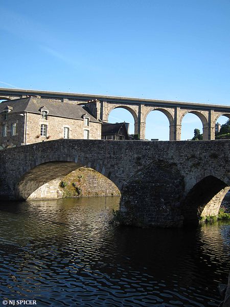 Le Vieux pont est un pont routier qui franchit la Rance, situé sur les communes de Dinan et de Lanvallay dans les Côtes-d'Armor, en Bretagne. Un premier ouvrage est mentionné en 1070 dans la charte de fondation du prieuré du Pont à Dinan, implanté en rive droite et fondé entre 1070 et 1118. Les plus anciennes parties du pont actuel remontent au XVe ou au XVIe siècle, notamment une arche romane et une arche en arc brisé. Par arrêté du 10 février 1903, le pont a été classé au titre des monuments historiques. En 1922, l'architecte Raymond Cornon a remanié l'ouvrage et créé une grande "arche marinière" pour permettre le passage des bateaux en direction de Rennes. À l'origine, le pont reposait sur cinq arches, mêlant plein cintre et arcs brisés ; la première arche, côté Dinan et en plein cintre, a été bouchée et remblayée en raison du recul du lit de la Rance. Les deux travées encore visibles mesurent respectivement 6,40 mètres et 16,20 mètres. Suite aux diverses reconstructions, le pont n'est plus rectiligne comme à l'origine. Jusqu'en 1824, des moulins à eau étaient accostés au pont. Des photographies témoignent de son aspect au début du XXe siècle, d'une vue générale en 2008 et de vues aériennes. Pour approfondir, on peut consulter la liste des monuments historiques des Côtes-d'Armor ainsi que les portails consacrés aux ponts, aux monuments historiques français et aux Côtes-d'Armor.