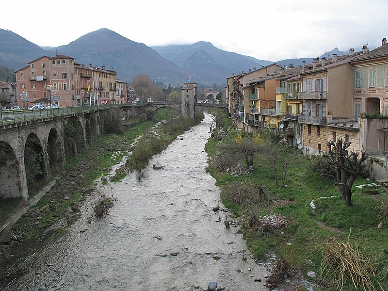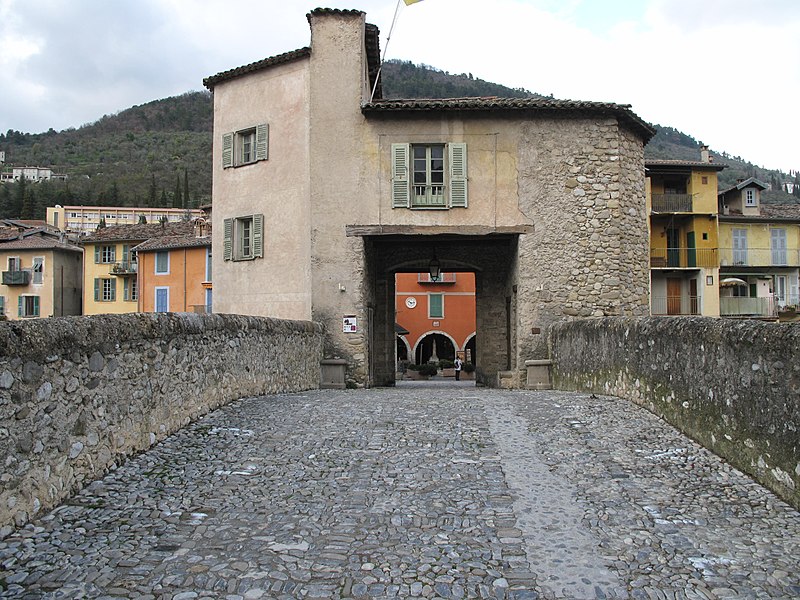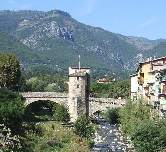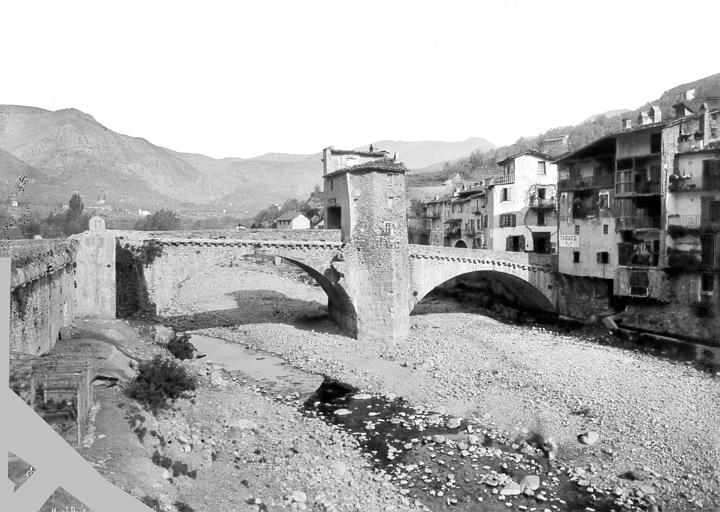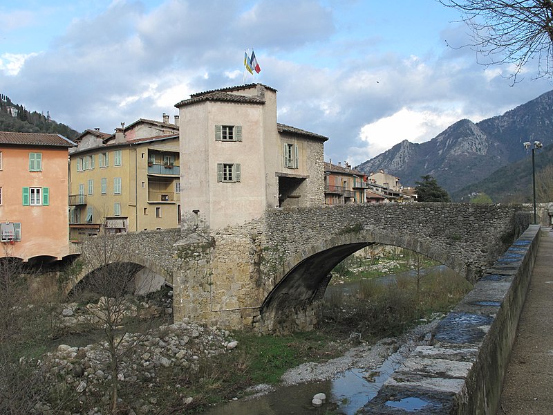 Le Vieux pont, surmonté d’une tour, est un pont fortifié situé à Sospel, au‑dessus de la Bévéra, dans les Alpes‑Maritimes. Au Moyen Âge, Sospel était le chef‑lieu de la viguerie du val de Lantosque et du comté de Vintimille, et le pont se trouvait sur un axe routier important reliant Nice au Piémont par la vallée de la Roya et le col de Tende. Un acte de 1217, intitulé « in Cespello ultra pontem », atteste la construction d’un pont, en bois ou en pierre, et l’on fait souvent remonter le premier ouvrage au XIIe siècle. Il est probable que le pont ait été reconstruit en 1358 lorsque la cour comtale décida de remettre en état une partie de l’enceinte et du château. Un pont en maçonnerie est mentionné pour la première fois en 1522 après l’effondrement d’une arche ; l’amorce de cette voûte effondrée est encore visible sur la pile centrale. La tour centrale, peut‑être postérieure au pont, apparaît déjà sur une estampe du Theatrum Sabaudiæ de 1682. Un nouveau pont fut construit à l’aval en 1773 pour la route royale Nice‑Turin, mais le vieux pont fut amélioré en 1787 par Giacinto Donato, qui reconstruit et abaissa l’arche nord pour faciliter l’accès à la place Saint‑Nicolas. Le pont fut miné et détruit dans la nuit du 27 au 28 octobre 1944 lors de la retraite des troupes allemandes, puis reconstruit à l’identique entre 1952 et le début 1957 en réutilisant les mêmes pierres. L’édifice est classé au titre des monuments historiques depuis le 8 juillet 1924. Il mesure 36,00 m de longueur ; la chaussée sur les arches a 5,50 m de largeur, les ouvertures sur la Bévéra sont de 14,00 et 15,00 m, et l’épaisseur de la pile centrale est de 5,00 m. La bibliographie cite notamment Marcel Prade (Les ponts monuments historiques, p. 59‑60) et Bertrand Roussel et Frédéric Boyer (Patrimoine historique — Les 70 sites majeurs des Alpes‑Maritimes, p. 82‑83). Des ressources en ligne et des notices locales (DRAC PACA Patrimages, Sospel Tourisme, portails consacrés aux ponts et aux monuments historiques) complètent les informations disponibles.