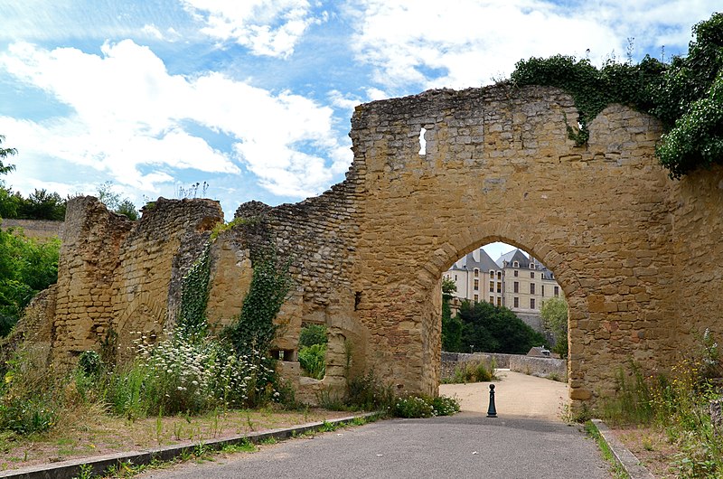 Le Vieux Pont et sa poterne, dit aussi Pont Neuf ou Pont Saint-Jean, s'articulent en deux parties : l'une franchit le Thouet, l'autre enjambe un ancien bras desséché qui forme une île sur laquelle sont implantées des fortifications. L'ensemble semble remonter aux XIe–XIIe siècles, les fondations pouvant être plus anciennes ; d'autres mentions le situent au XIIIe siècle. Il a été fortifié au XVe siècle et complété par une tour-porte appelée porte Maillot.
