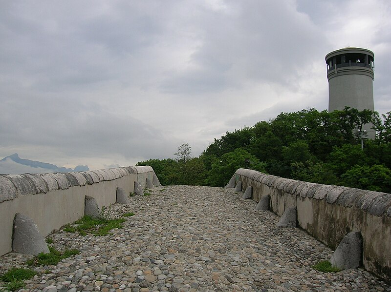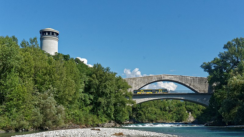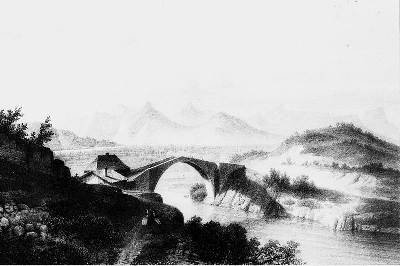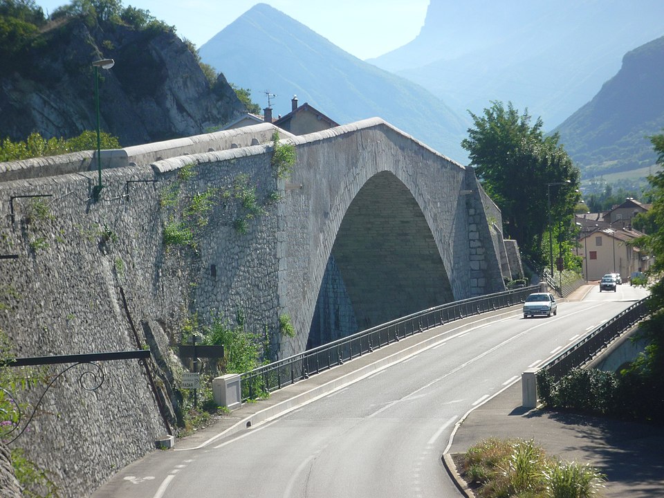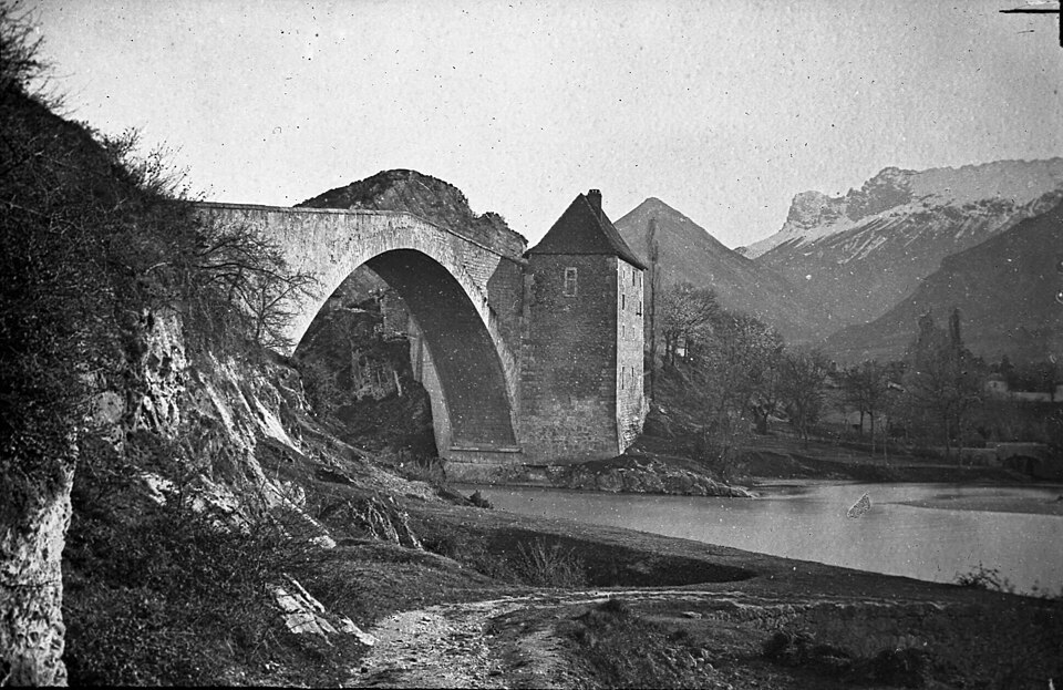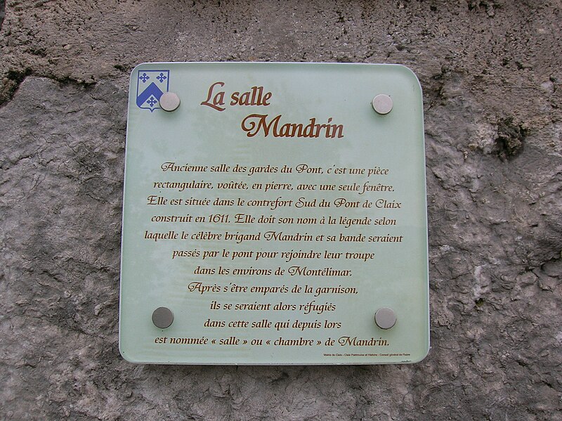 La tradition rapporte plusieurs épisodes liés à Mandrin : en 1754 il aurait attaqué des employés des gabelles sur le pont, tué un gardien et neutralisé d’autres gardes pour laisser passer sa bande, tandis qu’une autre version le fait se jeter du haut du pont avec son cheval pour échapper à ses poursuivants ; l’ancien corps de garde conserve le nom de salle Mandrin. En 1873, en raison des difficultés d’accès, un nouveau pont surbaissé fut construit en aval, à une très courte distance de l’ancien, et la circulation principale fut progressivement détournée sur l’ouvrage moderne.