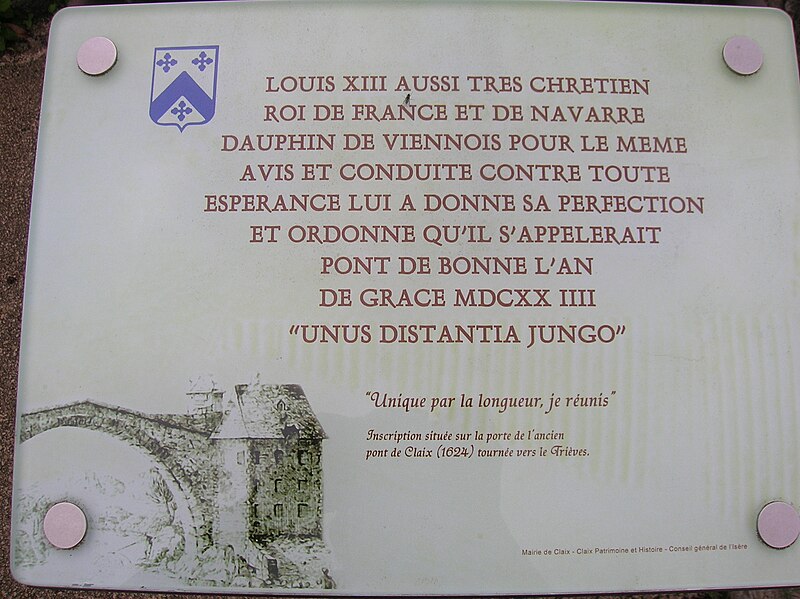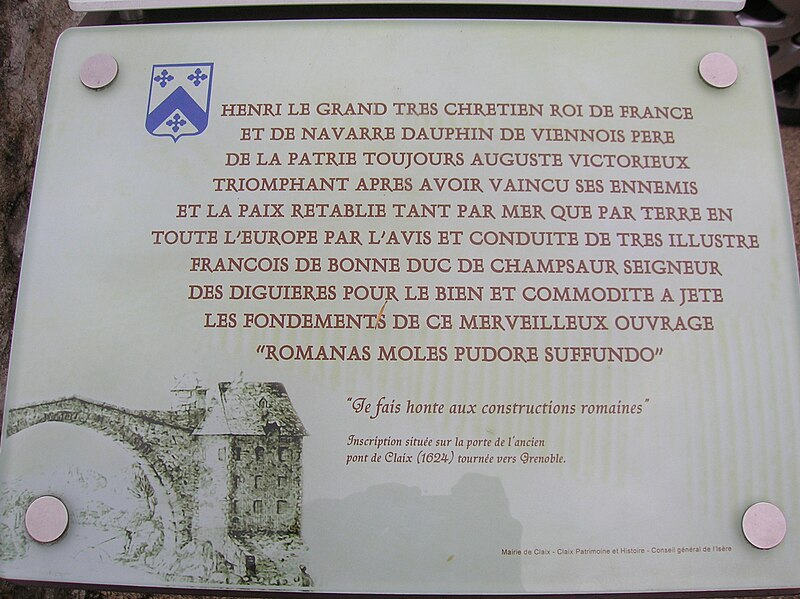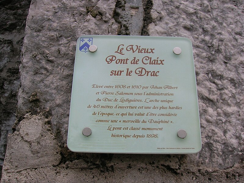 Parmi les sources consacrées au pont et à la commune figurent des publications de Jean-Claude Michel, des ouvrages de l’association Claix Patrimoine et Histoire, un travail du général L.-D. Bezegher et la biographie de Louis Videl sur le connétable de Lesdiguières.