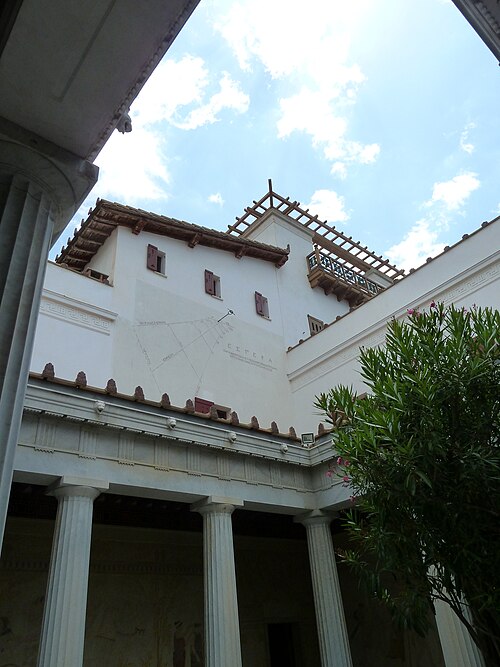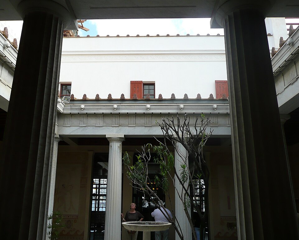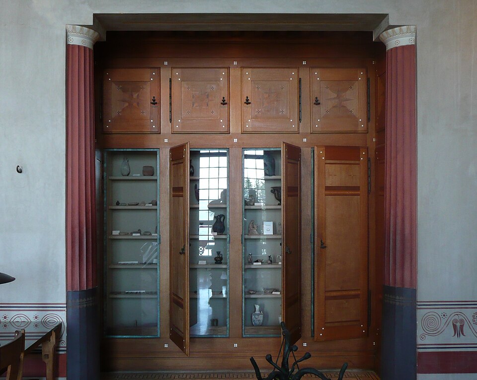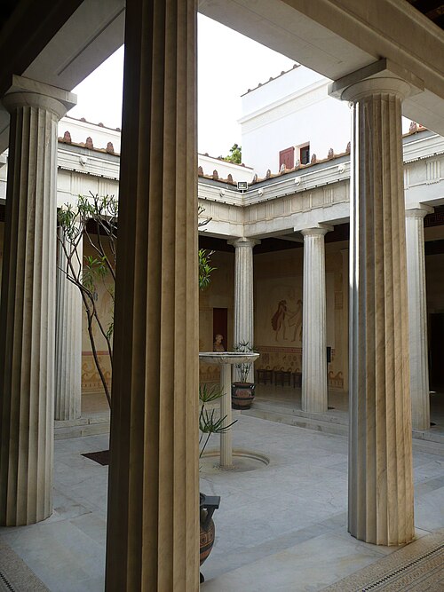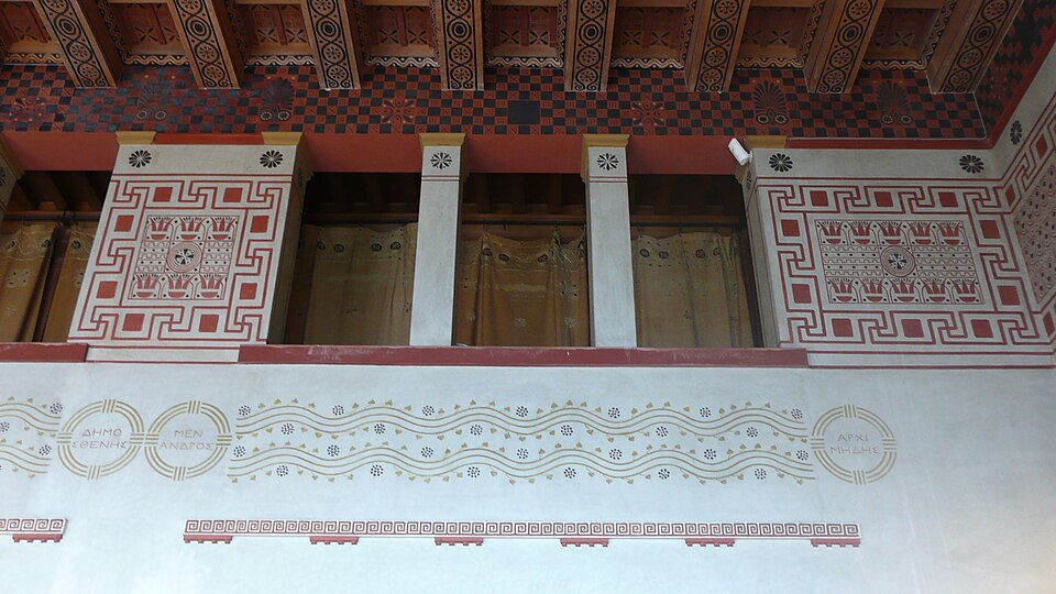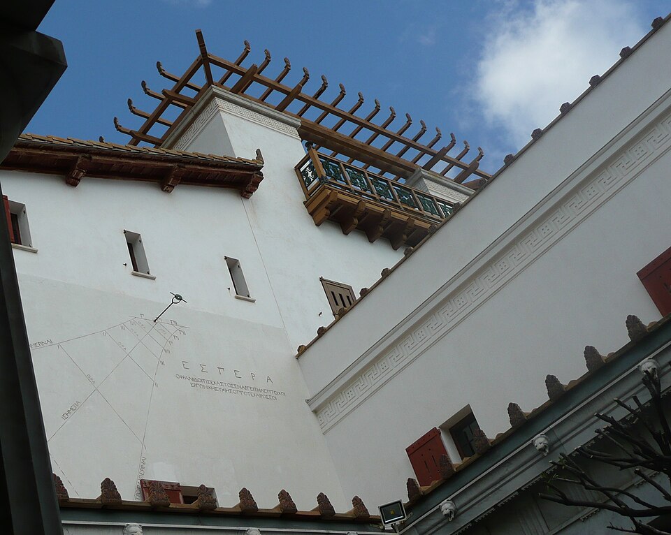 La villa Kérylos, située à Beaulieu‑sur‑Mer sur un promontoire dominant la Méditerranée, a été construite entre 1902 et 1908 par l'architecte Emmanuel‑Elisée Pontremoli pour l'historien et archéologue Théodore Reinach. Conçue comme une reconstitution idéale d'une demeure grecque hellénistique, elle intègre cependant le confort moderne, y compris l'éclairage électrique. La composition reprend le plan d'une maison de Délos avec un péristyle ceint d'une cour carrée autour de laquelle s'organisent pièces de réception, bains et appartements privés. Le péristyle est entouré de douze colonnes monolithes en marbre blanc de Carrare taillées par Nicoli et décoré de fresques mythologiques peintes à la manière antique par Adrien Karbowsky et Gustave‑Louis Jaulmes, tandis que les stucs sont l'œuvre de Paul Gasq. Les bains (balanéion) révèlent un équipement inspiré des thermes antiques, avec bassin central et abside ; les anciennes cuisines et offices ont été transformés en salles d'exposition et de conférences. La bibliothèque, pièce maîtresse, présente des meubles en bois fruitier chevillés et marquetés d'ivoire, de buis et d'ébène d'après des modèles antiques, des sièges en cuir, des coffres cloutés et des collections d'ouvrages consacrés à la civilisation grecque. Le mobilier et la vaisselle ont été conçus selon des modèles anciens : les meubles sur dessins de Pontremoli ont été réalisés par l'ébéniste Bettenfeld, la vaisselle par Emile Lenoble, et les tentures de lin brodées par l'atelier Ecochard. Matériaux précieux — marbre de Carrare, albâtre, bois exotiques et citronnier — ainsi que incrustations d'ivoire, de bronze et de cuir soulignent l'alliance entre reconstitution archéologique et luxe de la Belle Époque. L'ornementation picturale du péristyle illustre des épisodes antiques majeurs, parmi lesquels la mort du géant Talos et le mariage de Pélops et Hippodamie, ainsi que plusieurs scènes liées à Apollon, Dionysos et le retour d'Héphaïstos. La statuaire, composée en grande partie de moulages grandeur nature et de reproductions, comprend des exemplaires du Sophocle du Latran, de l'Aurige de Delphes, d'Athéna, d'Alexandre et d'autres figures antiques exposées dans les salons et trois galeries créées à la fin du XXe siècle. Les pièces de réception — triklino, andrôn, oïkos — reproduisent usages et décors grecs : salle à manger octogonale avec plafond doré et mosaïque centrale, salon masculin revêtu de marbres et mosaïques illustrant le mythe du labyrinthe, et petit salon dédié à Dionysos orné de scènes de vendanges. Au premier étage, chambres et appartements conservent des décors peints et des aménagements inspirés de modèles antiques, tandis que le deuxième étage servait de logement de fonction et les sous-sols furent adaptés pour des expositions et conférences. La construction, financée pour l'essentiel sur la fortune de la famille de Reinach, fut léguée à l'Institut de France à la mort de Théodore Reinach en 1928 ; la villa a été classée monument historique en 1966 puis aménagée en musée et ouverte au public en 1967. Au cours du XXe siècle, certaines dépendances et pièces de service ont été transformées en salles de conférences, en bureaux ou en espaces d'accueil, et des événements culturels et scientifiques y sont régulièrement organisés. La gestion a successivement impliqué la Fondation Théodore Reinach ; depuis le 1er janvier 2016, le site est pris en charge par le Centre des monuments nationaux. La villa a accueilli diverses manifestations et expositions temporaires, et a servi de lieu de réception pour des visites et événements institutionnels. L'ensemble formé par la villa, ses dépendances et son jardin — cour anglaise, galerie des douaniers, garage à bateau, maison de gardien et fabriques de jardins — a fait l'objet d'une inscription au titre des monuments historiques par arrêté du 14 novembre 2024. Un atelier de céramique installé sur place permet d'expliquer les techniques artisanales antiques et complète l'offre muséographique. Kérylos illustre une architecture néo‑antique mêlée d'influences Art nouveau, où la recherche archéologique et le goût décoratif de la Belle Époque se répondent pour recréer une demeure hellénistique adaptée au XXe siècle.