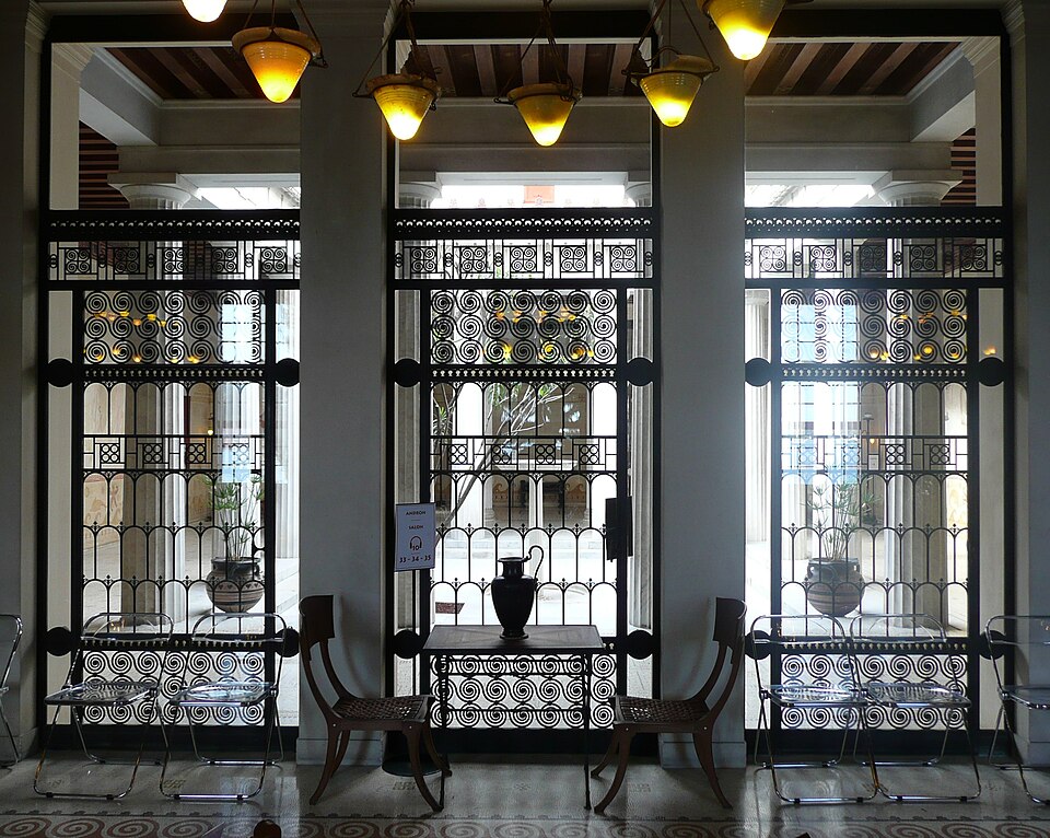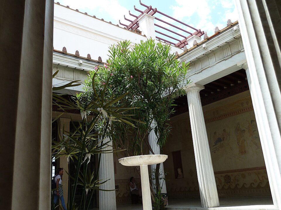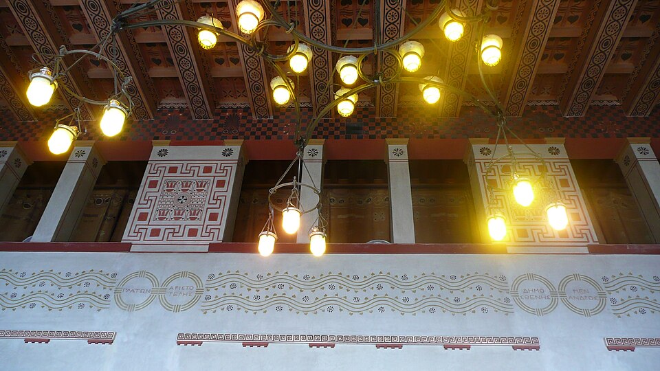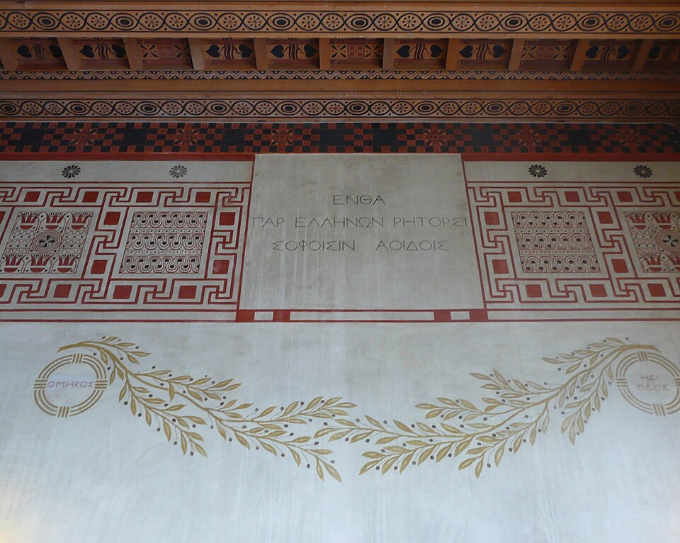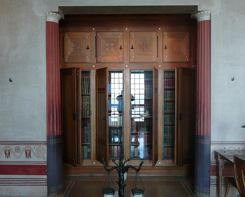 La villa Kérylos, située à Beaulieu‑sur‑Mer sur un promontoire dominant la Méditerranée, a été construite entre 1902 et 1908 par l'architecte Emmanuel‑Elisée Pontremoli pour l'historien et archéologue Théodore Reinach. Conçue comme une reconstitution idéale d'une demeure grecque hellénistique, elle intègre cependant le confort moderne, y compris l'éclairage électrique. La composition reprend le plan d'une maison de Délos avec un péristyle ceint d'une cour carrée autour de laquelle s'organisent pièces de réception, bains et appartements privés. Le péristyle est entouré de douze colonnes monolithes en marbre blanc de Carrare taillées par Nicoli et décoré de fresques mythologiques peintes à la manière antique par Adrien Karbowsky et Gustave‑Louis Jaulmes, tandis que les stucs sont l'œuvre de Paul Gasq. Les bains (balanéion) révèlent un équipement inspiré des thermes antiques, avec bassin central et abside ; les anciennes cuisines et offices ont été transformés en salles d'exposition et de conférences. La bibliothèque, pièce maîtresse, présente des meubles en bois fruitier chevillés et marquetés d'ivoire, de buis et d'ébène d'après des modèles antiques, des sièges en cuir, des coffres cloutés et des collections d'ouvrages consacrés à la civilisation grecque. Le mobilier et la vaisselle ont été conçus selon des modèles anciens : les meubles sur dessins de Pontremoli ont été réalisés par l'ébéniste Bettenfeld, la vaisselle par Emile Lenoble, et les tentures de lin brodées par l'atelier Ecochard. Matériaux précieux — marbre de Carrare, albâtre, bois exotiques et citronnier — ainsi que incrustations d'ivoire, de bronze et de cuir soulignent l'alliance entre reconstitution archéologique et luxe de la Belle Époque. L'ornementation picturale du péristyle illustre des épisodes antiques majeurs, parmi lesquels la mort du géant Talos et le mariage de Pélops et Hippodamie, ainsi que plusieurs scènes liées à Apollon, Dionysos et le retour d'Héphaïstos. La statuaire, composée en grande partie de moulages grandeur nature et de reproductions, comprend des exemplaires du Sophocle du Latran, de l'Aurige de Delphes, d'Athéna, d'Alexandre et d'autres figures antiques exposées dans les salons et trois galeries créées à la fin du XXe siècle. Les pièces de réception — triklino, andrôn, oïkos — reproduisent usages et décors grecs : salle à manger octogonale avec plafond doré et mosaïque centrale, salon masculin revêtu de marbres et mosaïques illustrant le mythe du labyrinthe, et petit salon dédié à Dionysos orné de scènes de vendanges. Au premier étage, chambres et appartements conservent des décors peints et des aménagements inspirés de modèles antiques, tandis que le deuxième étage servait de logement de fonction et les sous-sols furent adaptés pour des expositions et conférences. La construction, financée pour l'essentiel sur la fortune de la famille de Reinach, fut léguée à l'Institut de France à la mort de Théodore Reinach en 1928 ; la villa a été classée monument historique en 1966 puis aménagée en musée et ouverte au public en 1967. Au cours du XXe siècle, certaines dépendances et pièces de service ont été transformées en salles de conférences, en bureaux ou en espaces d'accueil, et des événements culturels et scientifiques y sont régulièrement organisés. La gestion a successivement impliqué la Fondation Théodore Reinach ; depuis le 1er janvier 2016, le site est pris en charge par le Centre des monuments nationaux. La villa a accueilli diverses manifestations et expositions temporaires, et a servi de lieu de réception pour des visites et événements institutionnels. L'ensemble formé par la villa, ses dépendances et son jardin — cour anglaise, galerie des douaniers, garage à bateau, maison de gardien et fabriques de jardins — a fait l'objet d'une inscription au titre des monuments historiques par arrêté du 14 novembre 2024. Un atelier de céramique installé sur place permet d'expliquer les techniques artisanales antiques et complète l'offre muséographique. Kérylos illustre une architecture néo‑antique mêlée d'influences Art nouveau, où la recherche archéologique et le goût décoratif de la Belle Époque se répondent pour recréer une demeure hellénistique adaptée au XXe siècle.