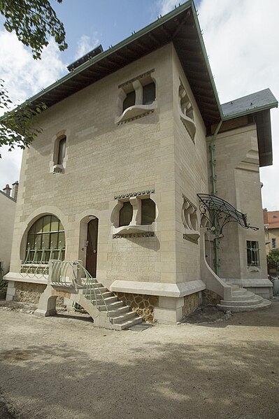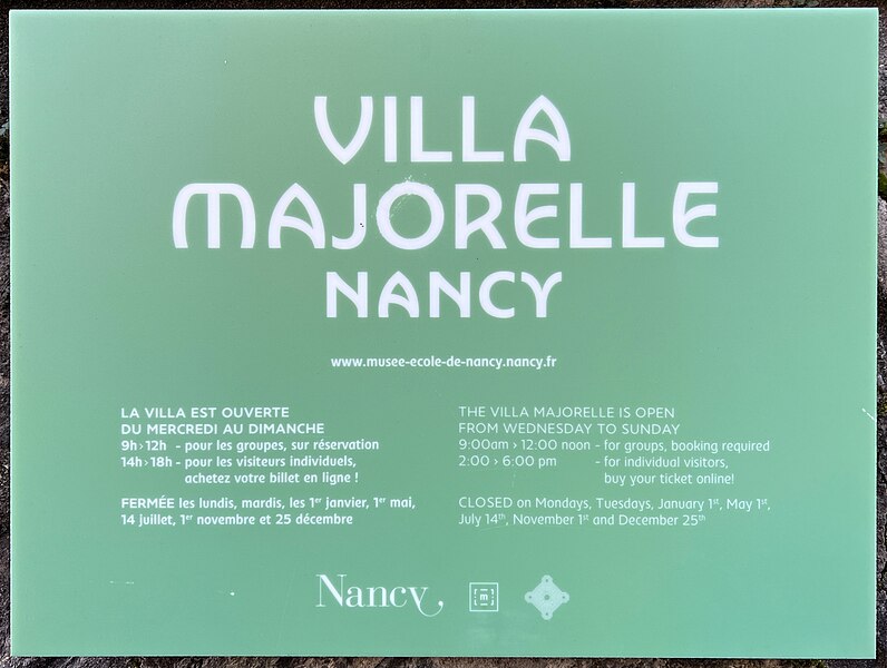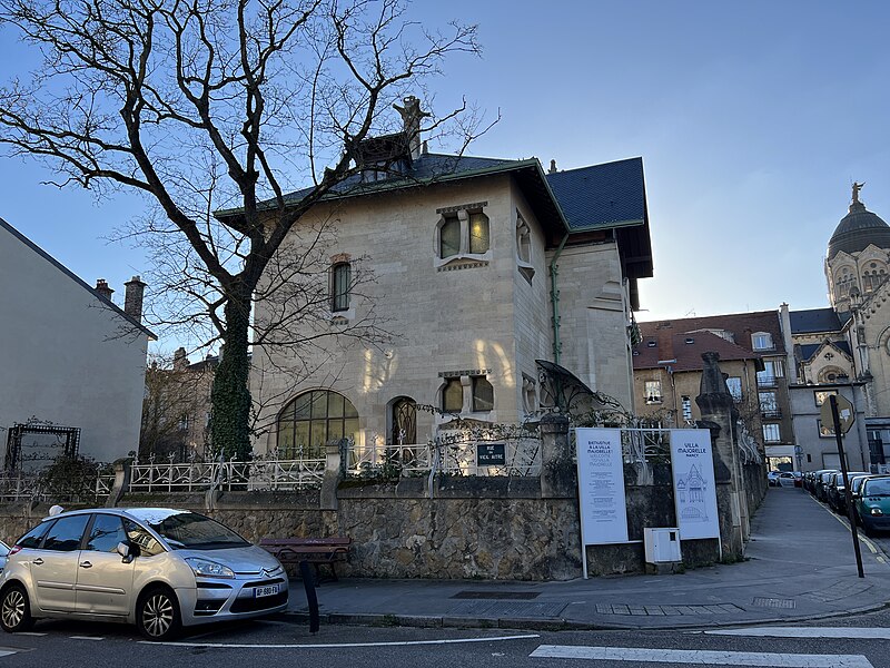 La villa Majorelle, maison de maître à Nancy liée à l’École de Nancy, est un édifice majeur de l’Art nouveau français, anciennement propriété de Louis Majorelle. Commandée en 1898, elle a été conçue par l’architecte parisien Henri Sauvage et réalisée sur le chantier par Lucien Weissenburger, l’entreprise France-Lanord et Bichaton assurant le gros œuvre et le plancher en béton armé selon le procédé Hennebique. Louis Majorelle a participé à l’élaboration du projet et a réalisé une grande part des décors intérieurs, de la ferronnerie, de l’escalier et du mobilier. Les verrières ont été exécutées par Jacques Gruber, la céramique et notamment la cheminée et la balustrade par Alexandre Bigot, et des peintures décoratives sont attribuées à Victor Prouvé, Francis Jourdain et Henri Royer. La construction présente des pierres de Savonnières et d’Euville posées sans sélection chromatique, des joints parfois creux et des exécutions rapides qui ont entraîné, notamment au niveau de la toiture nord, des problèmes d’infiltration. L’édifice répondait à deux fonctions : atelier et lieu d’exposition des productions de Majorelle, installé au dernier étage sous les combles, et résidence privée dont les pièces de réception servaient aussi de vitrine commerciale. L’architecture, répartie sur trois étages, privilégie la lumière, l’asymétrie et les motifs végétaux ; elle comporte une grande baie arquée ouvrant sur l’atelier, un balcon belvédère et des volumes clairement articulés selon la relation forme/fonction. Des poutrelles métalliques profilées soutiennent des éléments de balcon, la ferronnerie décorative ornant portes, grilles et descentes d’eau reprend des motifs végétaux et se prolonge jusque sur la marquise de verre au-dessus de l’entrée. Les façades sont enrichies de décors en grès émaillé soulignant les ouvertures et formant des frises colorées. Pendant la Première Guerre mondiale la villa a été partiellement détruite par un bombardement en 1916 ; une fenêtre fut obturée et un vitrail de la cheminée fut remplacé par un nouveau panneau aux motifs orientalistes. Vers 1930 le parc a été loti et des modifications ont été apportées au mur de clôture et au portail, tandis qu’en 1931 la famille vendait la villa au ministère des Ponts et Chaussées qui l’adapta en bureaux, modifiant certaines ouvertures et ajoutant un oriel et un blockhaus. Le mobilier de la villa a été dispersé : des pièces de la chambre ont été conservées puis rachetées pour le musée de l’École de Nancy, et d’autres éléments ont été acquis ou reconstitués par le musée afin de restituer l’ameublement historique. La ville de Nancy a acquis la villa en 2003 ; le musée de l’École de Nancy a également acquis un album photographique familial (1905‑1911) essentiel pour les travaux de restitution, car de nombreuses archives de construction ont été perdues. Des interventions ponctuelles ont eu lieu en 1999 et en 2013, puis des travaux de grande ampleur ont été menés entre 2016 et 2017 pour la rénovation extérieure et en 2018‑2019 pour la restauration intérieure, avec l’Atelier Grégoire André et plusieurs entreprises spécialisées. Ces travaux ont visé à retrouver l’aspect d’origine autant que possible — restitution des couvertures d’ardoise, réfection des grès émaillés, réinstallation des mitres de cheminée, rénovation des ferronneries, des parquets, des mosaïques, des peintures au pochoir et des vitraux — tout en assurant la pérennité par la mise aux normes des installations techniques. La restauration a conduit à la destruction du bow-window pour restituer la terrasse telle qu’elle existait à la mort de Louis Majorelle et a permis la réouverture au public en février 2020, des travaux complémentaires (salle de bains, penderie et autres espaces) étant encore prévus. L’intérieur conserve de nombreux décors réalisés par les Ateliers Majorelle et présente une part importante du mobilier d’origine ou de copies fidèles, sélectionnées parmi les collections du musée de l’École de Nancy et complétées par des acquisitions et des dons. La chambre à coucher illustre le goût privé de Majorelle, avec des bois clairs, des incrustations de nacre et de cuivre et des motifs inspirés de la nature tels que des ailes de libellule et des ocelles de paon ; les meubles de chambre demeurent des pièces uniques non destinées à la commercialisation. La villa, dont les dimensions sont indiquées comme 17,40 m de profondeur sur 24,50 m de largeur, a été reconnue au titre des monuments historiques, d’abord inscrite en 1975 puis classée en 1996, et a reçu en 2011 le label « Maison des illustres ». Elle demeure un exemple notable d’unité de l’art et d’intégration entre architecture, décoration et mobilier portée par l’École de Nancy.