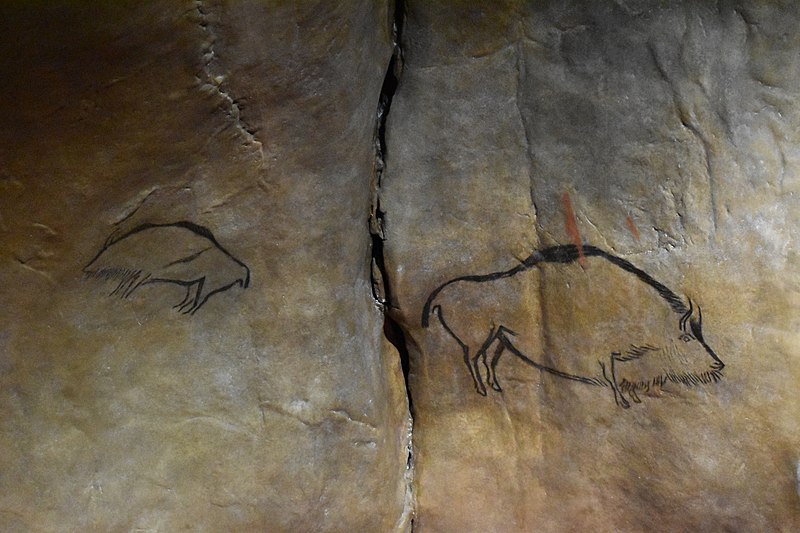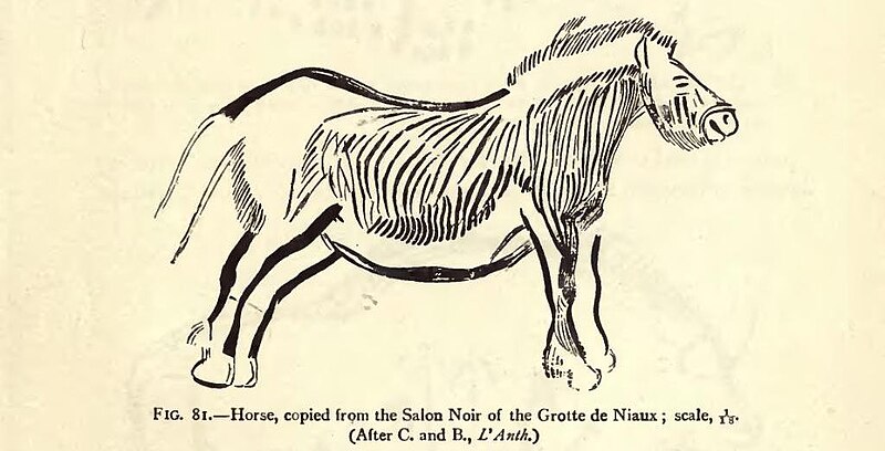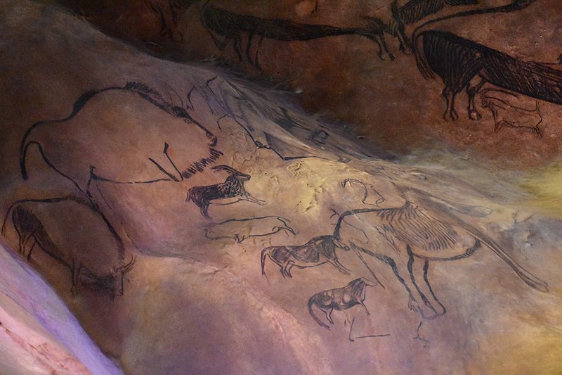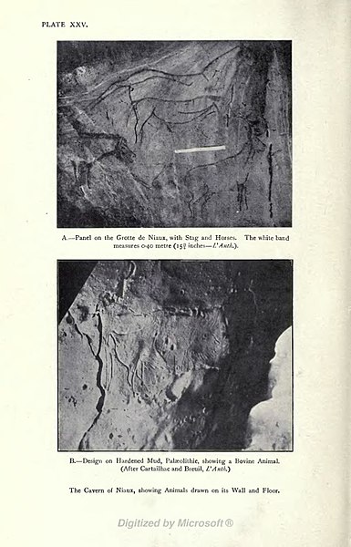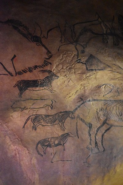 Niaux renferme un art pariétal magdalénien très riche, comprenant la plupart des espèces de la faune préhistorique du massif pyrénéen. Les animaux sont le plus souvent peints en noir, avec du charbon de bois ou du dioxyde de manganèse, et parfois en rouge obtenu à partir d’hématite broyée. La salle principale, dite le « Salon noir », rassemble les représentations les plus spectaculaires ; les peintures du Salon noir contenant du charbon de bois ont été datées par le radiocarbone à environ 13 000 ans. On trouve aussi des signes, points et traits en rouge et noir, isolés ou associés aux figures animales. Le bestiaire comprend principalement 54 bisons, 29 chevaux, 15 bouquetins, ainsi que des cerfs et des poissons ; la morphologie des chevaux évoque le pottok, cheval endémique des Pyrénées encore présent au Pays basque, et la présence d’un tracé suggérant une belette est remarquable, cet animal étant rarement représenté dans l’art magdalénien.