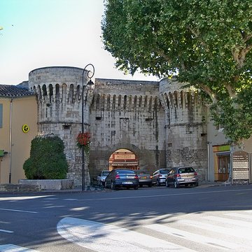 Crédit photo : Vflachaire : La Porte Notre-Dame de Pernes-les-Fontaines au pied de laquelle coule la Nesque
