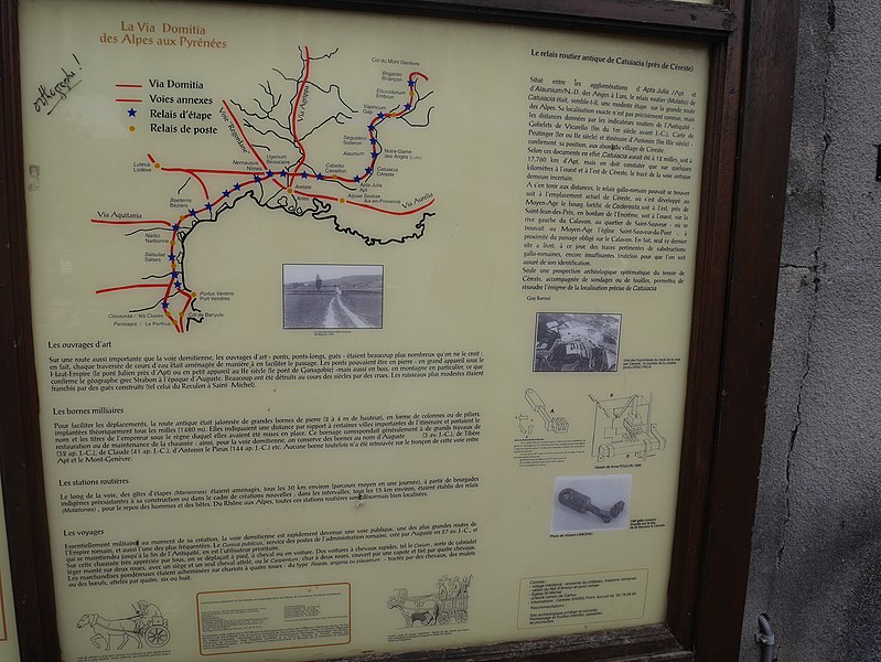 La Via Domitia est une voie romaine qui reliait l'Italie à la péninsule Ibérique en traversant la Gaule narbonnaise ; sa construction commence à partir de 118 av. J.-C. à l'initiative du proconsul Cn. Domitius Ahenobarbus, qui lui a donné son nom. Aujourd'hui, son parcours du Rhône aux Pyrénées conserve des tronçons bien préservés, notamment dans le bassin du Thau, et certains segments sont protégés au titre des monuments historiques sur les communes de Beaucaire, Jonquières-Saint-Vincent, Redessan et Castelnau-le-Lez. La dénomination « Via Domitia » est assurée dans l'Antiquité pour le tronçon entre le Rhône et les Pyrénées ; des variantes toponymiques existent toutefois selon les régions, comme la « via Cottia per Alpem » pour la traversée des Alpes cottiennes entre Gap et Suse. La voie, première grande route romaine en Gaule, a été tracée pour assurer les communications avec Rome, la circulation des troupes et l'intégration du réseau routier reliant l'Italie aux provinces hispaniques. La fondation de la colonie de Narbo Martius (Narbonne) sur son itinéraire illustre son rôle structurant pour l'urbanisme et l'économie locales.