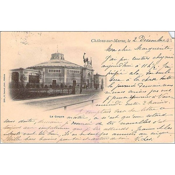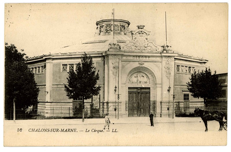 Le cirque municipal de Châlons-en-Champagne accueille le Centre national des arts du cirque (CNAC), établissement national de formation supérieure et de recherche dépendant du ministère de la Culture et de la Communication. Le CNAC a été inauguré en 1986 par Jack Lang. Il est installé dans le cirque municipal, édifié à la fin du XIXe siècle par l'architecte Louis Gillet, et inscrit aux Monuments historiques depuis 1984. Depuis l'été 2015, il dispose de nouveaux espaces de travail sur le site de La Marnaise, situé à 500 mètres du cirque historique, site occupé pendant plusieurs décennies par une coopérative agricole. Le CNAC concentre son cœur de métier sur l'enseignement supérieur du cirque. Pendant de longues années, il a délivré le DMA artiste de cirque (Bac +2) ; depuis 2015, il attribue le DNSP AC (Diplôme national supérieur professionnel d'artiste de cirque) à l'issue d'un cursus de trois années. Depuis 2020, ce cursus est réalisé en intégralité à Châlons-en-Champagne et les étudiants recrutés à partir de cette année peuvent également prétendre à une double licence Arts du spectacle et STAPS délivrée par l'université de Reims Champagne-Ardenne (URCA). Depuis septembre 2012, le CNAC participe au Bac L — option Arts du cirque — dispensé par le lycée Pierre-Bayen de Châlons-en-Champagne. Il développe par ailleurs la formation continue destinée aux professionnels du cirque et du spectacle vivant, ainsi que des activités de ressource et de recherche pédagogique, artistique et technique. La documentation visuelle associe des vues de la décoration de la façade, de la salle lors de la 37e promotion, du logo du Centre, des locaux du site La Marnaise, de la trentième promotion au festival Furies de 2017, de la trente-deuxième promotion au festival Furies de 2019 et d'éléments relatifs à la 38e promotion.