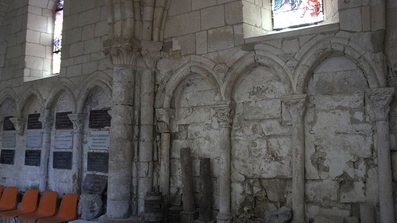 Les fonts baptismaux, en marbre blanc posés sur un socle noir, sont l'œuvre du sculpteur G. Ardy ; ils ont été offerts au XIXe siècle par les maréchaux Saint‑Arnaud, Randon, Canrobert, Bosquet et Le Bœuf de Nausouty. Sur le mur est, derrière le monument aux morts, une plaque commémore les militaires du corps d'armée coloniale tombés en 1914‑15.