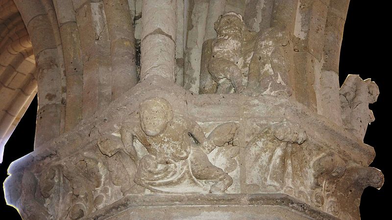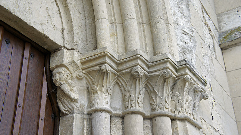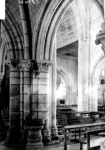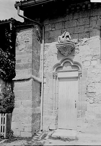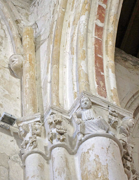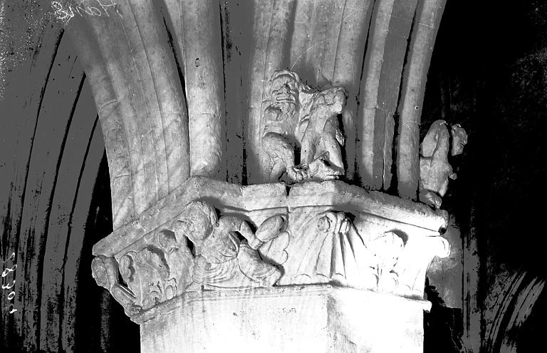 Parmi les documents et images associés figurent des photographies des fonts baptismaux en marbre blanc, du portail orienté au sud et d'un chapiteau, ainsi qu'une photographie de Camille Enlart.