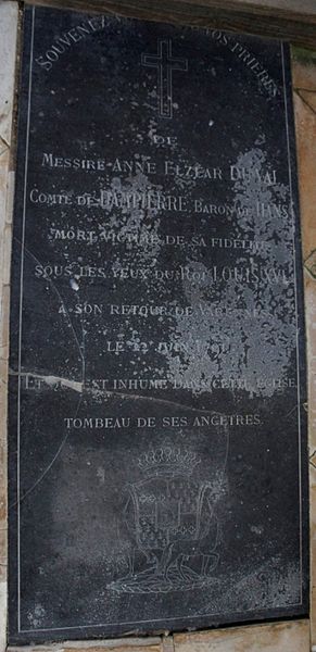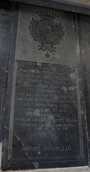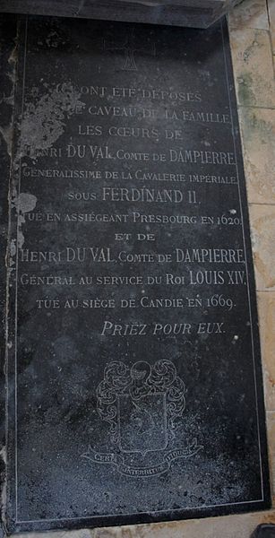 L'église abrite le caveau familial de la famille Duval, comtes de Dampierre, où se trouvent les cœurs de Henri du Val, comte de Dampierre, maréchal, et de son frère Guillaume‑Henri, général. Elle comporte également un vitrail dédié à Charles‑Antoine‑Henri Du Valk de Dampierre, 93e évêque de Clermont, ainsi qu'un vitrail représentant Pierre de Hans, évêque de Châlons.