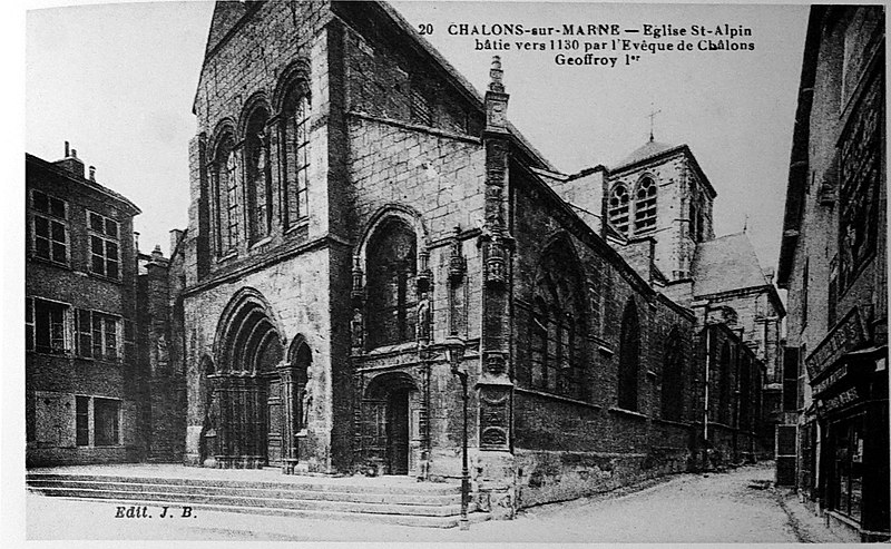 L'église Saint-Alpin de Châlons-en-Champagne, dédiée à Saint Alpin, huitième évêque de Châlons, se dresse sur l'emplacement d'une ancienne chapelle consacrée à Saint-André et fait face à la basilique Notre-Dame et à la cathédrale, entre la place Foch et la place de la République. La construction de l'édifice actuel a commencé entre 1160 et 1170 et s'est poursuivie jusqu'au XVIe siècle ; un premier lieu de culte est attesté dès le IXe siècle. Vers 1200 la nef et les bas-côtés, antérieurement à charpente apparente, furent voûtés en ogive. Du premier édifice roman subsistent la travée centrale de la façade occidentale, la nef, les grandes arcades et la quasi-totalité des bas-côtés nord et sud. Au dernier quart du XVe siècle le chevet fut reconstruit et la tour du clocher élevée, et le transept prend un caractère de Renaissance. Dans la première moitié du XVIe siècle les bas-côtés furent agrandis, avec la création de deux petites chapelles dans le bas-côté nord ; entre 1522 et 1536 des chapelles furent construites dans le bas-côté sud, et la chapelle de la Vierge du bras sud fut achevée en 1554, date gravée à l'extérieur. La façade romane a vu le remaniement de ses pignons latéraux et l'ajout de deux portails latéraux à la même époque, l'un portant la date 1539. En 1791 l'église faillit être détruite, puis fit l'objet, aux XIXe et XXe siècles, de campagnes de restauration de la couverture, de la charpente et des maçonneries. L'édifice est classé au titre des monuments historiques par la liste de 1862, inscription confirmée au Journal officiel du 18 avril 1914.