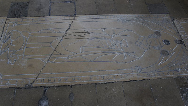 Parmi les éléments mobiliers et funéraires remarquables se trouvent de nombreuses dalles tombales — notamment celles de Jehan Callisson et de sa femme Colette de Rouvroy, de Jeannette La Sainure et de Marguerite Le Sayne, de Raoul de Moulinchat, de Jehan de Dommartin et de son épouse — ainsi qu'un ex-voto daté de 1529 et le tombeau de saint Alpin. Le mobilier comporte également le trône épiscopal, des banquettes et des chaises ; plusieurs de ces pièces sont documentées dans la base Palissy.