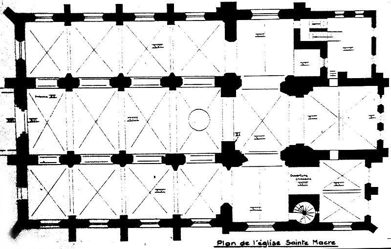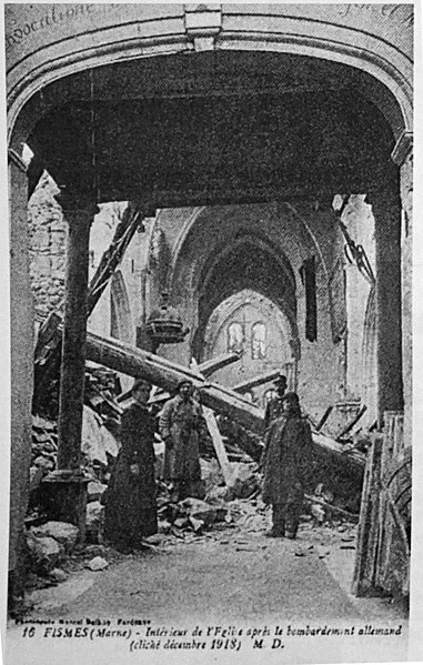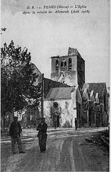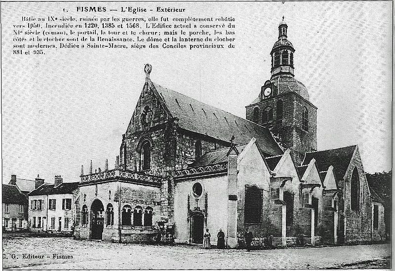 L'église Sainte‑Macre de Fismes, située dans la Marne, est un édifice à vocation catholique dédié à Macre de Fismes et classé aux monuments historiques. D'architecture romane, sa construction s'étend du XIIe au XVIIe siècle. Le bâtiment a été remanié aux XVe et XVIe siècles, notamment pour les bas‑côtés, puis la sacristie a été ajoutée lors de la venue d'Henri IV. Au XVIIIe siècle, la tour a été reconstruite et couronnée d'un clocheton. Classée le 18 novembre 1919, l'église a été fortement endommagée pendant la Première Guerre mondiale, rebâtie entre 1921 et 1928, puis de nouveau touchée lors du conflit de 1939–1945. Un orgue du XVIIe siècle, peut‑être originaire de l'abbaye d'Igny, fut totalement détruit durant la Première Guerre mondiale ; une tribune en béton fut édifiée pour recevoir un orgue Merklin en 1932, instrument autour duquel se déroulent régulièrement les manifestations "Orgues de Fismes en scène". Des vitraux contemporains, réalisés par le maître verrier Bruno Pigeon de Reims, ont été installés au XXIe siècle grâce à une donation de Jean‑Claude Collot. Parmi les éléments extérieurs et intérieurs notables figurent les modillons, le chevet, la façade sud et la présence de l'église sur la place, ainsi que le chapiteau de la croisée du transept, la nef, l'orgue avec sa tribune et un chemin de croix signé Gabriel Girodon.