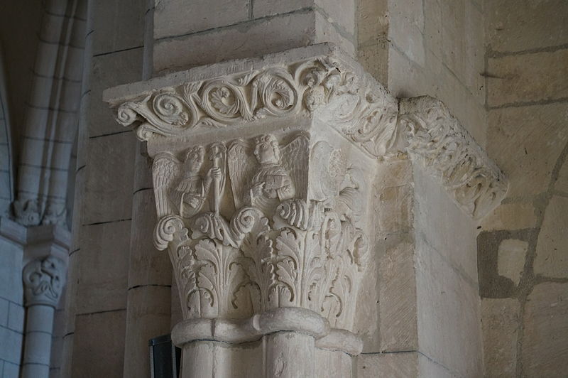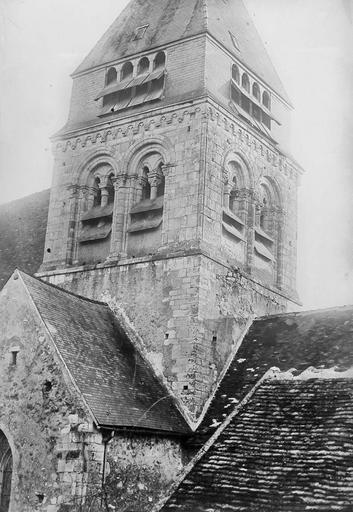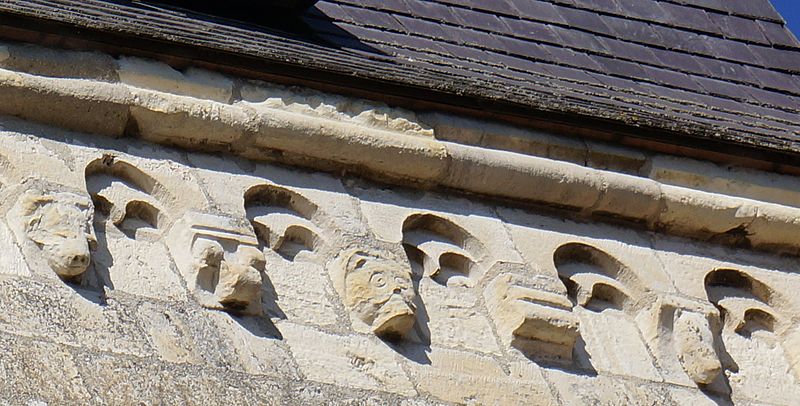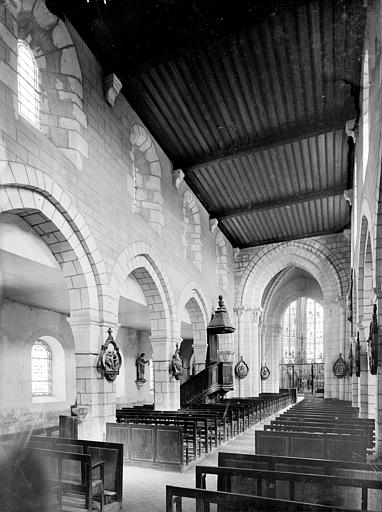 L'édifice se compose de deux ensembles distincts : une nef et un transept romans (vers 1150-1160) et un chœur avec doublement du transept de style gothique (vers 1250). Les chapiteaux des piliers de la nef, proches du transept, sont sculptés : à droite figurent les quatre fleuves du Paradis terrestre, à gauche des scènes de chasse, des têtes grimaçantes et des feuilles d'acanthe. Des clefs de voûte sculptées représentent notamment un prêtre en prière, et une série de têtes humaines et animales orne le linteau sous le toit du clocher.