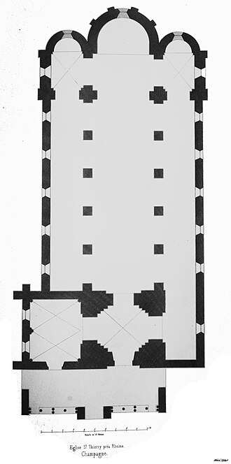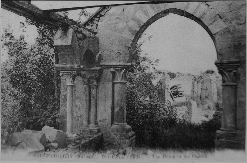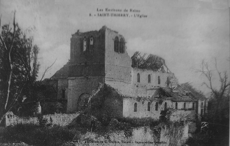 L'église de Saint-Thierry, située dans la Marne et relevant du diocèse de Reims, remonte au XIIe siècle. Le portail est précédé d'un porche dit « champenois » dont on observe l'intérieur et la galerie ; l'édifice présente une nef, une châsse et une abside. Elle a été endommagée lors de la Première Guerre mondiale : la tribune d'orgues du XVe siècle, qui était classée, a brûlé. L'église est classée au titre des monuments historiques par arrêté du 20 juillet 1921.