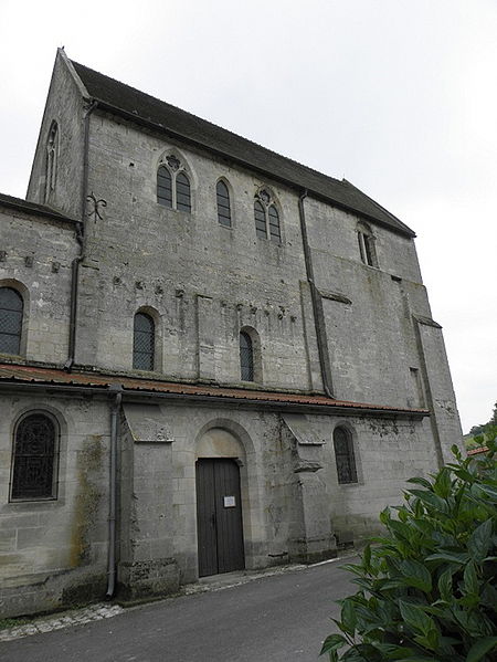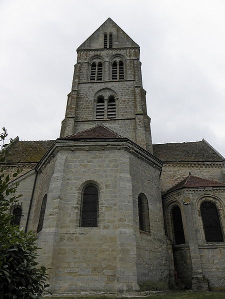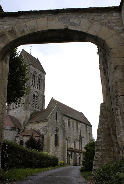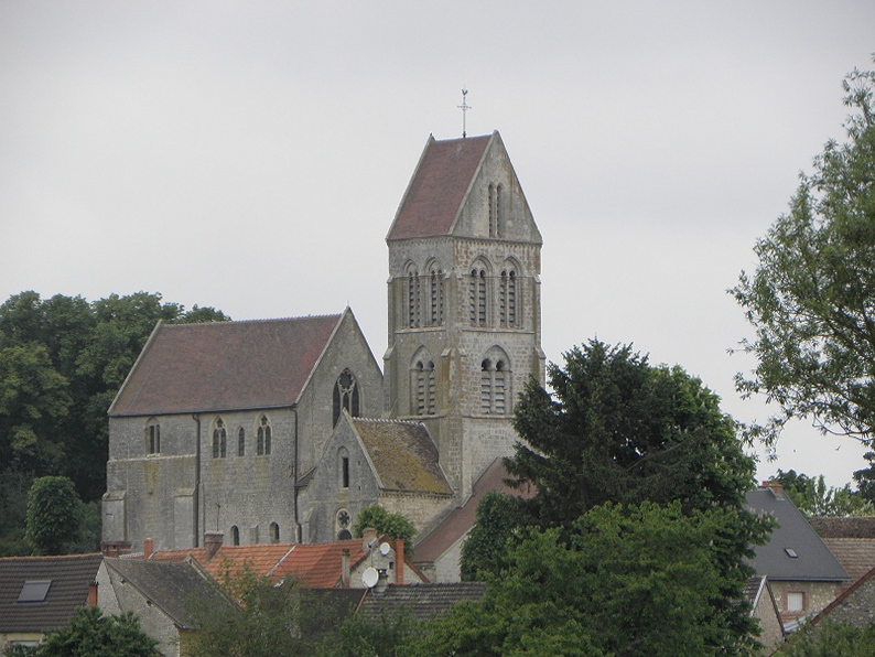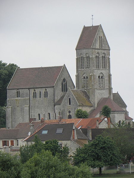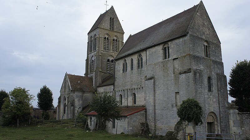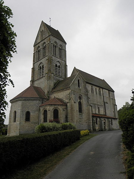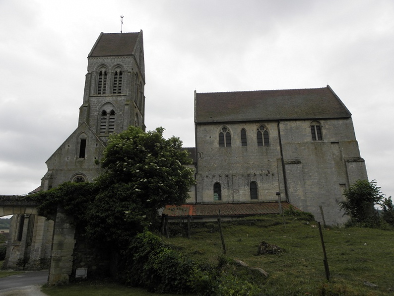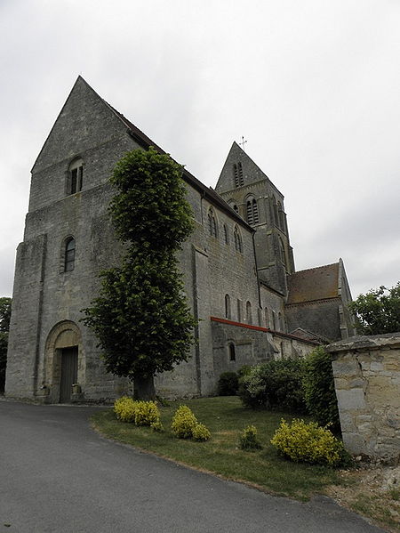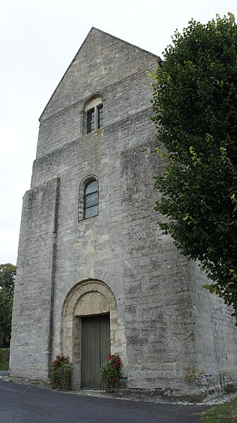 L'église Saint-Julien est une église catholique située dans la commune de Courville, dans le département de la Marne. Elle a été bâtie entre le XIe et le XIIIe siècle. Sa nef comporte deux étages : le niveau inférieur, de style roman, remonte au XIe siècle, tandis que le niveau supérieur, de style gothique, date du XIIIe siècle. Ce deuxième étage constituait la chapelle des archevêques de Reims et était relié au château par une passerelle ; initialement situé au‑dessus du narthex, il fut agrandi au XVe siècle sur les deux premières travées de la nef. L'église a été gravement endommagée pendant la Première Guerre mondiale, en particulier lors de l'explosion du château provoquée en 1918 par les troupes allemandes. Elle a été classée au titre des monuments historiques en 1920. L'édifice est surmonté d'une haute tour romane. La partie la plus ancienne est la nef, étayée par des demi‑colonnes appareillées et composée de deux niveaux de grandes arcades surmontées de fenêtres hautes. Elle est actuellement couverte par une voûte de 1895 qui a remplacé un plafond en bois. À l'intérieur se trouvent des chapiteaux romans d'une grande variété : motifs végétaux comme palmes et palmettes, entrelacs, fleurs ouvertes, cercles entrelacés et torsades en colliers, ainsi que des scènes figurées telles que Jonas et la baleine ; certains chapiteaux présentent deux têtes animales, un personnage à côté d'une palme, un poisson, un sphinx, et l'un paraît inachevé. Un retable de style gothique flamboyant orne l'intérieur. Les vitraux, plus modernes, ont été réalisés par l'atelier Simon‑Marq et Auguste Labouret ; en 1895 la famille de Bracquemont fit don de deux verrières représentant saint Adrien et saint Stanislas de Kostka, et en raison des dégradations subies pendant la guerre seule la verrière de saint Stanislas, restaurée en 1922, subsiste aujourd'hui. Le mobilier comprend un retable classé du XVe siècle, un calvaire polychrome classé entouré de la Vierge et de saint Jean daté du XVIe siècle, un tableau sur bois représentant la crucifixion, classé et daté de la fin du XVIe siècle, ainsi que des fonts baptismaux.