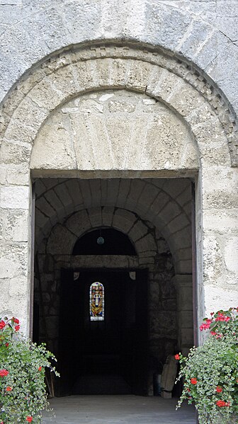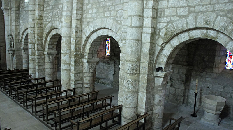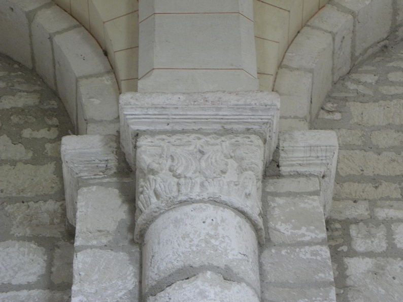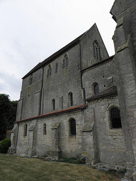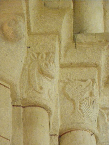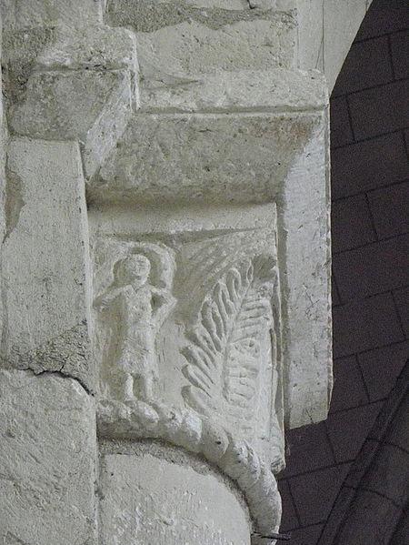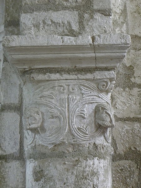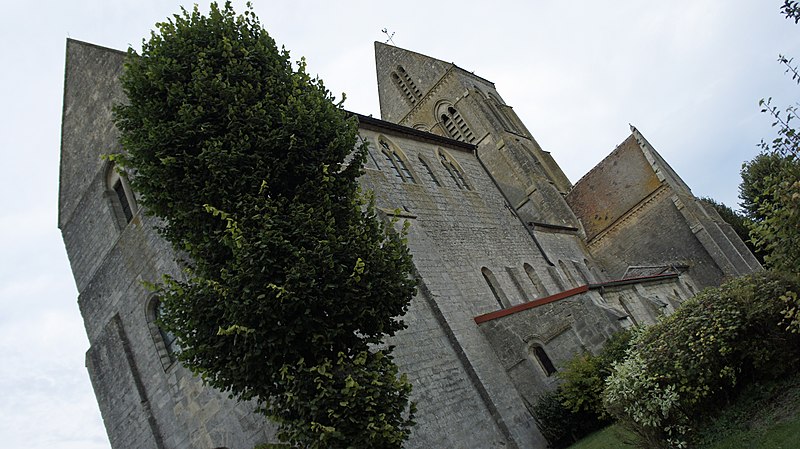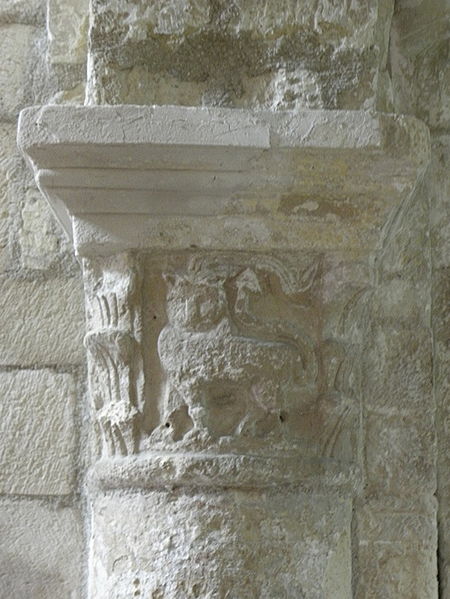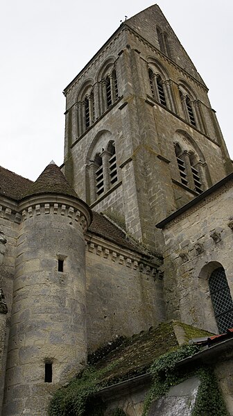 L'église Saint-Julien est une église catholique située dans la commune de Courville, dans le département de la Marne. Elle a été bâtie entre le XIe et le XIIIe siècle. Sa nef comporte deux étages : le niveau inférieur, de style roman, remonte au XIe siècle, tandis que le niveau supérieur, de style gothique, date du XIIIe siècle. Ce deuxième étage constituait la chapelle des archevêques de Reims et était relié au château par une passerelle ; initialement situé au‑dessus du narthex, il fut agrandi au XVe siècle sur les deux premières travées de la nef. L'église a été gravement endommagée pendant la Première Guerre mondiale, en particulier lors de l'explosion du château provoquée en 1918 par les troupes allemandes. Elle a été classée au titre des monuments historiques en 1920. L'édifice est surmonté d'une haute tour romane. La partie la plus ancienne est la nef, étayée par des demi‑colonnes appareillées et composée de deux niveaux de grandes arcades surmontées de fenêtres hautes. Elle est actuellement couverte par une voûte de 1895 qui a remplacé un plafond en bois. À l'intérieur se trouvent des chapiteaux romans d'une grande variété : motifs végétaux comme palmes et palmettes, entrelacs, fleurs ouvertes, cercles entrelacés et torsades en colliers, ainsi que des scènes figurées telles que Jonas et la baleine ; certains chapiteaux présentent deux têtes animales, un personnage à côté d'une palme, un poisson, un sphinx, et l'un paraît inachevé. Un retable de style gothique flamboyant orne l'intérieur. Les vitraux, plus modernes, ont été réalisés par l'atelier Simon‑Marq et Auguste Labouret ; en 1895 la famille de Bracquemont fit don de deux verrières représentant saint Adrien et saint Stanislas de Kostka, et en raison des dégradations subies pendant la guerre seule la verrière de saint Stanislas, restaurée en 1922, subsiste aujourd'hui. Le mobilier comprend un retable classé du XVe siècle, un calvaire polychrome classé entouré de la Vierge et de saint Jean daté du XVIe siècle, un tableau sur bois représentant la crucifixion, classé et daté de la fin du XVIe siècle, ainsi que des fonts baptismaux.