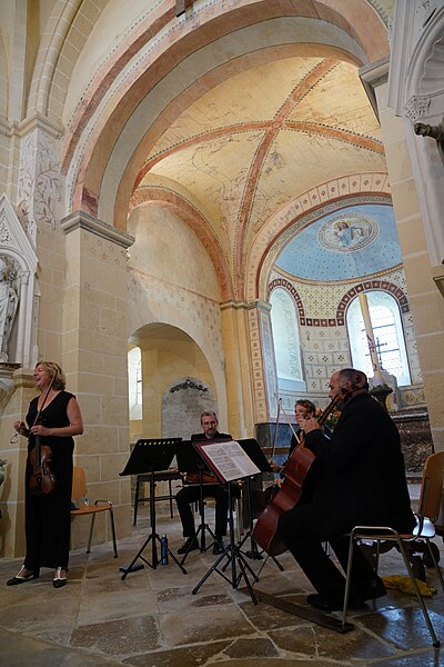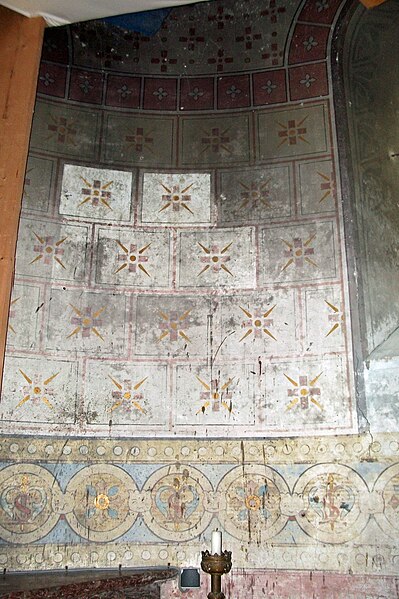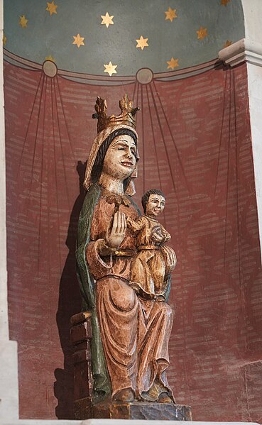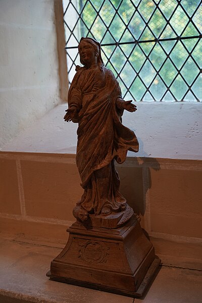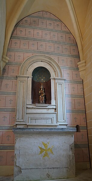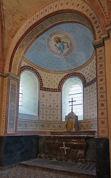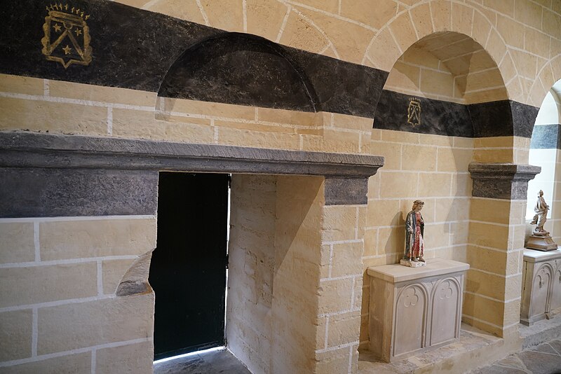 Le clocher présente des baies géminées et la flèche Renaissance qui le couronne. L'intérieur de l'abside est décoré dans un style néo-gothique, tandis que sa façade extérieure est ornée de modillons anthropomorphes. Les piliers de la nef portent des croix de consécration et l'arc triomphal, qui sépare la nef du chœur, est orné de motifs floraux caractéristiques du roman primitif. L'édifice abrite plusieurs œuvres : une statue en pierre de sainte Anne et de la Vierge située dans le bas-côté sud (XVIIe siècle), un tableau de la Cène (XVIe siècle), une statue en bois de saint Éloi (XVIIIe siècle) classée au titre des objets monuments historiques depuis le 3 novembre 1966, ainsi que des sculptures sur l'abside et des fresques.