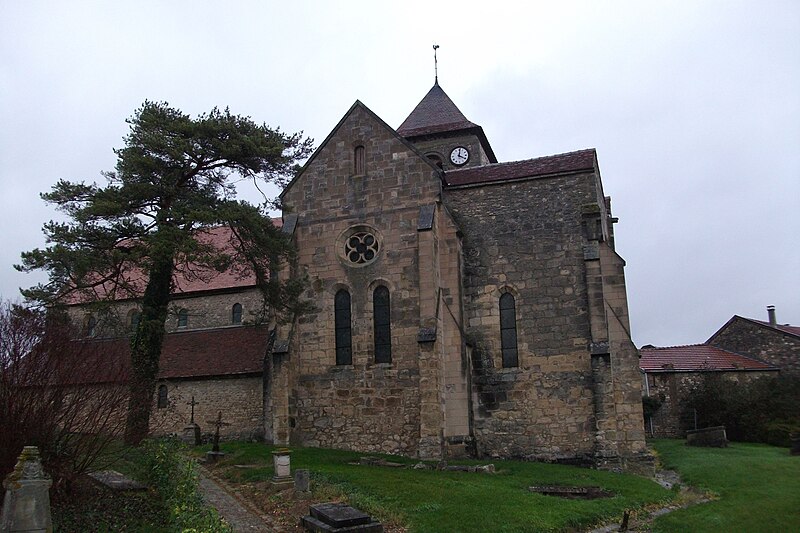 L'église de Crugny, située dans la Marne en Champagne-Ardenne, est un édifice catholique dont les parties les plus anciennes comprennent des arcades à supports carrés, des intrados d'arcs à un seul rouleau et des fenêtres disposées au-dessus des piliers. Son chevet plat associe une baie triple, symbolisant la Trinité, et un oculus unique, signe d'unité. L'emploi de feuilles d'acanthe à la croisée du transept indique une phase d'élaboration datée de 1160, tandis que les chapiteaux du transept nord présentent des caractéristiques du XIIIe siècle. Un incendie en 1676 a entraîné la reconstruction, dans un style gothique, des parties méridionales, notamment le bras et la chapelle sud. L'édifice, qui se dresse sur une butte et est pourvu d'un clocher côté nord, a été classé au titre des monuments historiques en 1921. L'intérieur montre des chapiteaux remarquables, une nef aménagée vers le portail et des vitraux qui contribuent au caractère du lieu. Des études et notices, notamment celles d'Hubert Collin et de Jean-Marie Pérouse de Montclos, documentent cet édifice.