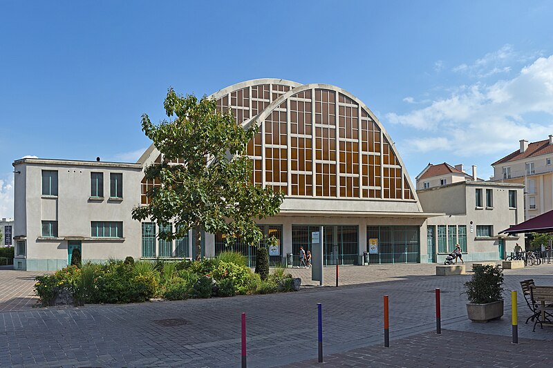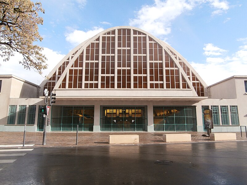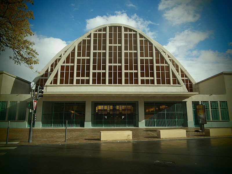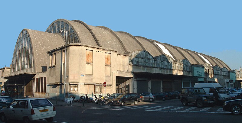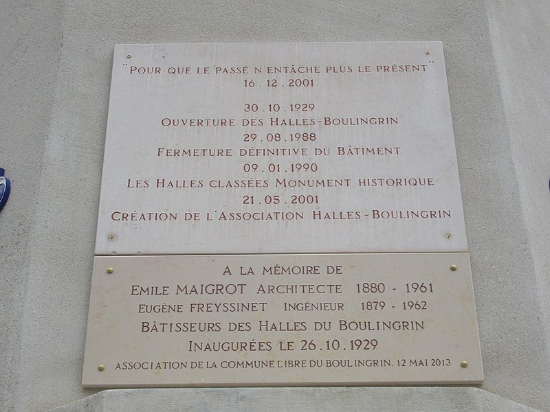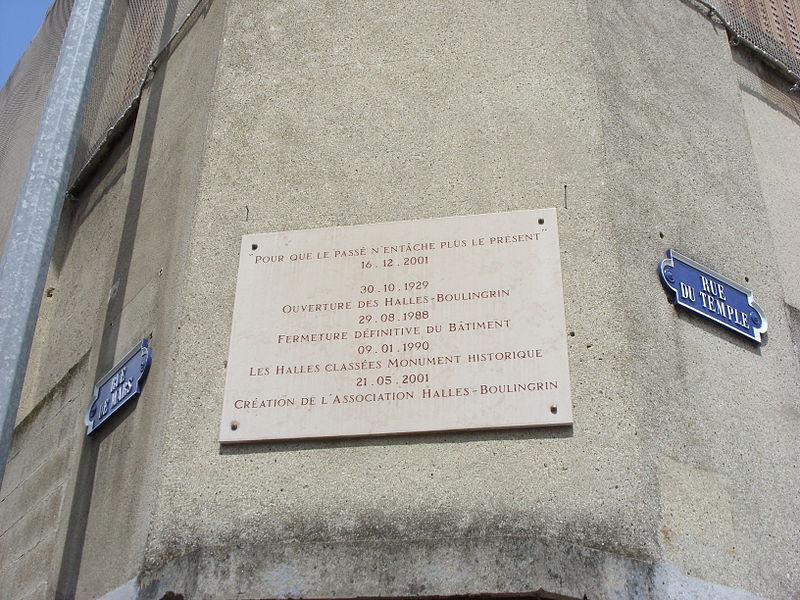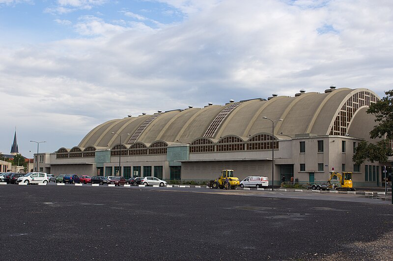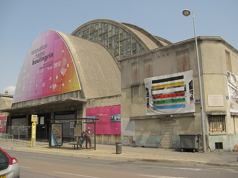 Les Halles centrales, dites halles du Boulingrin, abritent un marché couvert en limite nord du centre-ville de Reims. Elles occupent un îlot délimité par les rues du Boulingrin, du Temple, de Mars et Olivier-Métra, près de la porte Mars. Le bâtiment repose sur une base rectangulaire de 49 m sur 109 m ; ses murs de béton, d'une épaisseur de 7 cm, se rejoignent en leur centre pour former une parabole qui surplombe les étals à 19,85 mètres de hauteur et offre une portée de 38,26 mètres soutenue par un vaste ensemble de murs porteurs extérieurs. Ces murs sont fondés sur 274 pieux de béton. L'accès se fait par deux larges portails situés à chaque extrémité longitudinale et par quatre portes latérales nommées d'après les rivières locales : la Suippe, la Marne, la Vesle et l'Aisne ; ces portes sont traitées en ciment poli vert d'eau, le Lap. Les portes sont reliées par paires par des baies vitrées qui coupent le vaisseau en trois parties, et toutes les baies sont habillées de panneaux de verre diffusant une lumière jaune. L'intérieur comporte une promenade haute desservie par un escalier central sur pilotis ; le tiers est de la halle est surélevé d'un mètre pour le marché de gros, l'ouest comprend des cellules en dur pour des commerçants permanents et le centre reste ouvert. Un an après l'ouverture, des fuites sont détectées ; en 1942 des morceaux de béton se détachent de la voûte et une expertise Freyssinet, en 1957, conclut à un vieillissement prématuré et à une condensation excessive sur l'intrados liée à un manque de ventilation, conduisant à la pose d'un grillage de protection en 1959.