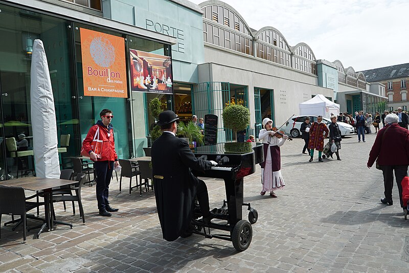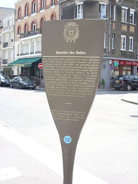 Les Halles ont été conçues à la suite d'un concours d'architecture ouvert en 1922 dans le cadre du plan de reconstruction de Georges B. Ford pour remplacer l'ancien marché détruit pendant la Première Guerre mondiale, alors situé place du Forum. Le projet de l'architecte Émile Maigrot a été retenu par la municipalité le 4 mai 1923 ; la construction, réalisée par l'entreprise Claude Limousin dont le directeur technique était Eugène Freyssinet, s'est déroulée de 1927 à 1929 et a utilisé le procédé de « coffrage-décoffrage sur cintre glissant » adapté à la morphologie du bâtiment. L'ouverture a eu lieu le 30 octobre 1929. L'édifice, qui a résisté à la Seconde Guerre mondiale, a été désaffecté en 1988 pour raisons de sécurité et la municipalité envisageait sa démolition ; une importante mobilisation populaire et l'intervention du ministre de la Culture Jack Lang ont conduit à son classement au titre des Monuments historiques par décret du 9 janvier 1990.
