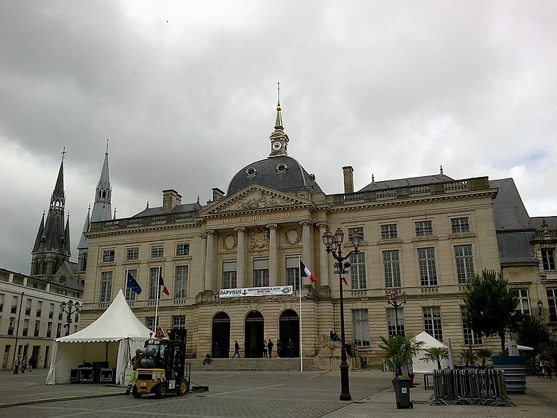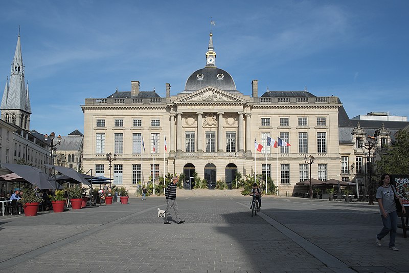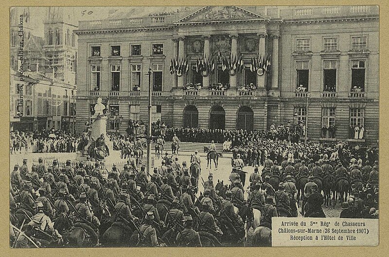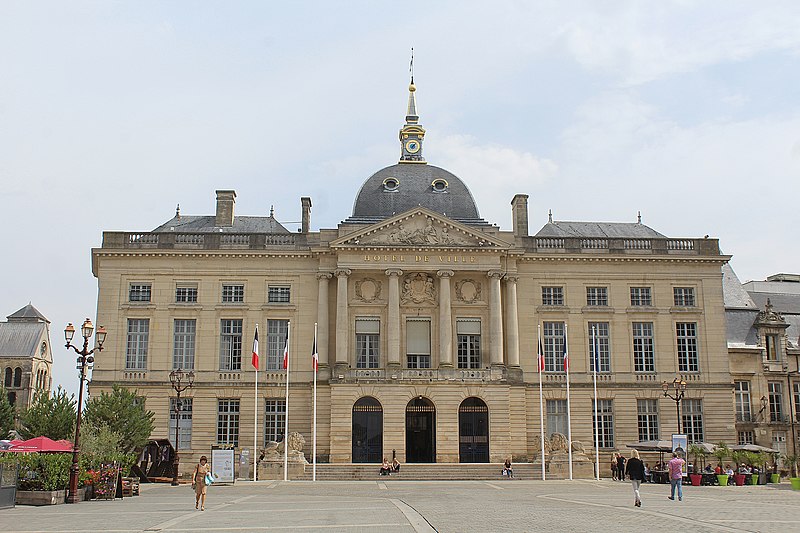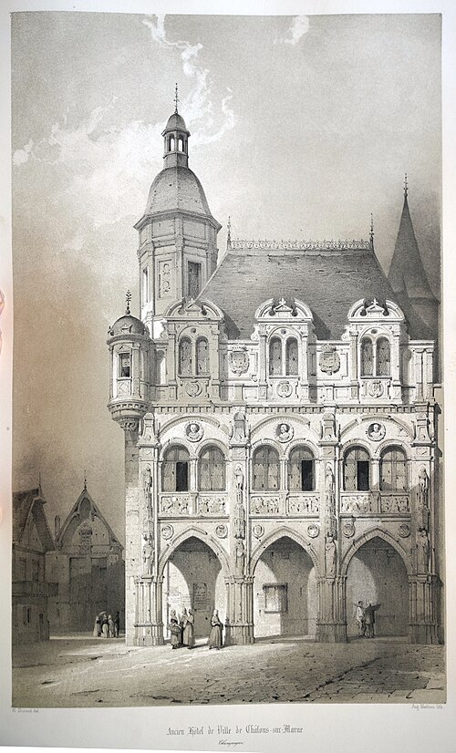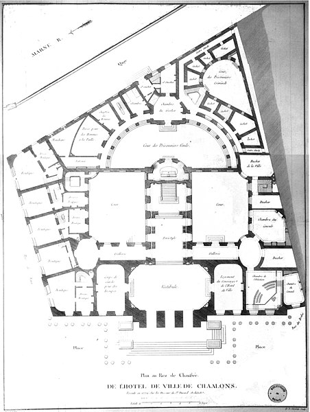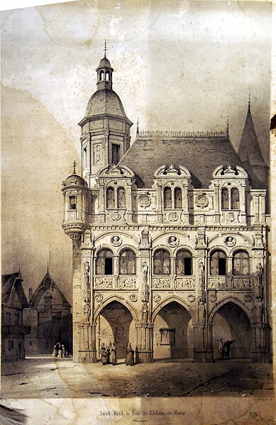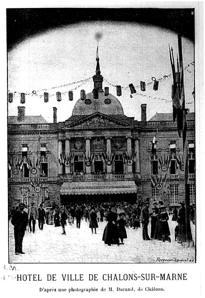 L'hôtel de ville de Châlons-en-Champagne (Marne) a été édifié entre 1772 et 1776 d'après les plans de l'architecte Nicolas Durand, sur ordre d'un arrêt du conseil du Roi du 30 novembre 1771, à l'initiative de l'intendant Rouillé d'Orfeuil. Remplaçant un édifice de style Renaissance construit entre 1533 et 1612, il accueille les institutions municipales depuis 1776 et abrite actuellement les services administratifs de la ville. Outre les bureaux et la salle des délibérations du conseil municipal, le bâtiment comprenait la chambre des consuls et une prison dont l'accès se faisait par l'actuelle place Godart ; le corps arrière contenant la prison fut détruit en 1858 et remplacé par un édifice qui a successivement servi de tribunal, d'école de garçons et de salle de musée. Le conseil de ville, créé en 1417, se réunissait auparavant à l'hôpital du Saint-Esprit. L'hôpital de la porte de Vaux, dédié à sainte Marthe et fondé par Memmie, fut administré successivement par des frères, puis par des sœurs de Saint-Lazare, par des Filles de Dieu et enfin par des béguines ; une bulle d'Innocent IV de 1224 autorisa la construction d'une chapelle avec cimetière. Partiellement en ruine, ce site accueillit dès 1533 un premier hôtel de ville qui conserva la chapelle et une salle pour les malades ; pendant une épidémie, les lits furent répartis entre les hôpitaux Saint-Maaur et Saint-Léger par délibération municipale du 21 août 1581, et le service de la chapelle fut transféré au grand-hôtel-Dieu le 12 août 1651, tout en maintenant une salle pour l'accueil des indigents de passage. Le bâtiment antérieur, reconstruit en 1533 dans un style gothique, fut à nouveau reconstruit en 1772 pour permettre l'édification de l'hôtel de ville actuel, dont les quatre lions de l'escalier, cités par Hugo, sont l'œuvre d'Antoine Lépine. Au premier étage de l'escalier d'honneur se trouvent des grisailles de Nicolas Perseval représentant des célébrités locales — Claude d'Espence, David Blondel, Nicolas Clémangis, le chevalier Delatouche, Eustache de Conflans, Martin Akakia, "Nicolas de Chatillon" pour Claude Chastillon, Perrot d'Ablancourt, Pierre Bayen et Pierre Quentin Chedel — et, en vis-à-vis, le salon d'honneur est lui aussi décoré de grisailles. La salle du conseil présente un tableau d'Édouard Detaille représentant le tsar Nicolas II au camp de Châlons. Le bâtiment est partagé avec la police municipale et le musée des Beaux-arts. L'hôtel de ville a été inscrit au titre des monuments historiques en 1932 pour son grand salon et classé en 1941 pour ses façades, toitures, vestibule, escalier et salon du premier étage. Enfin, l'hôtel de ville occupe le côté est de la place, conçue également par Durand : pour former cette place carrée, plusieurs constructions, dont une église, furent rasées, et les façades et toitures de l'ensemble sont également protégées en tant que monument historique ; la place est dédiée au maréchal Ferdinand Foch.