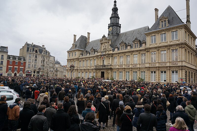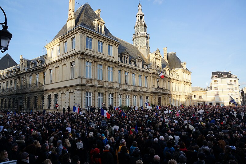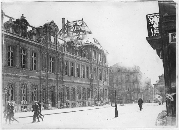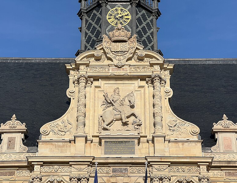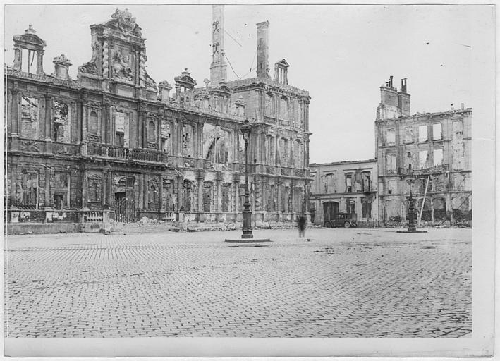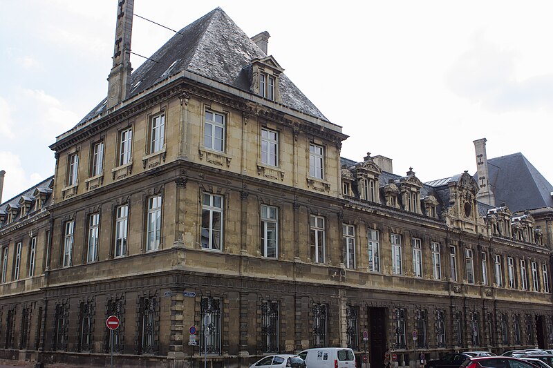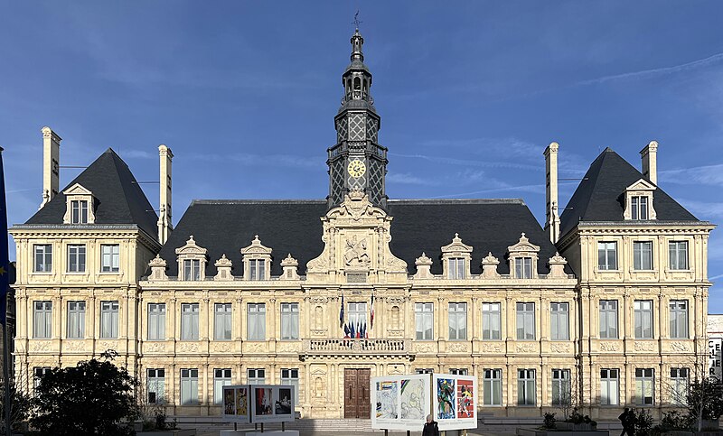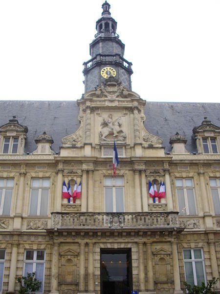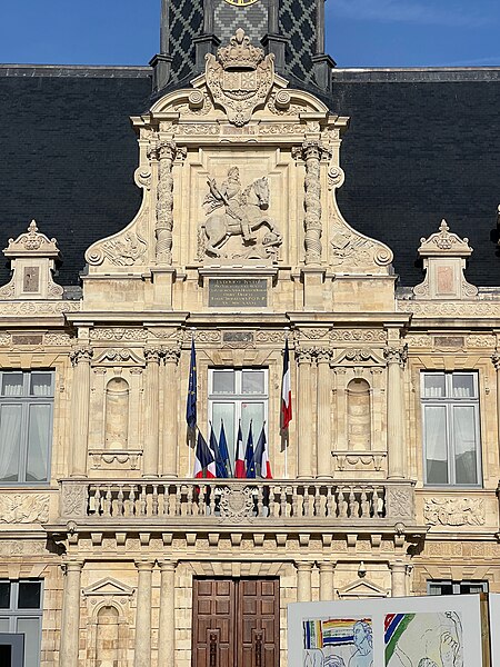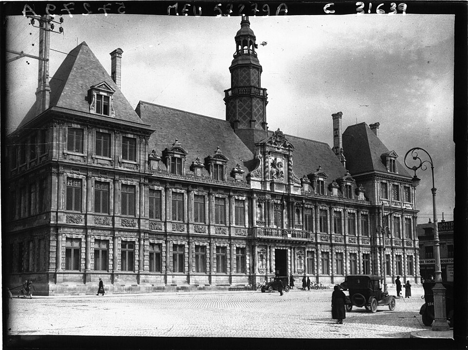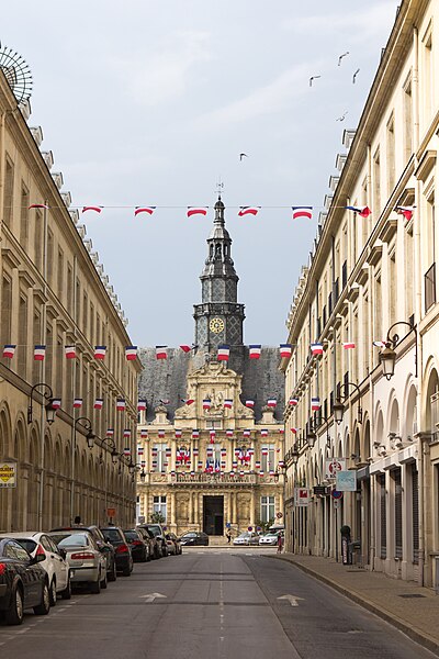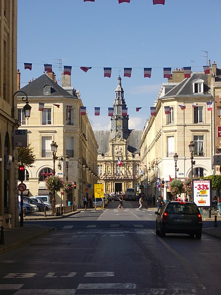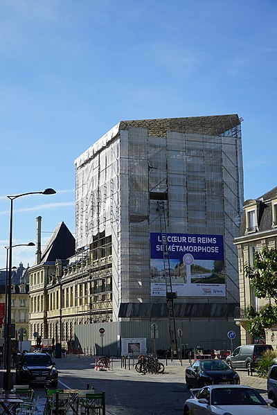 L'hôtel de ville de Reims abrite les institutions municipales depuis 1499. Lors de travaux, on a mis au jour à trois mètres de profondeur des vestiges d'une domus romaine, pilastres et une voie menant vers la Banque de France. Le Conseil de ville acheta en 1499 un immeuble sur la place du Marché-aux-Chevaux, mais il s'avéra rapidement trop exigu ; le remboursement d'une dette de 22 000 livres par le duc de Guise permit de lancer le projet d'un nouvel édifice. La première pierre fut posée le 18 juin 1627 par Nicolas Lespagnol et la construction fut conduite par l'architecte municipal Jean Bonhomme. La première aile, donnant sur la rue des Consuls (actuelle rue du Général-Sarrail), fut livrée rapidement et le Conseil y siégea dès 1628. L'édifice est élevé en pierre de Lagery et son campanile comportait une cloche fondue par Pierre Roussel ; une première statue du roi, peut-être en bois, fut détruite pendant la Révolution. La façade fut inaugurée en 1636 par Claude Lespagnol ; elle fut complétée par une nouvelle statue commandée à Aimé Milhomme en 1818 et par la construction d'une tour d'angle en 1823. Entre 1820 et 1823, les bâtiments situés sur l'actuelle cour furent acquis et consolidés sous la direction des architectes Troyon et Serrurier, qui épaissirent les murs. En 1863, la construction reprit pour les deux dernières ailes sous la conduite de Narcisse Brunette et de son frère Nicolas, et l'ensemble fut inauguré en 1880. L'hôtel de ville fut incendié le 3 mars 1917 pendant la Première Guerre mondiale ; la reconstruction débuta en 1924 sous la direction de Bernard Humbold, avec les architectes Roger-Henri Expert et Paul Bouchette, et les sculptures furent confiées au sculpteur rémois Paul Berton. L'édifice reconstruit fut inauguré le 10 juin 1928 par le président de la République Gaston Doumergue, à l'occasion de la visite de l'Exposition Internationale des meilleures marques à Reims. Avant l'incendie, le bâtiment accueillait successivement un musée depuis l'an III, des archives, la Caisse d'épargne, une bibliothèque installée en 1764 avec des ouvrages confisqués au Collège des Jésuites, ainsi que des services judiciaires, la police ou la Chambre de commerce selon les époques ; il est actuellement consacré aux services municipaux, complétés par des annexes et des services décentralisés (voirie, espaces verts, police municipale).