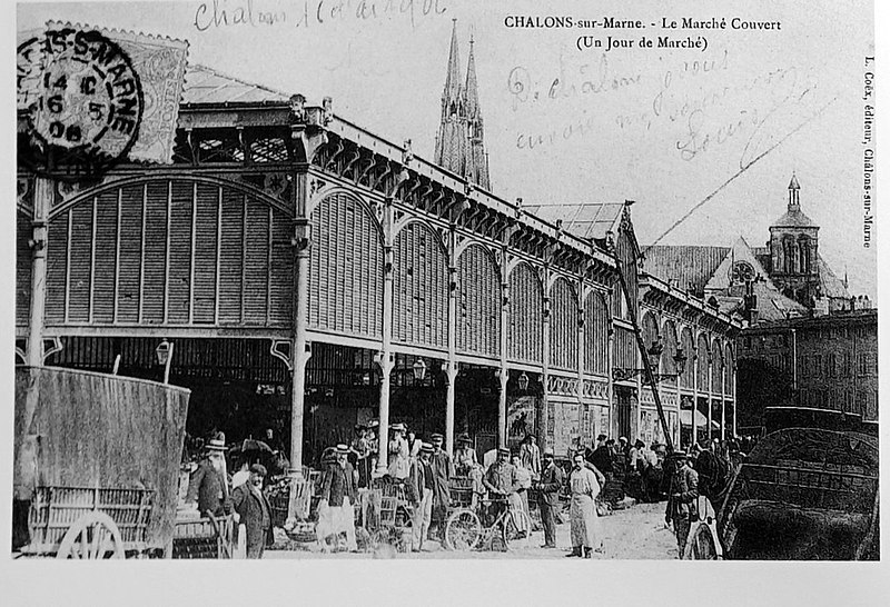 Le marché couvert de Châlons, situé à Châlons-en-Champagne en Champagne-Ardenne, a été édifié en 1882 sur la portion du Mau comprise entre le pont Putte-Savate et la place Godart. Conçu par l'architecte départemental Louis Gillet, il a été réalisé en fonte et en verre, suivant l'exemple des halles parisiennes. La construction s'est accompagnée de la création des rues Gambetta et Thiers, qui bordent l'édifice. Inscrit au titre des monuments historiques en 1988, le bâtiment a été entièrement rénové en 2000 afin de répondre aux normes d'hygiène en vigueur. Des photographies anciennes, notamment une carte postale du début du XXe siècle, témoignent de son aspect historique.