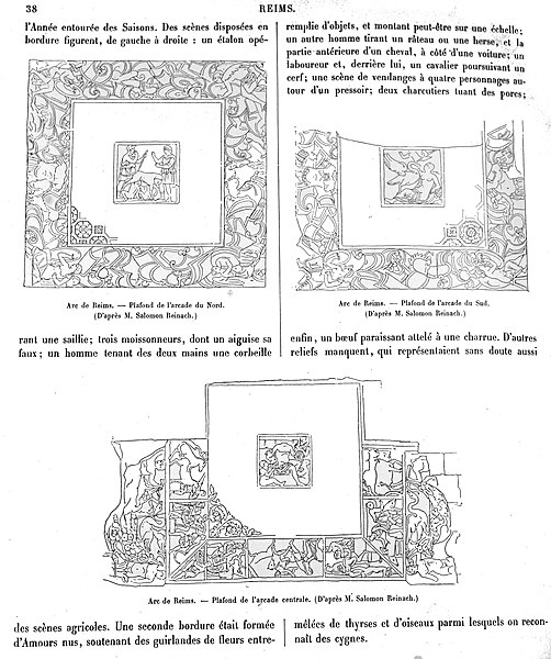 Parmi les autres arcs gallo-romains de Reims, la porte Bazée, ou porte Collatice, était l'arc méridional, vraisemblablement semblable à la Porte de Mars et formant avec elle le cardo nord-sud ; intégrée à la ceinture fortifiée du Bas-Empire, elle perdit de son importance lors de l'élargissement de l'enceinte aux XIIIe et XIVe siècles, fut en partie démontée pour des adductions en 1753, et ses vestiges sont encore repérables rue de l'Université, un ensemble classé au titre des monuments historiques depuis le 30 janvier 1981. La porte de Vénus, ou porte de Soissons, était l'arc occidental situé place Myron-Herrick, en face de l'Opéra ; ses fondations monumentales ont été mises au jour lors des fouilles de 2007-2008 avant la construction du tramway, ses dimensions se rapprochent de celles de la Porte de Mars et sa construction est attribuée aux IIe ou IIIe siècles, et l'on a dégagé sous cet arc un égout voûté pratiquement intact. L'existence romaine de la porte de Cérès n'est pas encore attestée de façon certaine, mais la découverte de la porte de Vénus rend plausible l'hypothèse d'un quatrième arc sous l'actuelle esplanade Cérès.