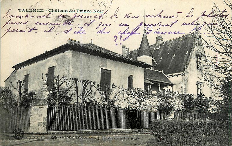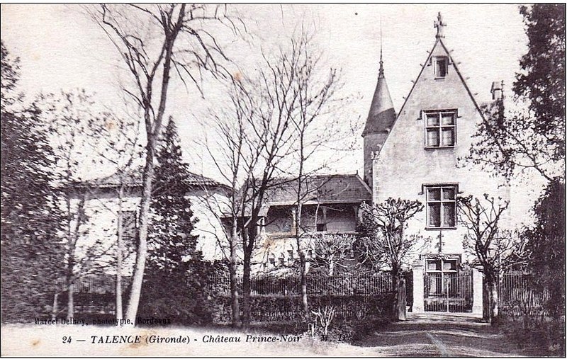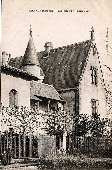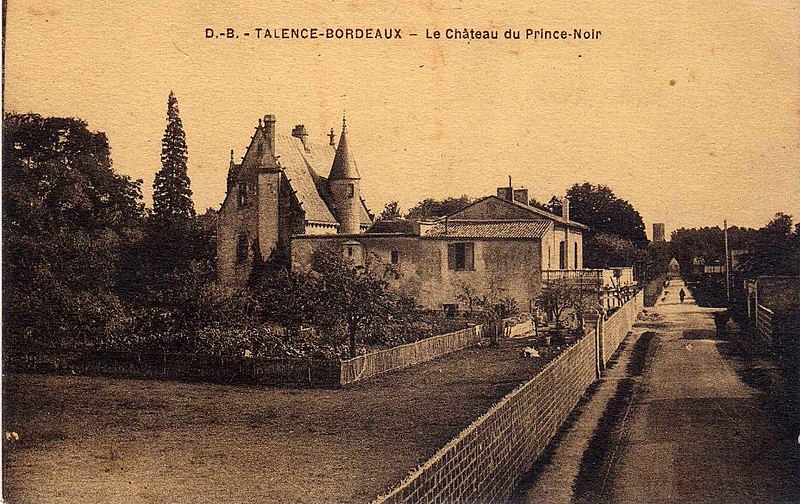 Le château dit du Prince Noir, ou château de Brama, se trouve à Talence (Gironde). Selon trois historiens locaux, il aurait été commandité par Édouard III et élevé vers 1355 sous la forme d'un pavillon de chasse appelé « brana » ou « brama », fréquenté par le fils d’Édouard III et ses invités lors de parties de chasse. Le premier édifice remonterait peut‑être au XIVe siècle ; il fut démoli à la fin du XVe ou au début du XVIe siècle pour permettre l’érection d’un nouveau château. Le bâtiment est, le mur sud et les deux tiers du bâtiment ouest datent de cette campagne de construction. Entre la fin du XVIe et le début du XVIIIe siècle, des transformations lui donnent son aspect actuel : le rez‑de‑chaussée du bâtiment est est cloisonné, l’accès au premier étage du logis ouest est remanié, la toiture de ce même logis est rabaissée, l’aile est prolongée vers le nord et ornée de décors peints, et le mur nord ainsi que la galerie de liaison prennent leur configuration actuelle. Le château fait l’objet de restaurations au XIXe siècle et reçoit des peintures murales en 1877.