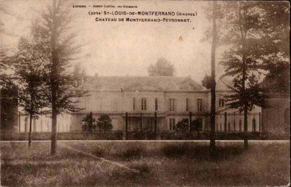 Le château Peyronnet, situé à Saint‑Louis‑de‑Montferrand (Gironde), a été édifié à la demande de Pierre‑Denis, comte de Peyronnet, ancien ministre de la Justice, sur l’emplacement de l’ancien château familial. Les travaux furent confiés à l’architecte Pierre Laclote et se déroulèrent de 1826 à 1828 ; Pierre‑Alexandre Poitevin lui succéda en 1834, notamment pour la construction de la chapelle. La documentation indique par ailleurs une reconstruction attribuée à Michel Laclotte et achevée par Alexandre Poitevin entre 1826 et 1830. De composition néoclassique, le logis principal est un bâtiment rectangulaire encadré de pavillons d’angle. Des communs, disposés en retour d’équerre, délimitent une cour intérieure fermée par une grille d’entrée. Au centre du commun nord se trouve une chapelle de style néo‑gothique, de plan cruciforme, voûtée d’ogives et éclairée par un lanterneau octogonal. Les communs et la chapelle contrastent ainsi avec le style néoclassique du logis, apprécié pour les demeures viticoles. Les intérieurs du château et des communs ont été entièrement remaniés dans les années 1990. Les cartes du XVIIIe siècle mentionnent, au lieu‑dit Caillou, une demeure en U implantée près de la Garonne et entourée de vignobles ; cette ancienne maison, vendue comme Bien national, comportait un pavillon central dominant un long corps de logis flanqué d’ailes en retour d’équerre qui ouvraient une cour vers le fleuve, ainsi qu’un bâtiment au nord formant une seconde cour. Certaines dépendances situées à l’arrière des ailes datent de cette demeure du XVIIIe siècle. La construction du nouveau château fut surveillée, en l’absence du propriétaire, par le magistrat bordelais Henri Blanc‑Dutrouilh, et les communs furent ensuite réduits. La distribution et l’ornementation intérieure, novatrices pour l’époque, répondaient à l’usage précis de certaines pièces, et la demeure a longtemps conservé son aspect et son mobilier d’origine. Dans le dernier quart du XXe siècle, l’ensemble a fait l’objet de restaurations, la marquise a été réinstallée, quelques lucarnes ont été supprimées et l’intérieur a été modifié. Les façades et toitures du château et des communs sur cour, la cour et sa grille d’entrée ainsi que la chapelle sont inscrites au titre des monuments historiques depuis le 19 décembre 2005.