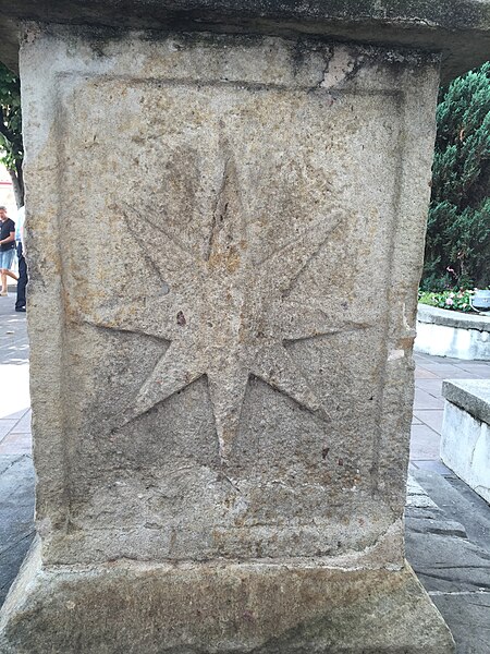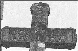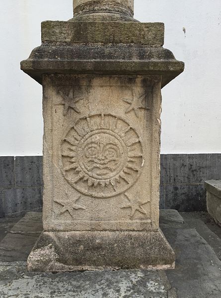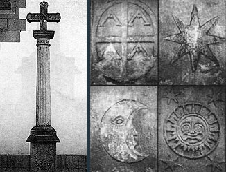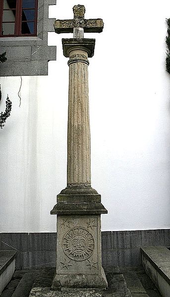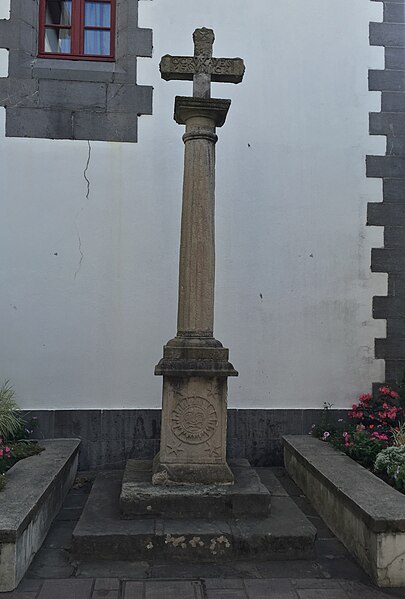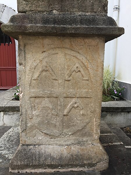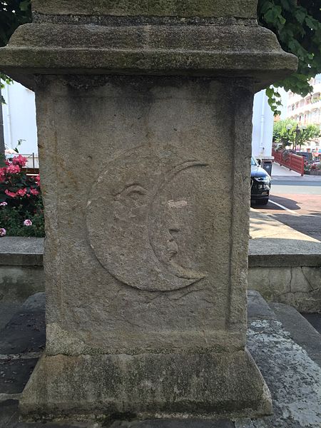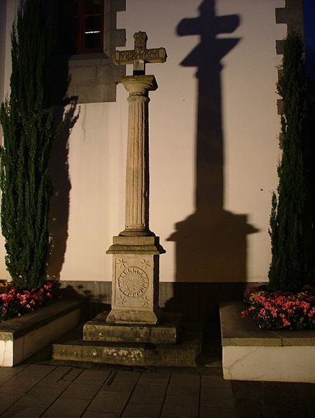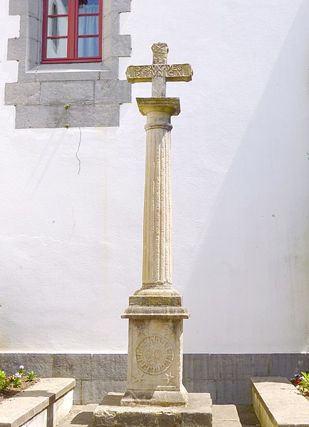 La croix, de forme latine, porte l'inscription « o crux ave spes unica ». Elle repose sur un fût de colonne cannelé surmonté d'un chapiteau, lui-même posé sur un cube décoré sur ses quatre faces du soleil, de la lune, d'une étoile et d'un ovale divisé en quatre compartiments, chacun contenant un A, signe fréquent sur les stèles basques.