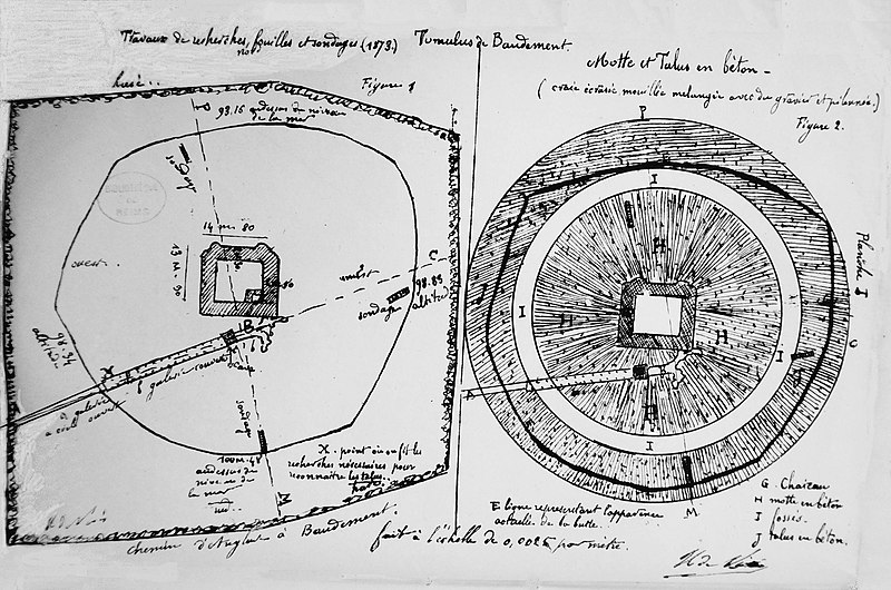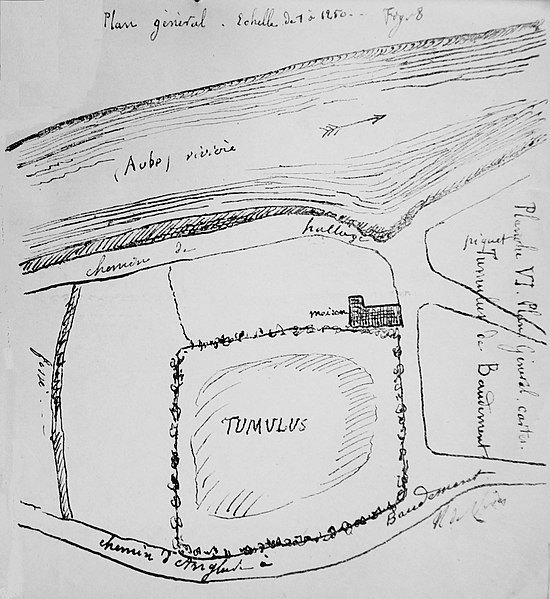 Le tumulus de Baudement, situé le long de l'Aube dans la Marne, est une motte classée monument historique en 1934. Le village dépendait d'une baronnie de la Champagne. La motte a été fouillée en 1873–1874 par M. L. Bonnefont et ses collaborateurs. Les fouilles ont révélé des fondations de 40 m de côté et de 4 à 5 m d'épaisseur, constituées de tuf et de graviers agglomérés en une sorte de béton. Sur cette base reposait une construction de 15 m de côté aux murs épais de 2,50 m. Une cave, découverte à la base de la motte et connue des habitants, servait régulièrement d'abri en cas d'invasion. Les résultats des travaux ont été publiés en 1875 par L. Bonnefont et M. H. de Vivès, sous la direction de M. Gardebled (éd. A. Derenne, Paris). Pour plus d'informations, on peut consulter la fiche Mérimée et la liste des monuments historiques de la Marne.