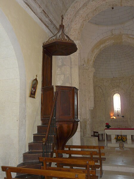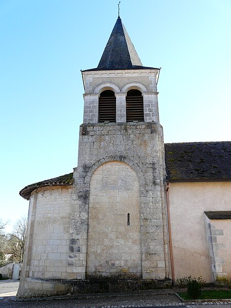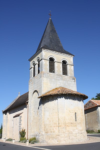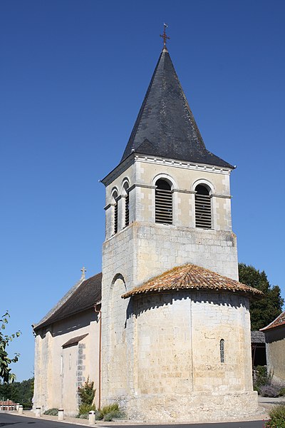 L'église Saint-Vincent, édifiée au XIIe siècle, était l'église d'un prieuré bénédictin de Jalmoutiers dépendant d'abord de Chancelade puis de Vauclaire. Elle constitue un bel exemple du roman saintongeais : le chœur voûté en cul-de-four et la coupole sont anciens, de même que le porche muni d'arcatures en plein cintre. L'édifice comporte une coupole et un haut clocher qui a été surélevé lors de restaurations entreprises à la fin du XIXe siècle, restaurations menées par Cros-Puymartin en 1891, au cours desquelles une partie de la nef et la façade occidentale ont également été reprises. À l'origine, la nef était voûtée en berceau plein-cintre ; cette voûte a été remplacée en 2002 par un lambris formant un berceau.